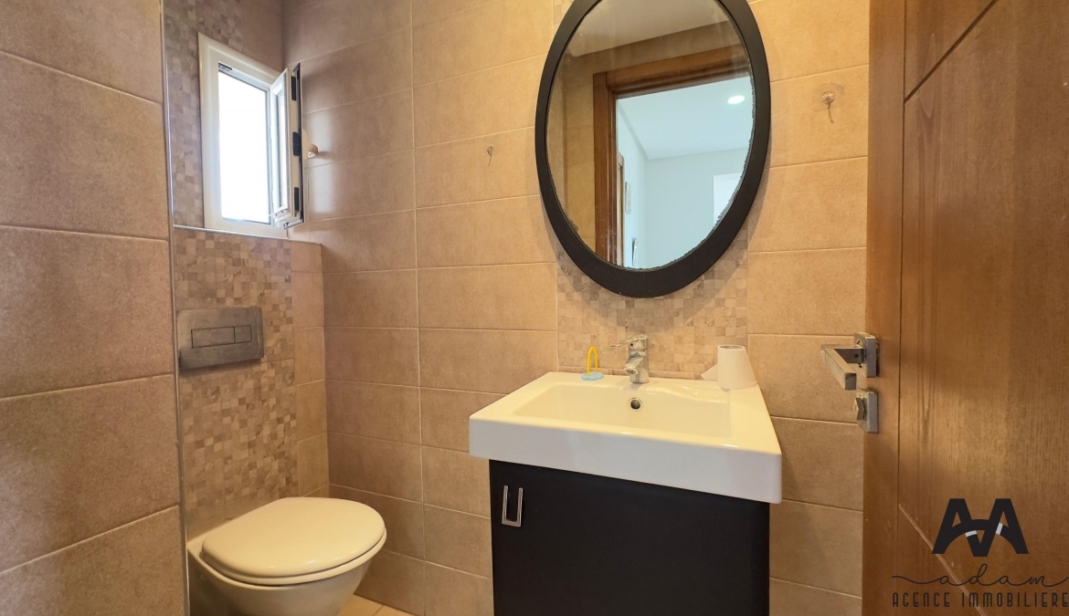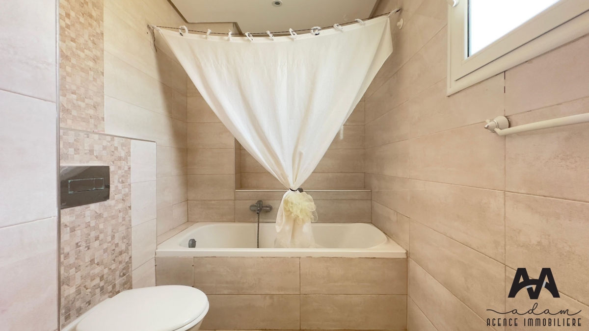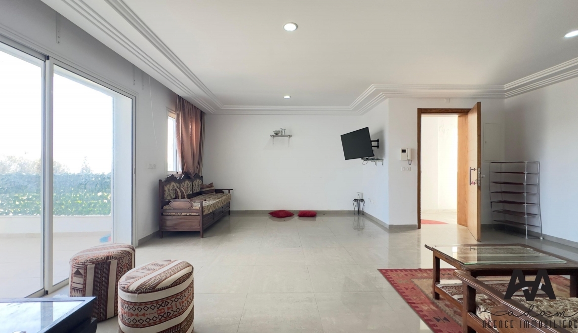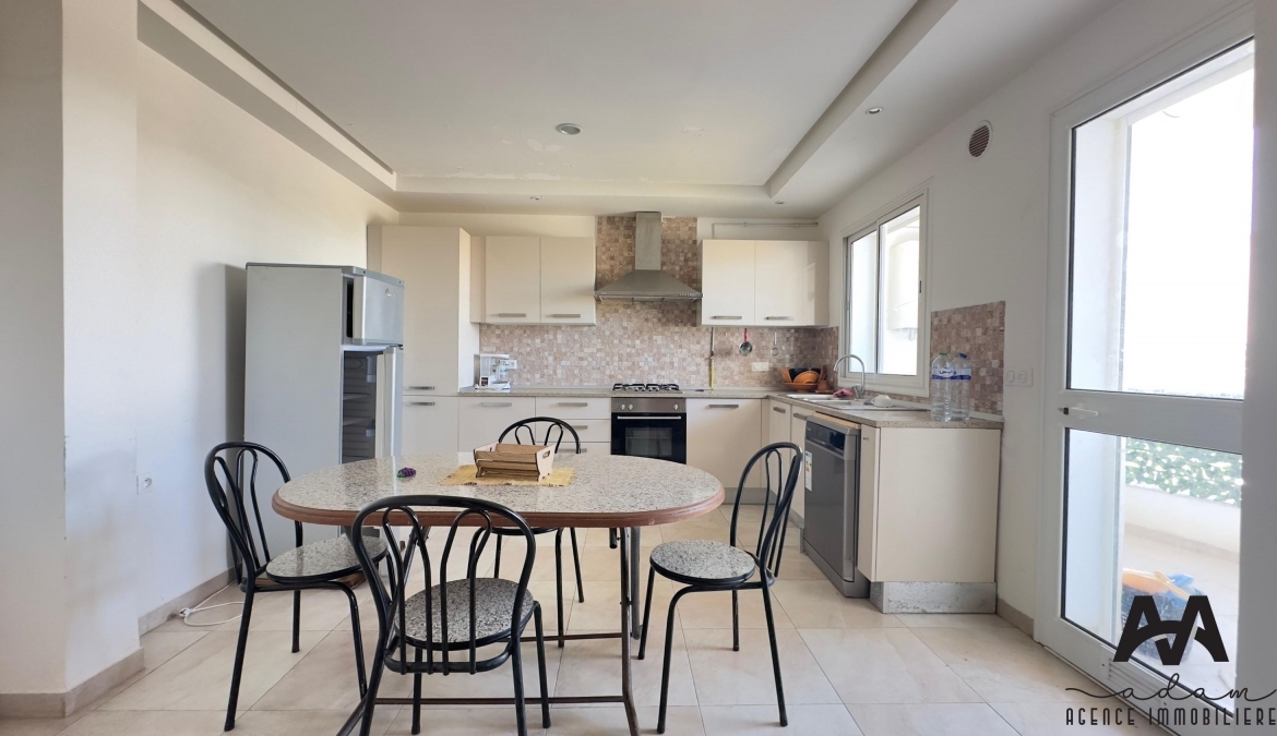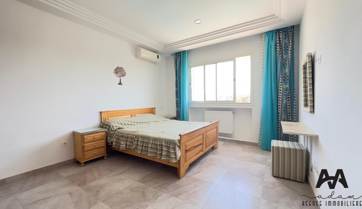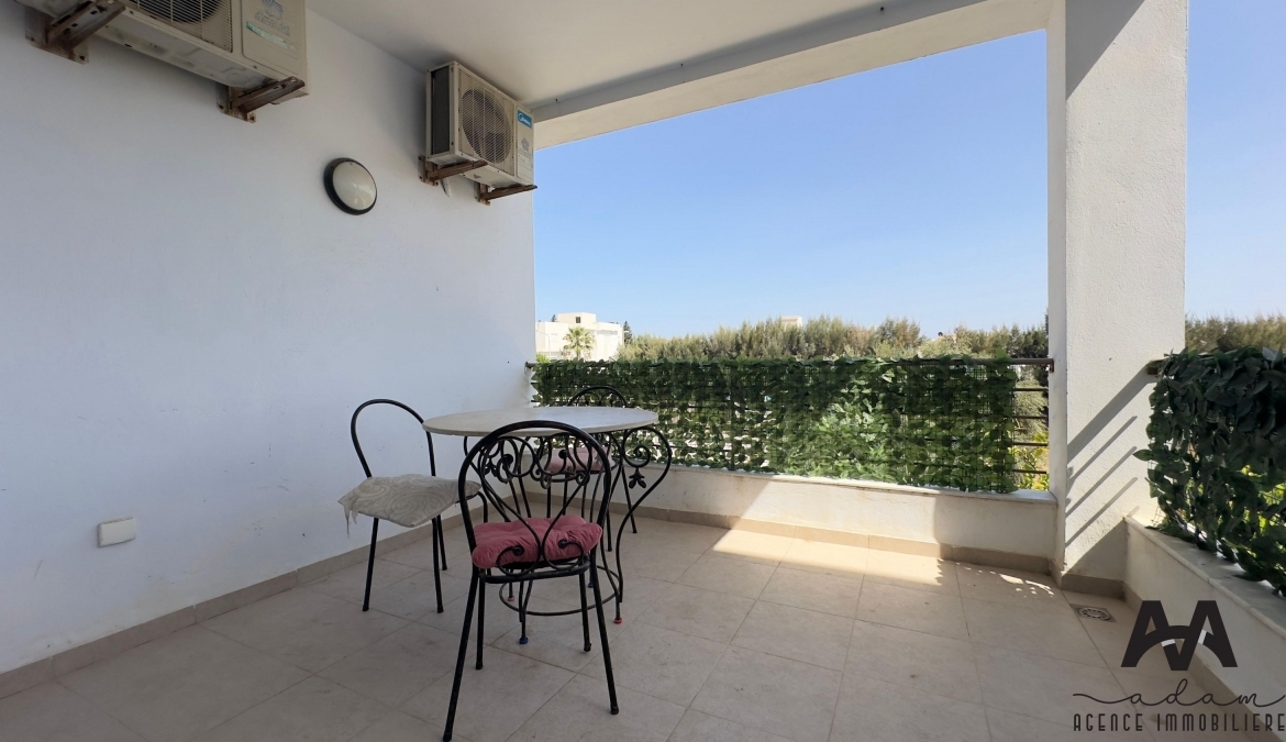 ADAM Agence Immobilière vous propose à la location un bel appartement S+2 meublé, situé au 1er étage d’une résidence sécurisée avec piscine collective, idéalement implanté à Mrezga, proche des commodités et à quelques minutes de la plage.