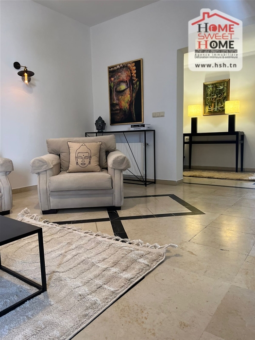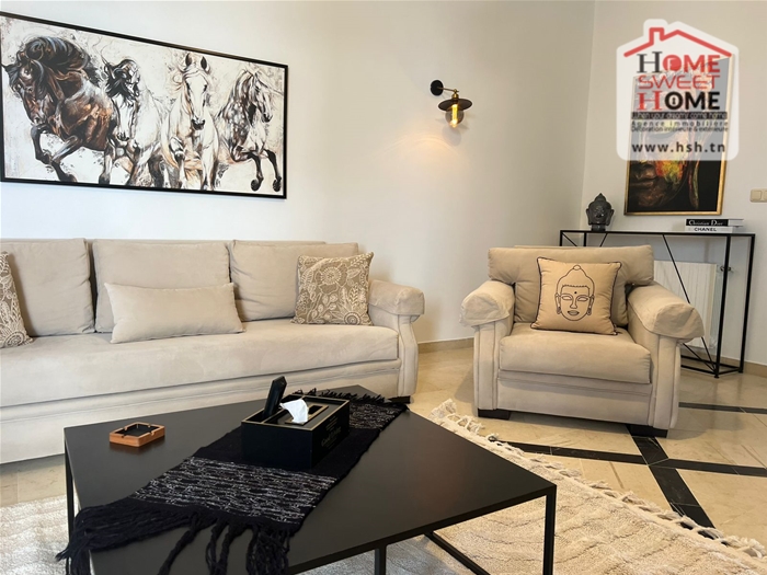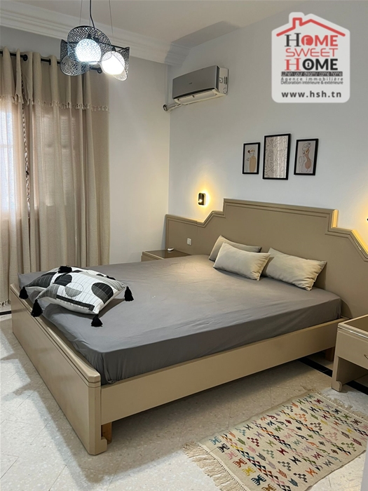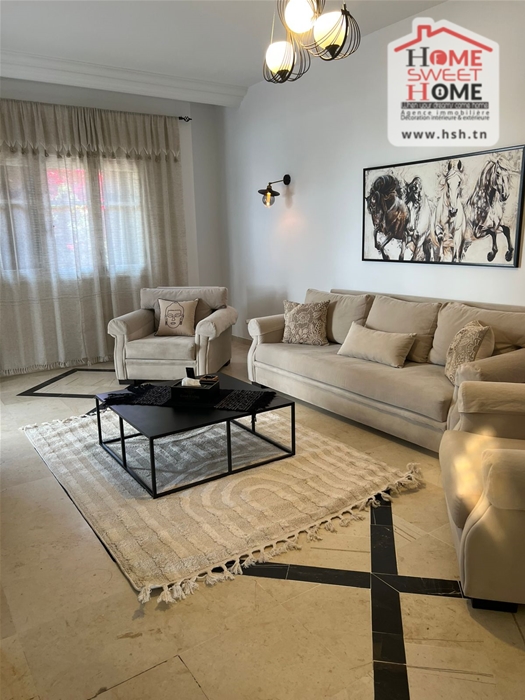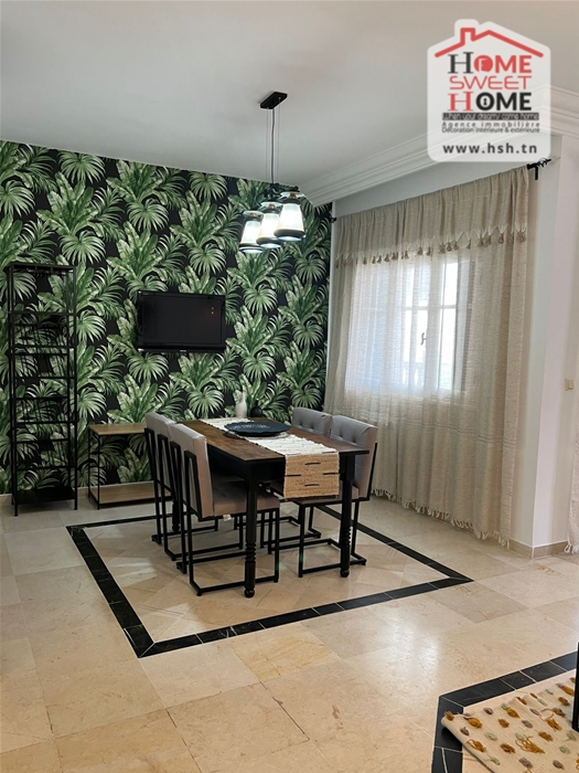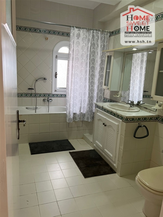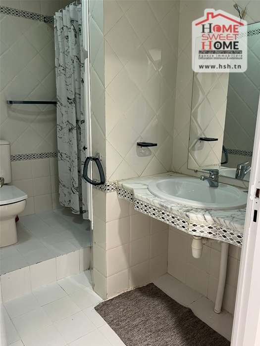 Un appart S3 meublé au 1er étage situé dans une résidence à Marsa Corniche avec ascenseur. A l’entrée on a un salon avec balcon, une salle à manger, 3 chambres, une cuisine, une salle de bain et une salle d’eau.