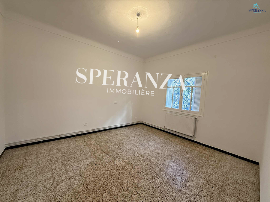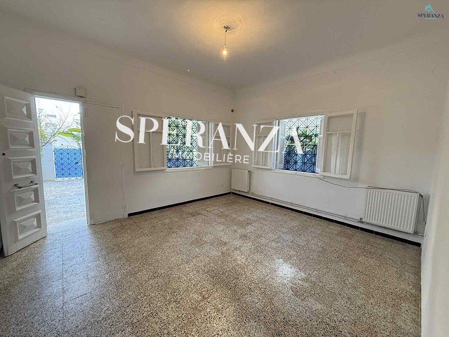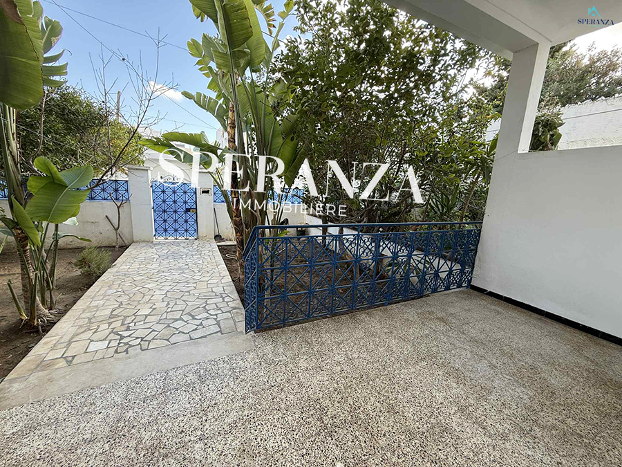 Speranza immobilière vous propose à la location annuelle cette Maison RDC non meublée  située à Hammamet centre ,il est proche de toutes les commodités .L’entrée principale donne sur un  jardin. La partie jour est composée par un salon ,une cuisine bien équipée et aménagée par les éléments de rangement nécessaire, une salle de bain.La partie nuit se compose de deux chambre à coucher .Et une terrasse.