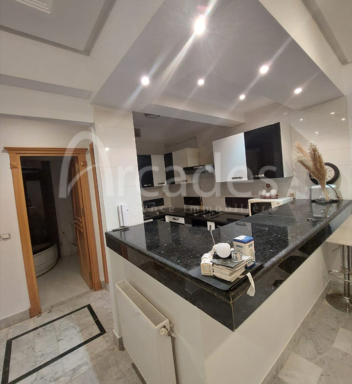 Agence Les Arcades met en location 🔑 un magnifique appartement très haut standing 🔝🌟de type s+1 , avec petite jardin situé au rdc dans une résidence à La falaise de Monastir .