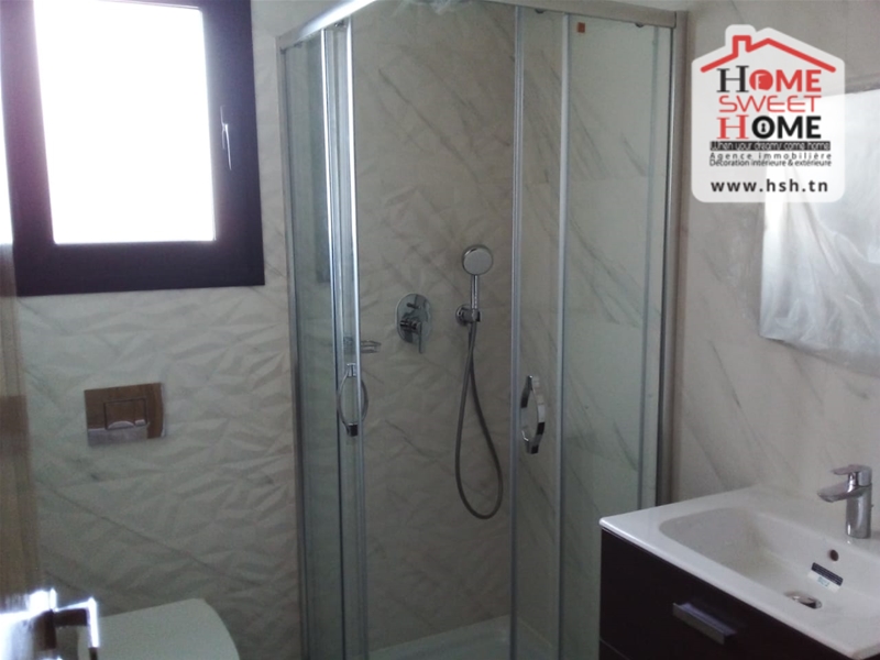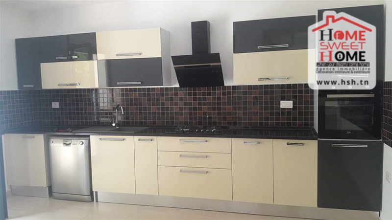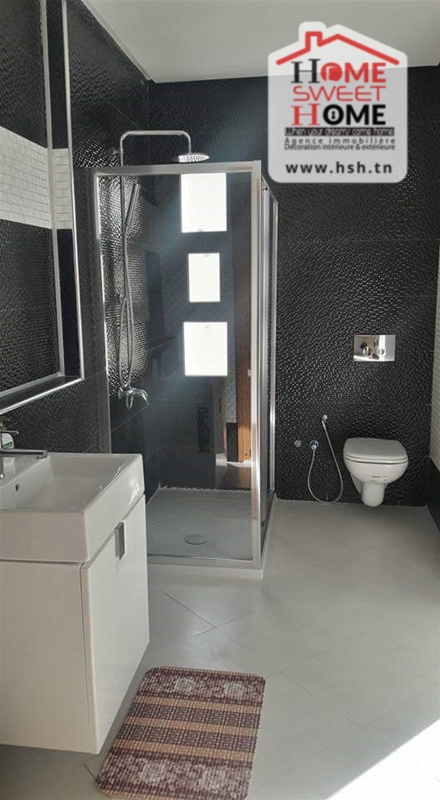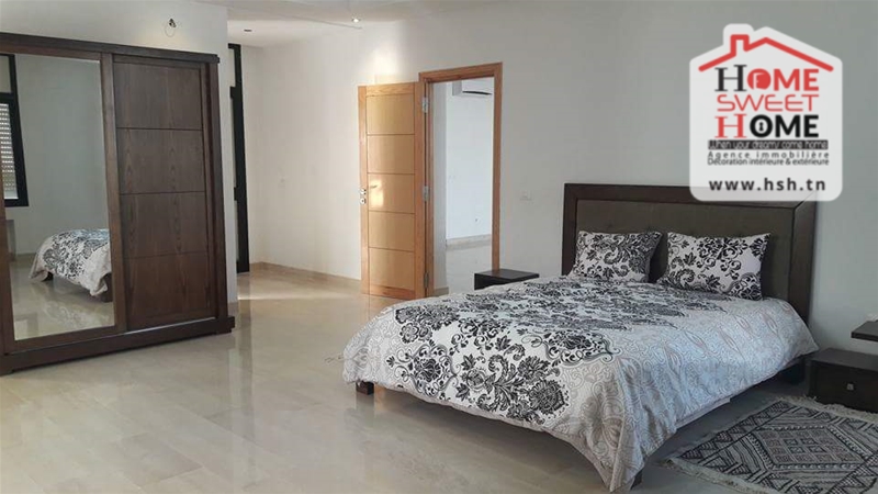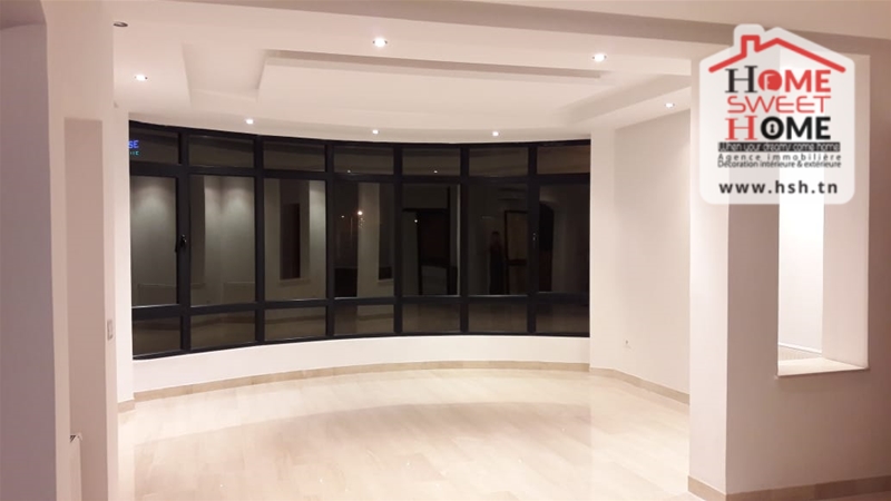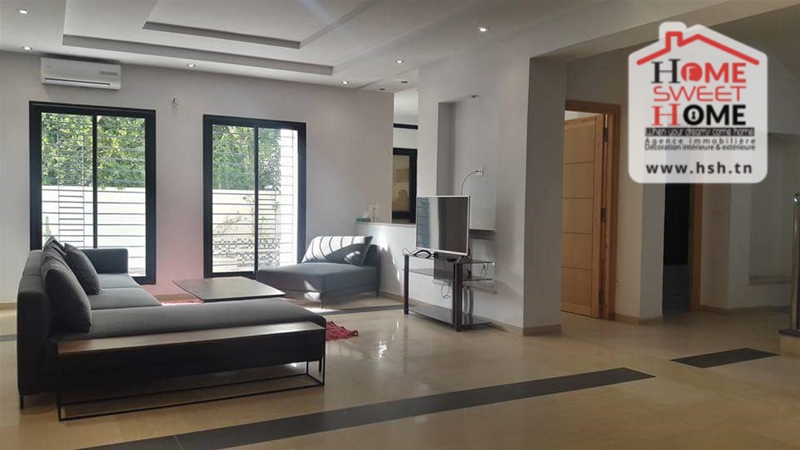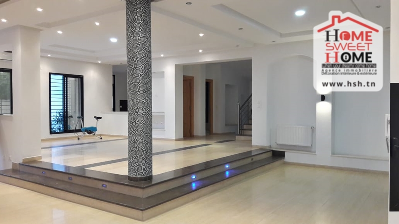 Une moderne villa de très haut standing avec piscine située dans un quartier résidentiel et très prisé aux Berges du Lac II. Au Sous sol, On a, un open space, une cuisine équipée et une salle d’eau, Au RDC, On trouve un grand salon avec cheminée, un séjour, une salle à manger, une grande cuisine équipée, une salle d’eau et une chambre à coucher. A L’étage, un séjour, une suite parentale, deux chambres à coucher et une salle d’eau avec cabine de douche. A L’extérieur, On a un joli jardin bien entretenu et un grand garage avec abri pour deux voitures.