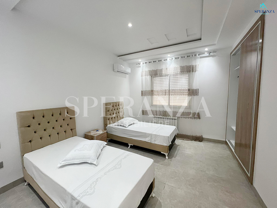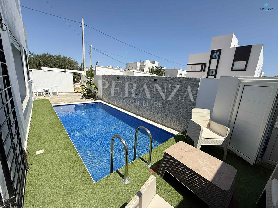Speranza immobilière Hammamet vous propose à la location annuelle. Cette Villa se situe à Hammamet . L’entrée principale se Bénéficie d’un jardin gazonné avec une piscine, un salon, une cuisine dispose de plusieurs éléments de rangement, La partie jour est complétée par une salle d’eau pour les invités. Un escalier nous emmène au 1er étage qui possède une suite parentale et deux chambres à coucher, Une salle de bain et un garage