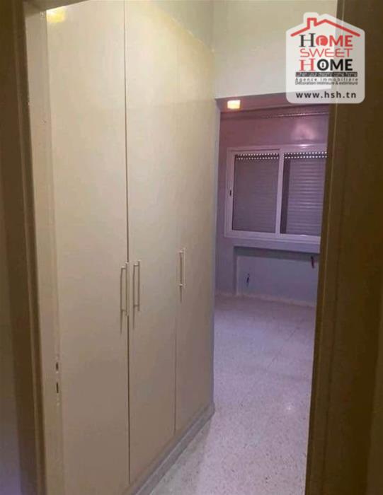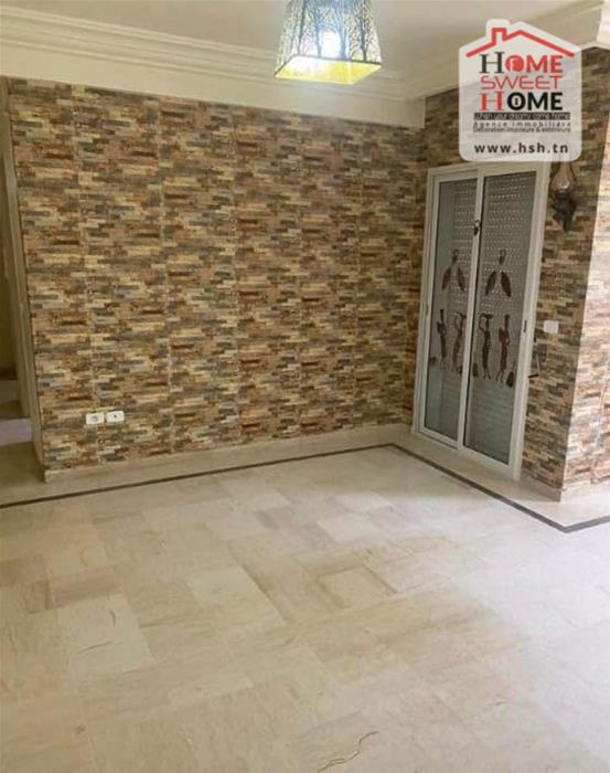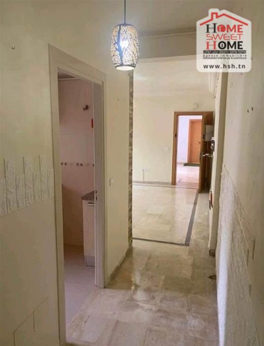 Appart S2 d’une superficie de 100m², situé au RDC d’une résidence à Manouba. A l’entrée on trouve un salon avec balcon, une cuisine avec séchoir, 2 chambres et une salle de bain. NB: Equipé du chauffage centrale.