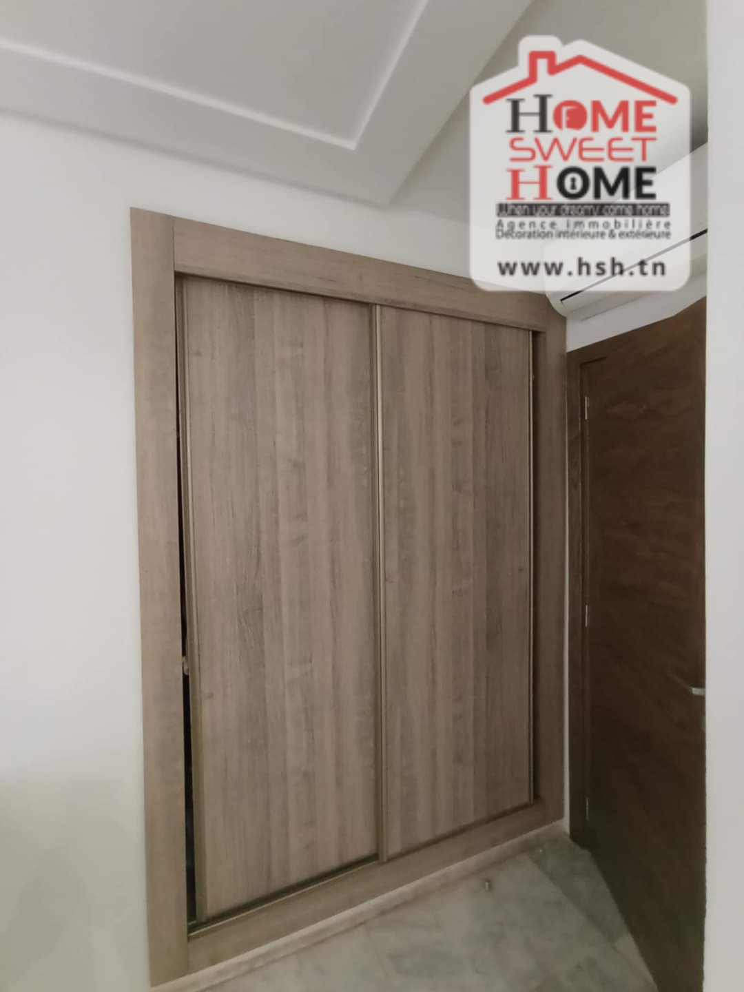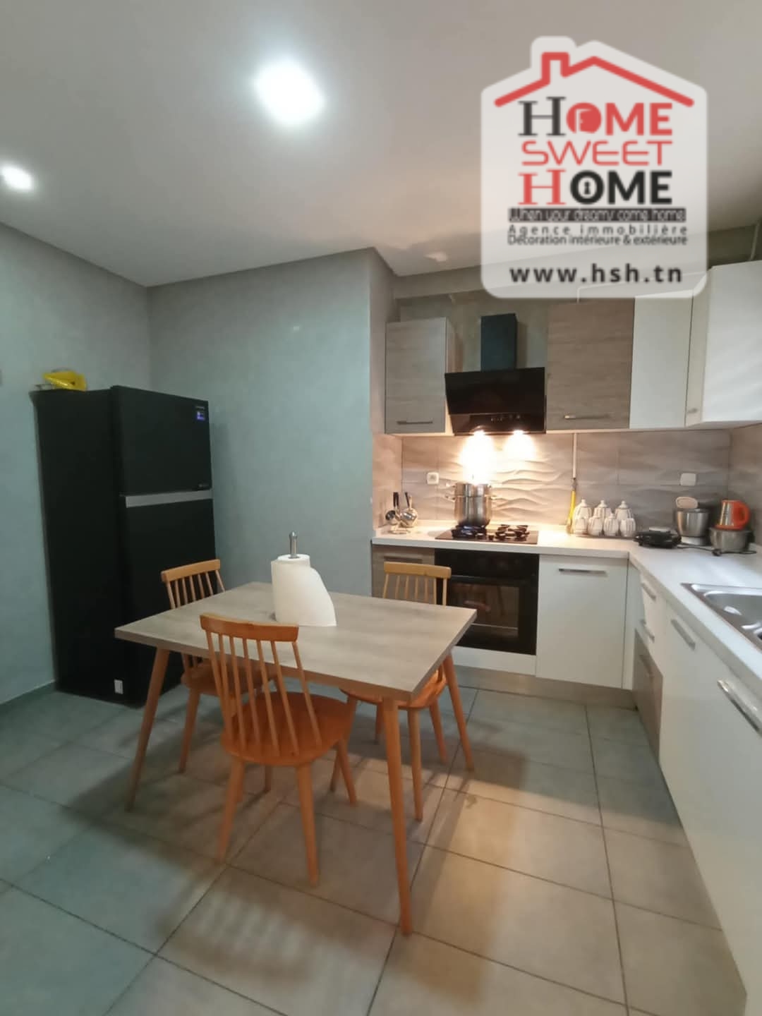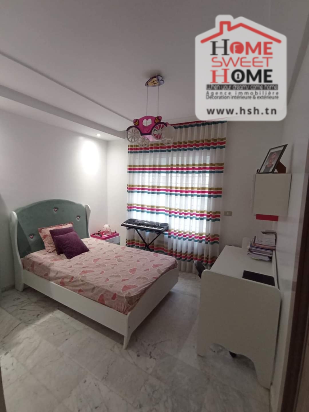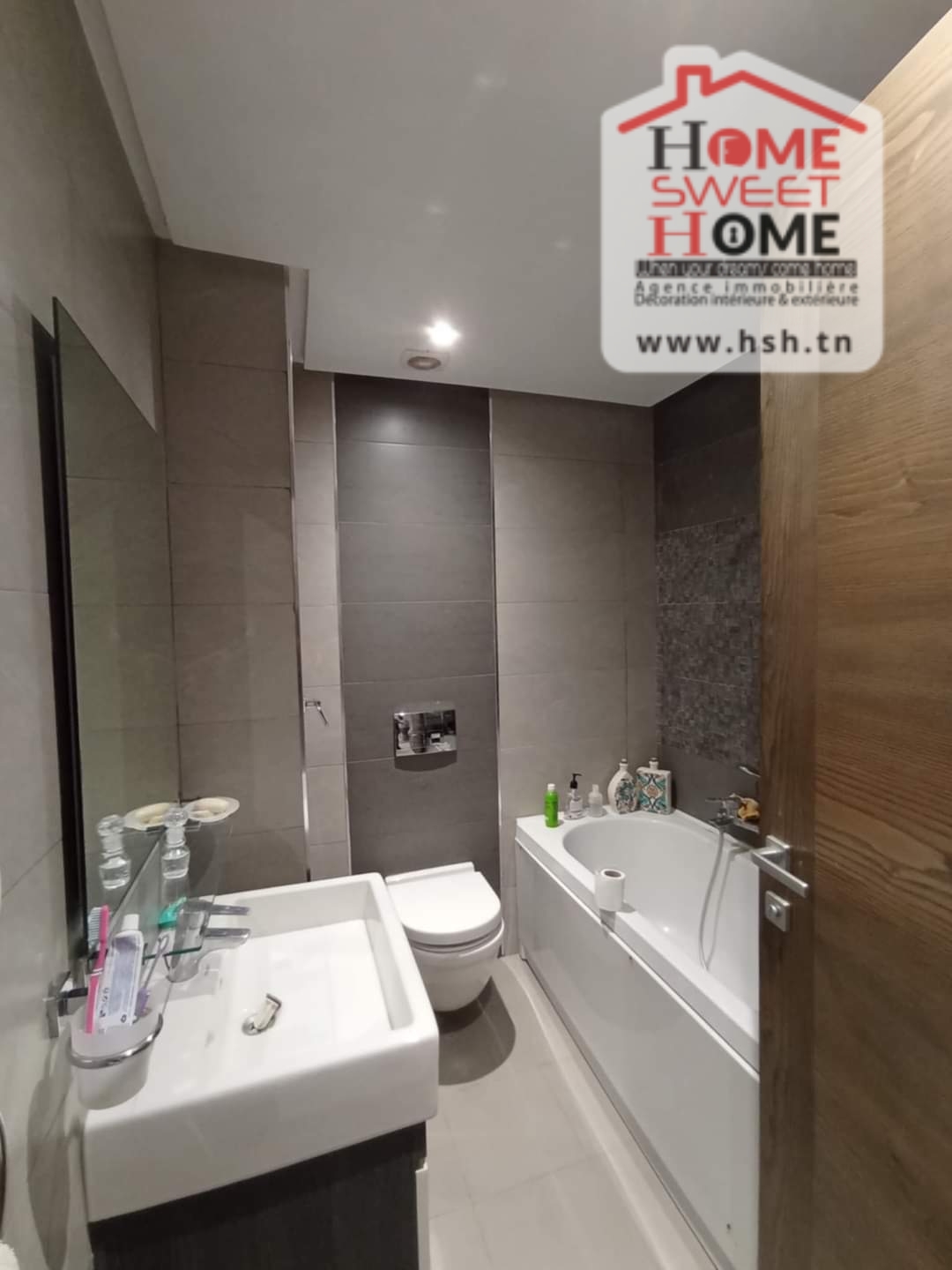 Un luxueux Appart au RDC situé dans une résidence de haut standing aux Jardins de Carthage. A l’entrée, on a un salon, une cuisine équipée avec séchoir, 3 chambres à coucher et deux salles de bains. A l’extérieur, on a un jardin et une place de parking sous-sol.