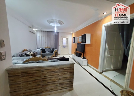 Un appart de bon standing au 1 er étage situé dans une résidence d’EL Mourouj 2. A L’entrée, On a un salon avec balcon, une cuisine équipée avec séchoir, une salle d’eau, 3 chambres et une salle de bain.