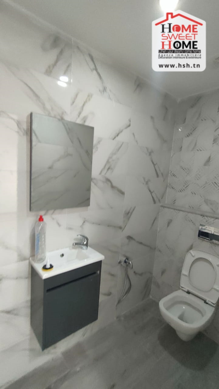 Bureau H3 d’une superficie de 91 m², situé au 4éme étage d’une résidence de haut standing à Ezzahra. Il comprend à l’entrée une salle d’attente, 3 bureaux, une cuisine et de 3 salles d’eau dans chaque bureau. La résidence est équipé d’un ascenseur.