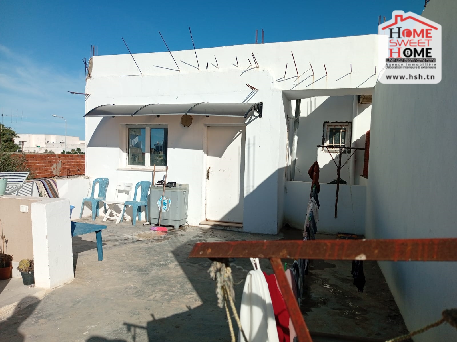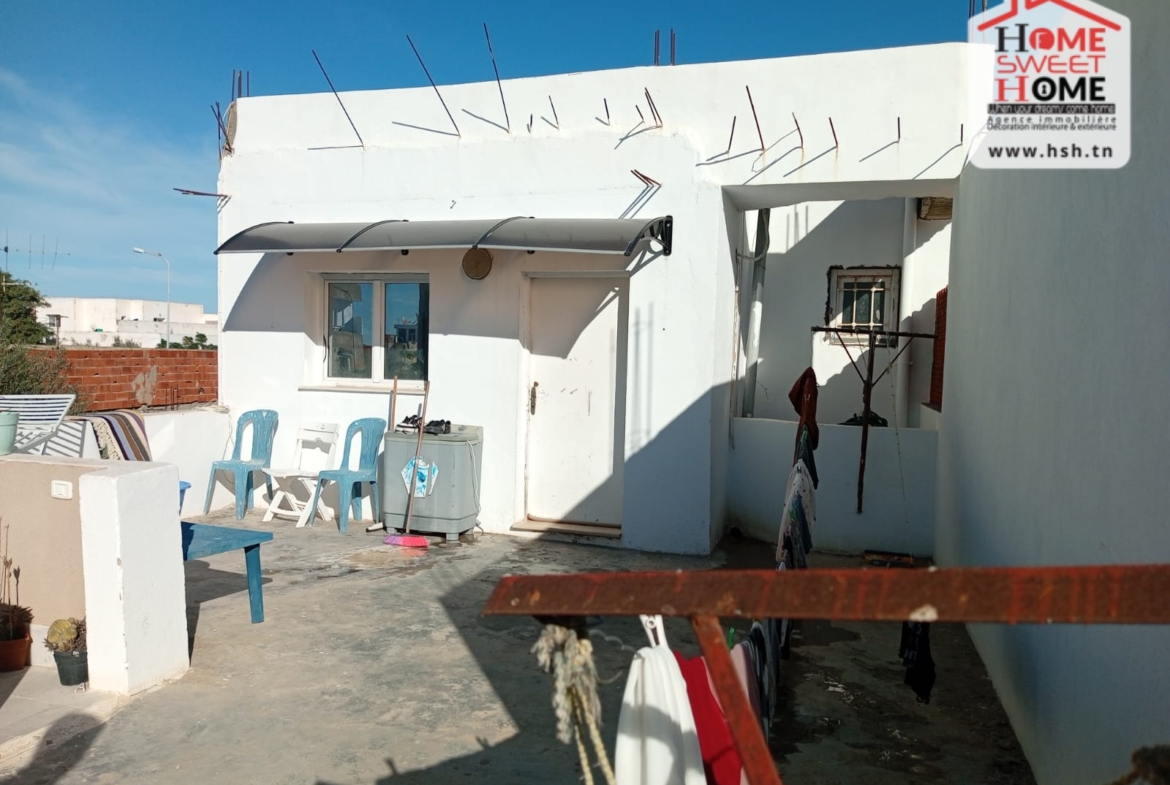 Un duplex un terrain de 95 m² situé dans un bon quartier au Le Kram Ouest. Au RDC, On a un grand salon, une cuisine, une salle d’eau et une chambre. A L’étage, On a 3 chambres, une salle de bain et un studio au toit.