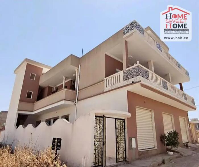 Immeuble sur un terrain d’une superficie de 335m², situé à El Fahs Zaghouan. Au RDC on trouve un salon, 4 chambres, une cuisine, une salle de bain, une terrasse et 3 garages. Au 1er étage on trouve un salon, 4 chambres, une cuisine, une salle de bain, une terrasse. NB: Possibilité de vendre uniquement le 1er étage.