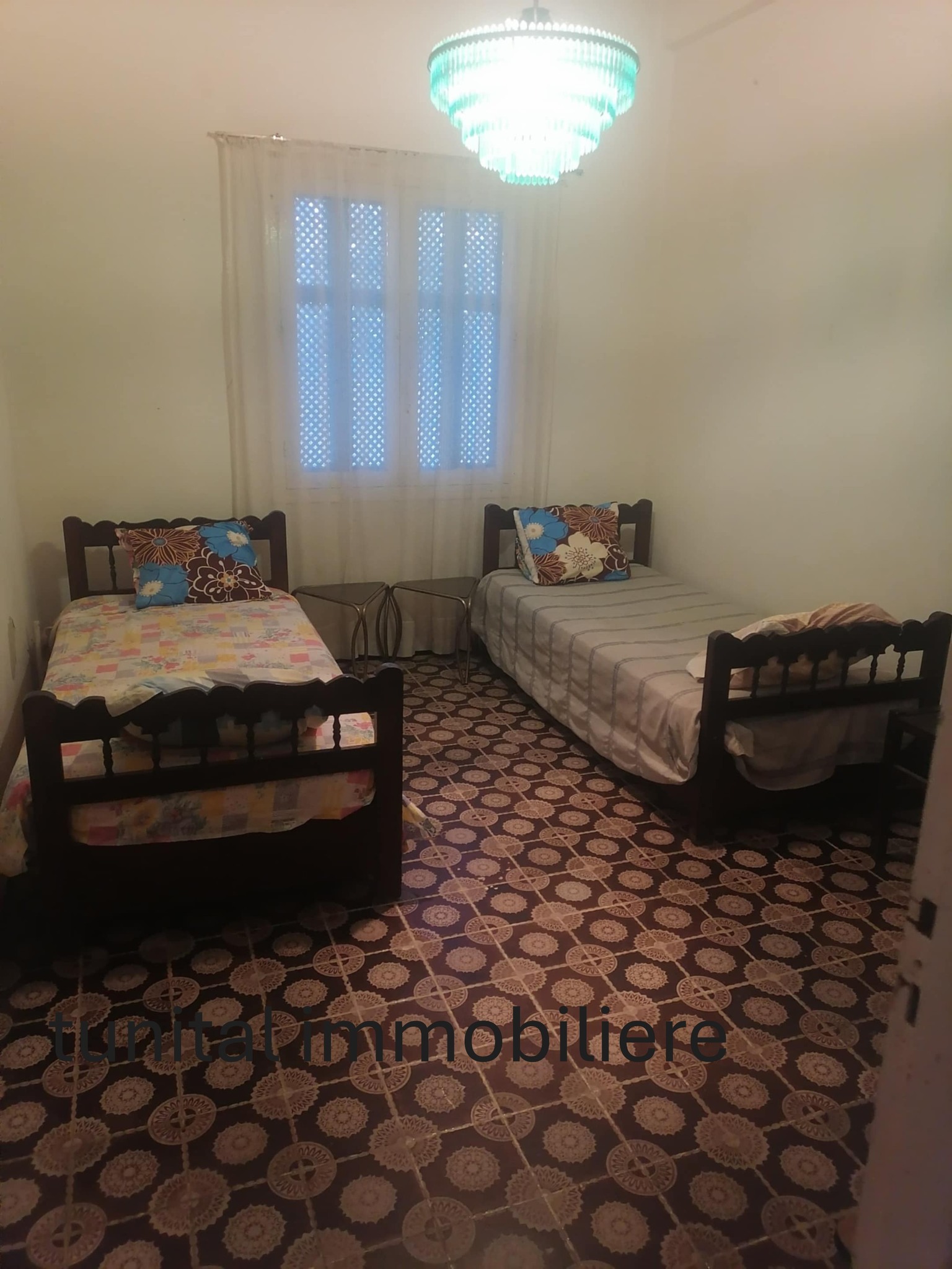 _rez de chaussée composée de : 4 chambres à coucher , salle de bain , salle d’eau, cuisine, garage , 7 m/4m , jardin, construction en pierre