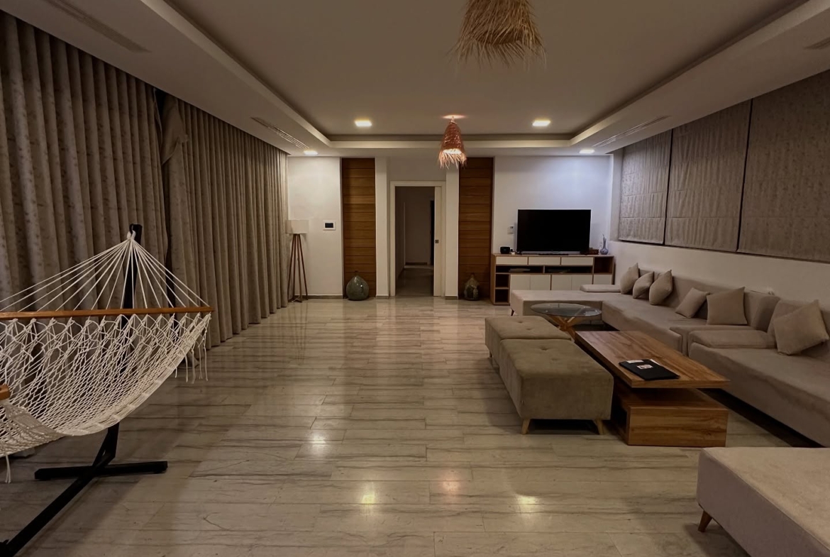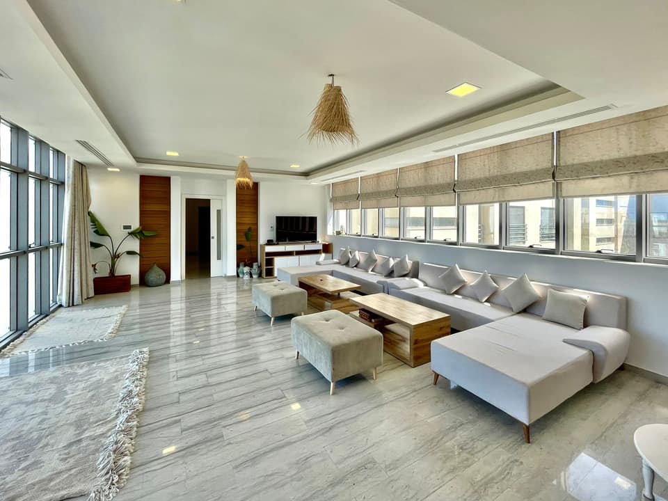 On vous propose à la vente un magnifique penthouse S+4 de 650 m² réparti sur 3 niveaux, situé dans une résidence à Gammarth touristique.
