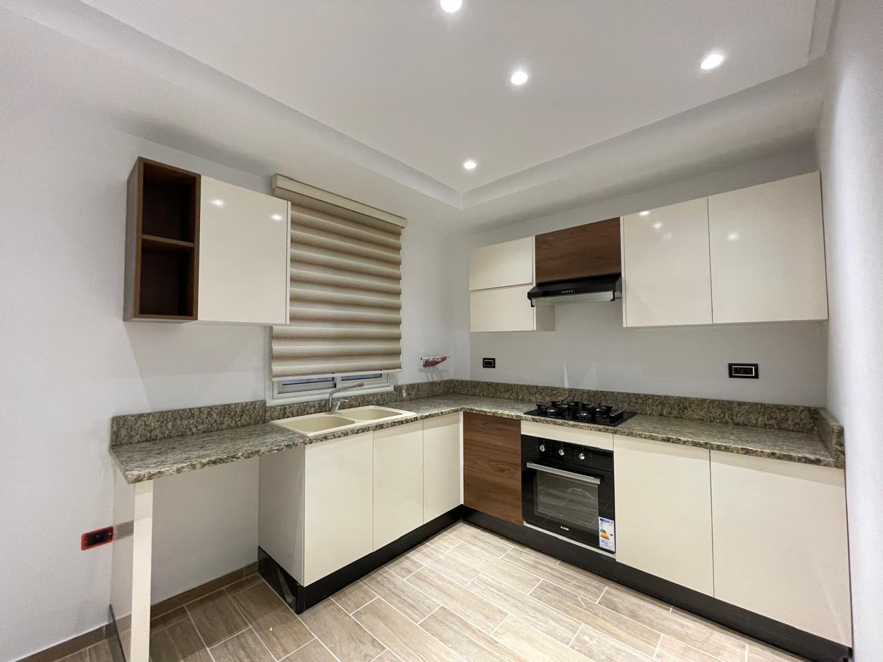Cet appartement est situé au quatrième étage d’une résidence en construction, à quelques mètres de la plage.