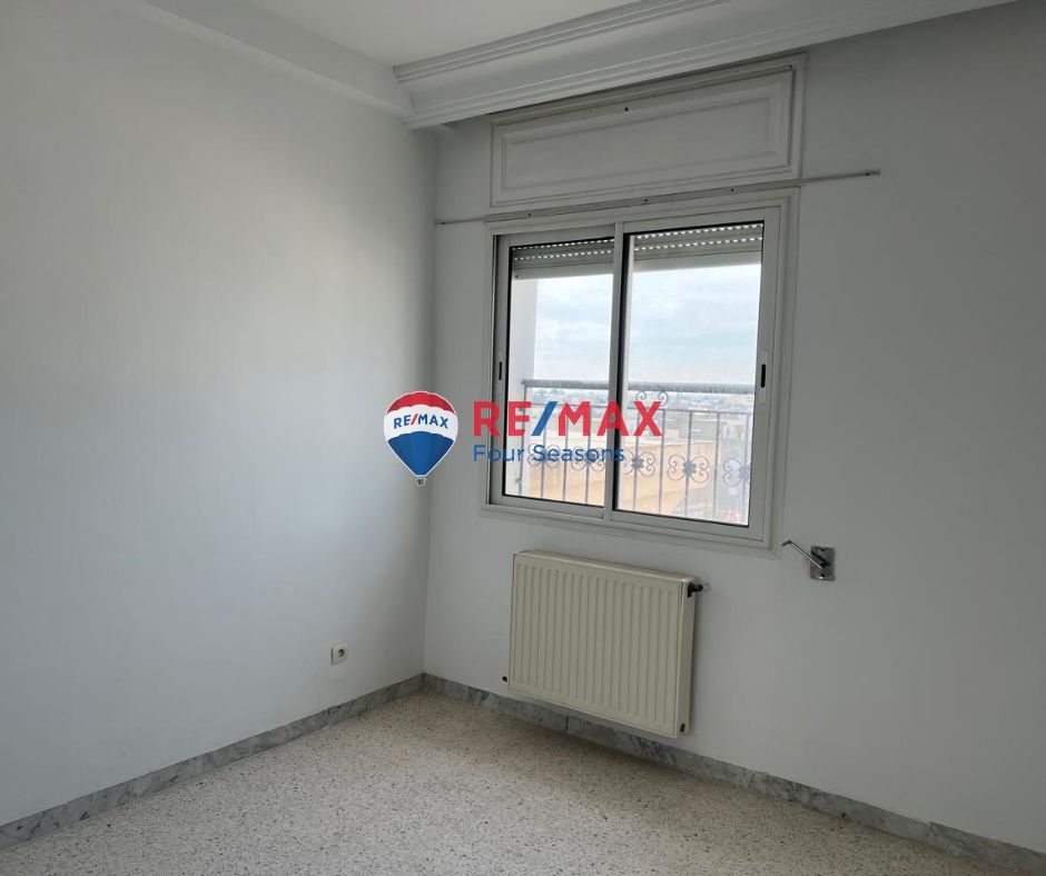 RE/MAX Four Seasons vous propose à la vente un appartement S+3 de 133 m² situé au 5ᵉ étage d’une résidence bien gardée et sécurisée à Cité Palmeraie. Cet appartement lumineux et fonctionnel est idéal pour une famille recherchant confort et sécurité.