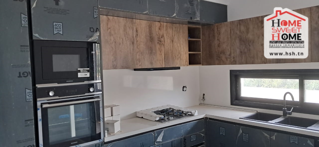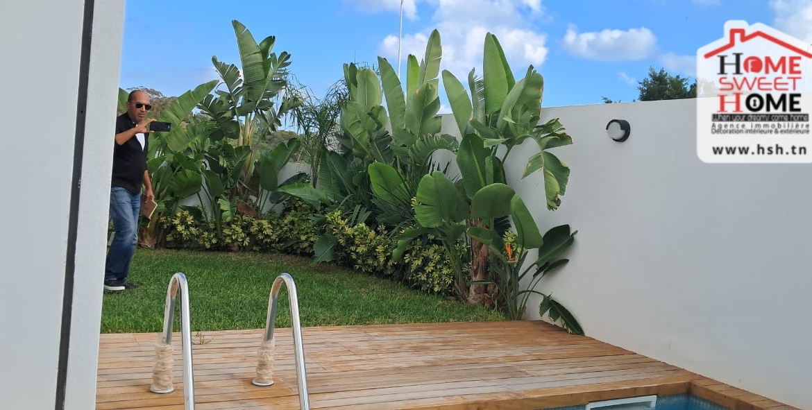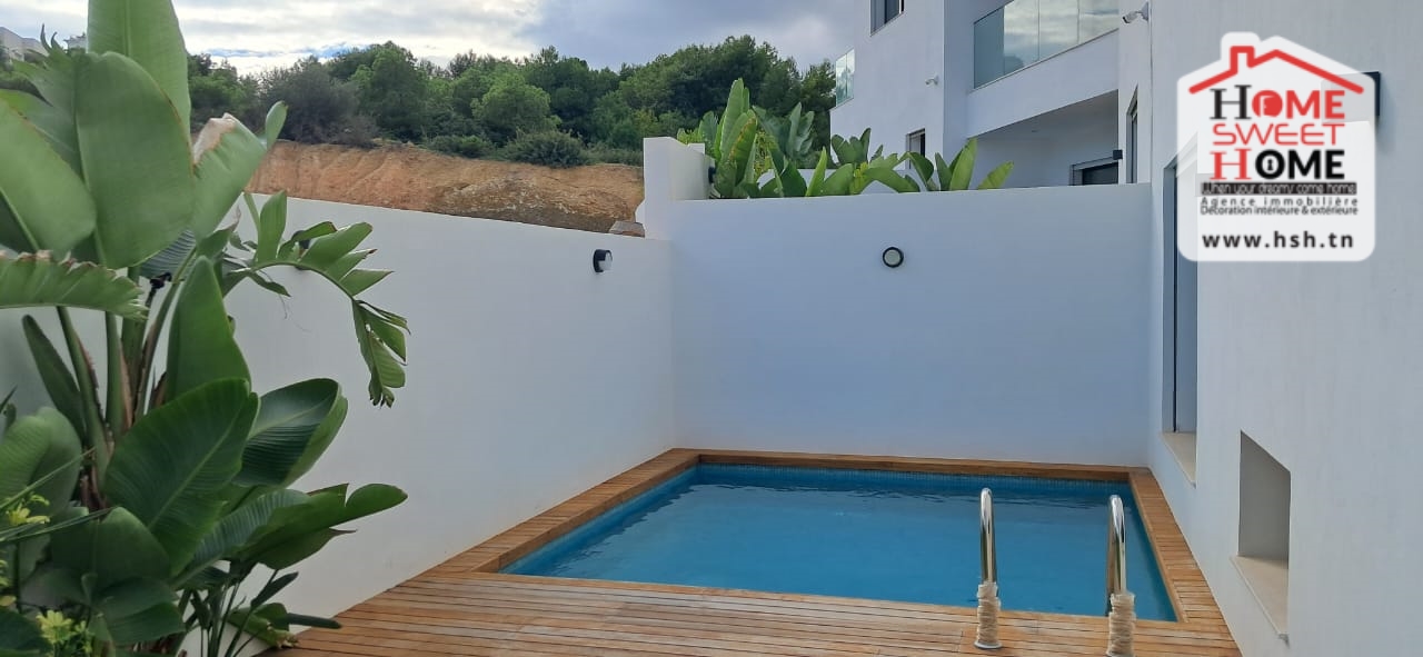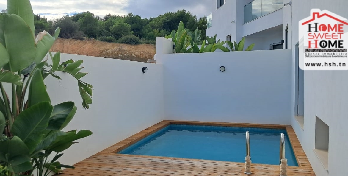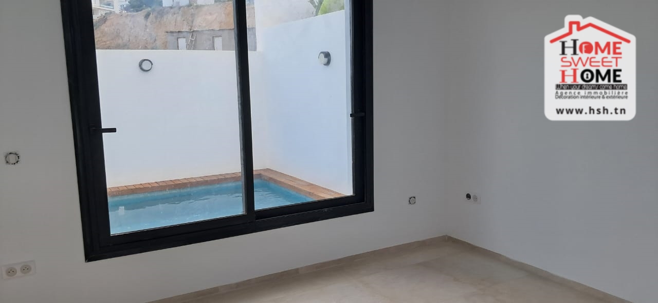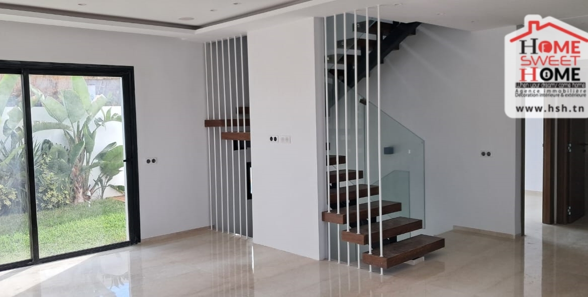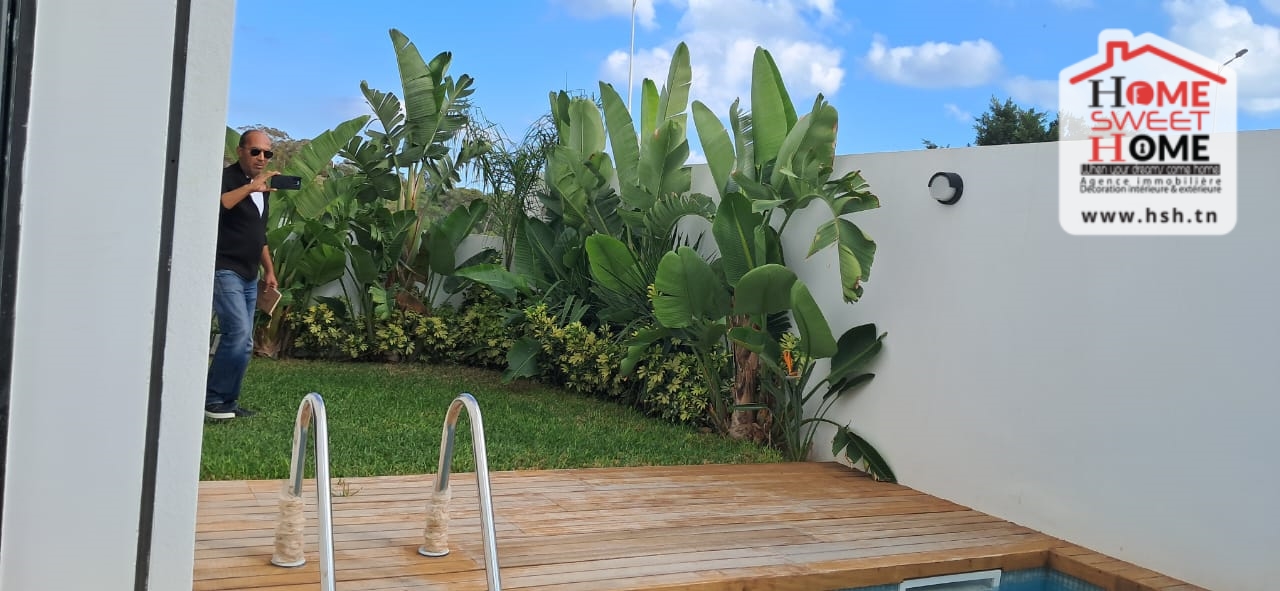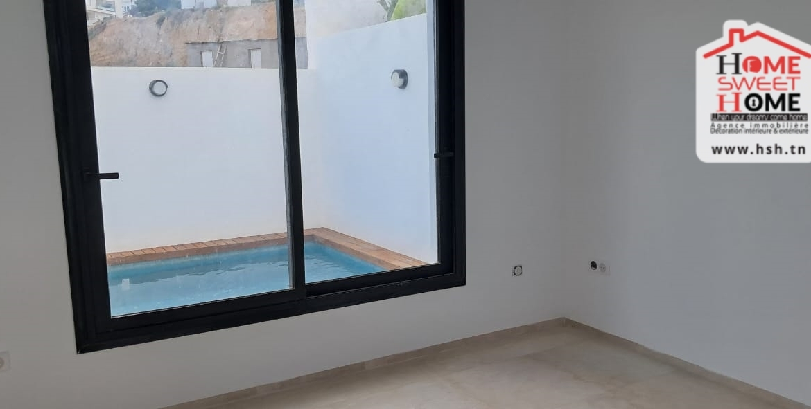 Une luxueuse villa avec piscine de très haut standing situé à Gammarth Supérieur. Au RDJ, On a une salle de jeux, une suite de bonne et une buanderie. Au RDC , on a un grand salon, salle à manger, une cuisine équipée avec séchoir, un séjour et une salle d’eau pour les invités. Au 1er étage , on a une suite parentale, 2 chambres et une salle de bain. Au 2éme étage, On a un salon avec une grande terrasse et une suite royale. A L’extérieur, On a une terrasse, un joli jardin et un abris de voiture. Cette villa dispose également du chauffage central , climatisations central et un ascenseur pour accéder à l’étage.