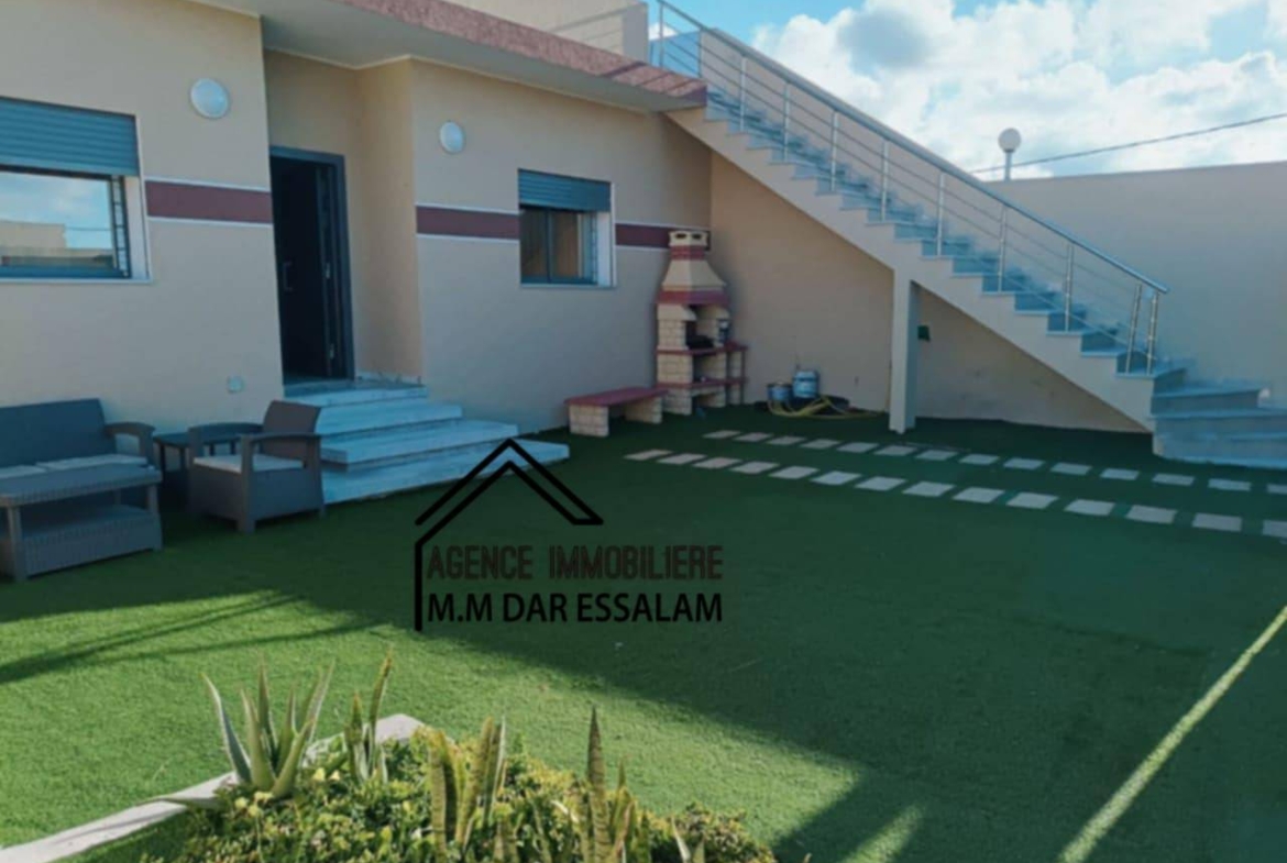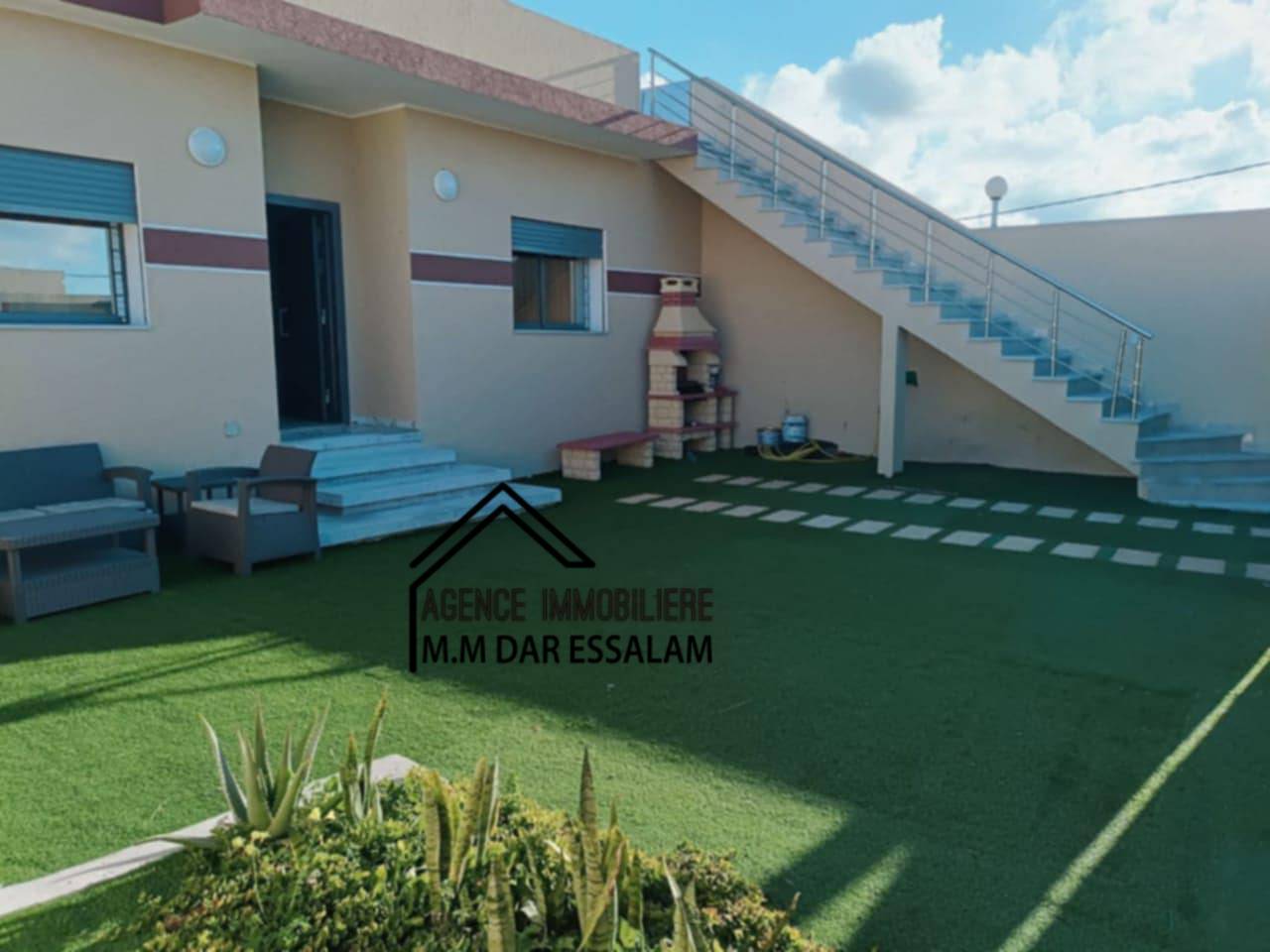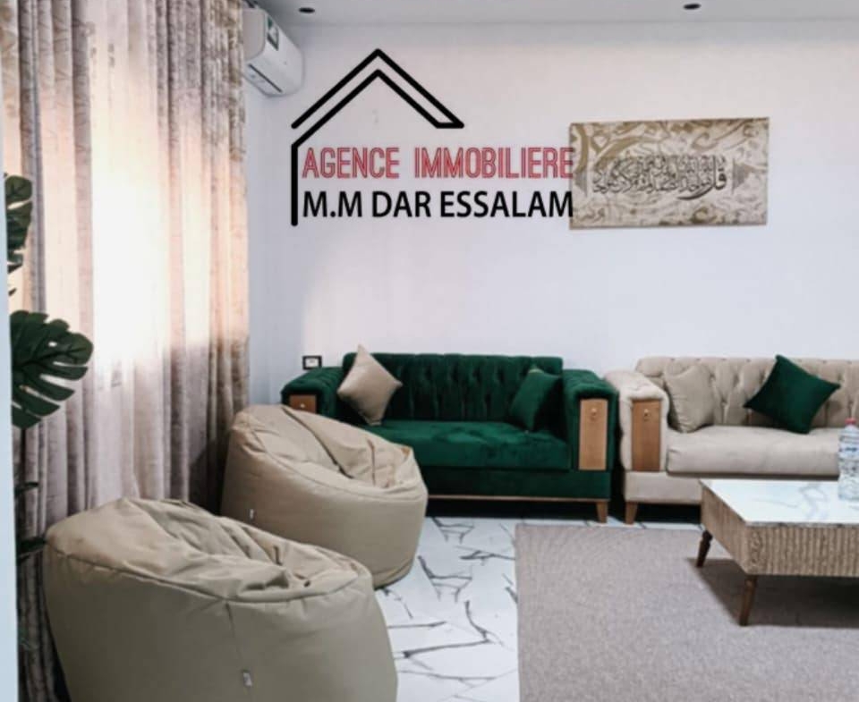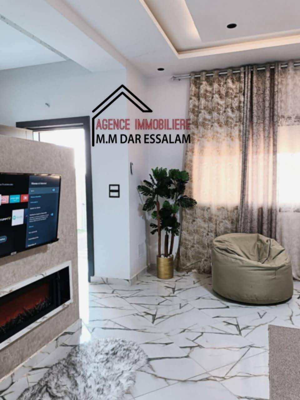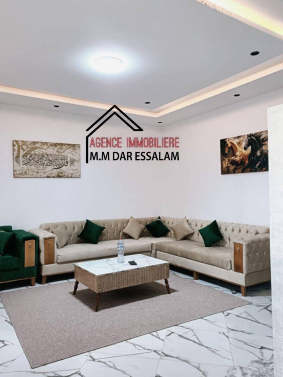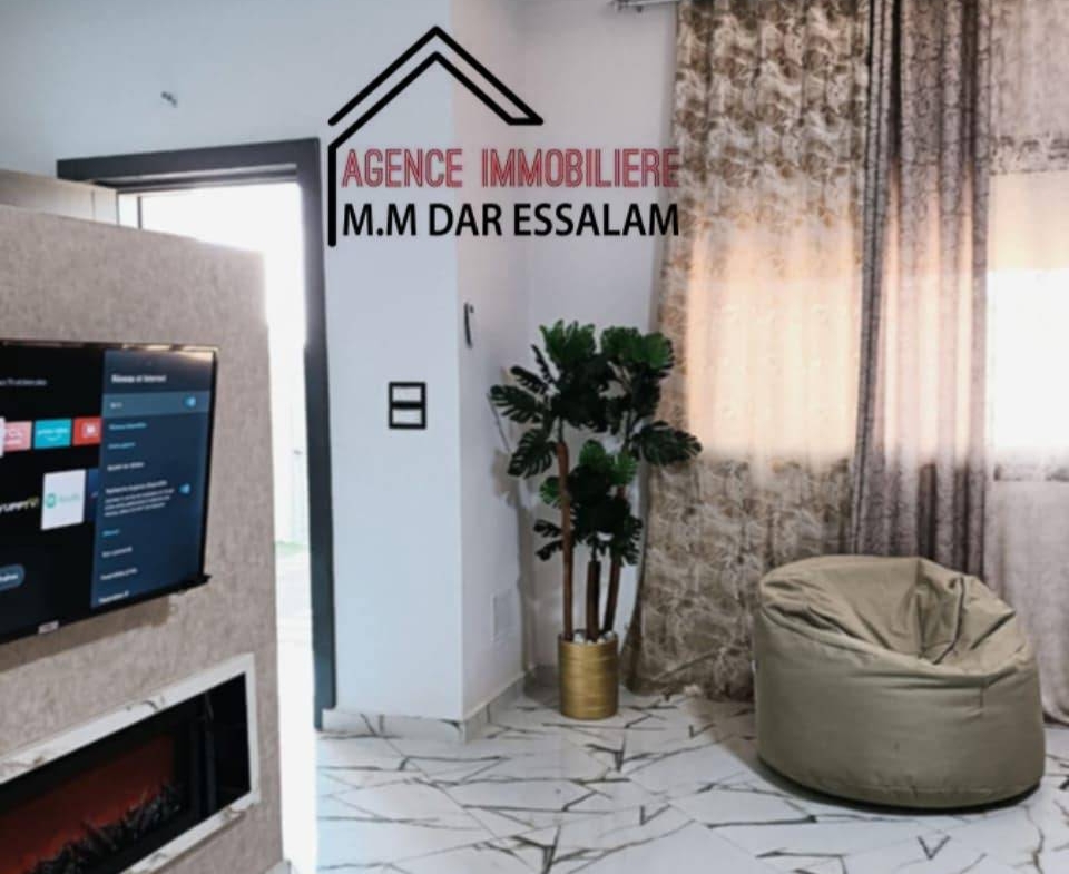 se compose d’une salon , 2 chambres à couchers, cuisine bien équipée , salle de bain , terrasse et un jardin