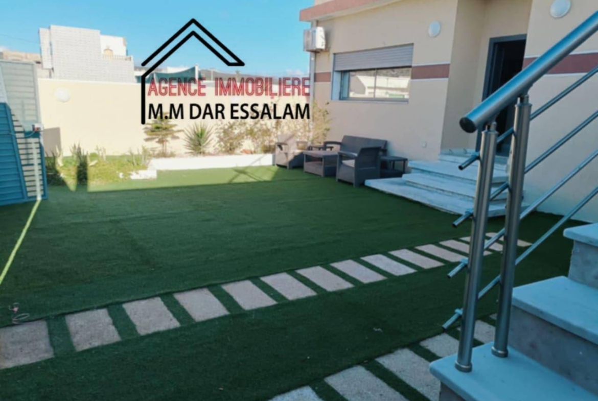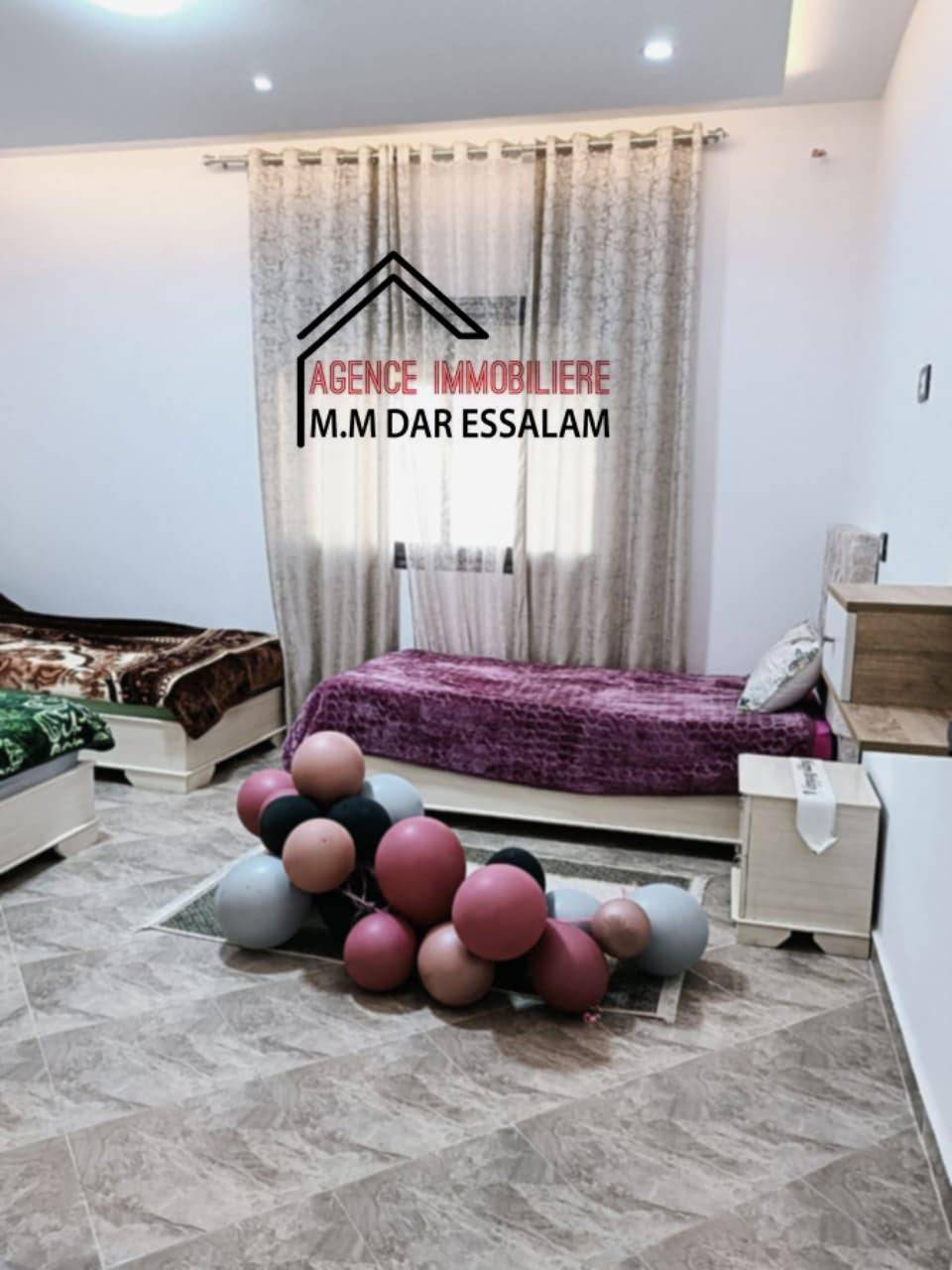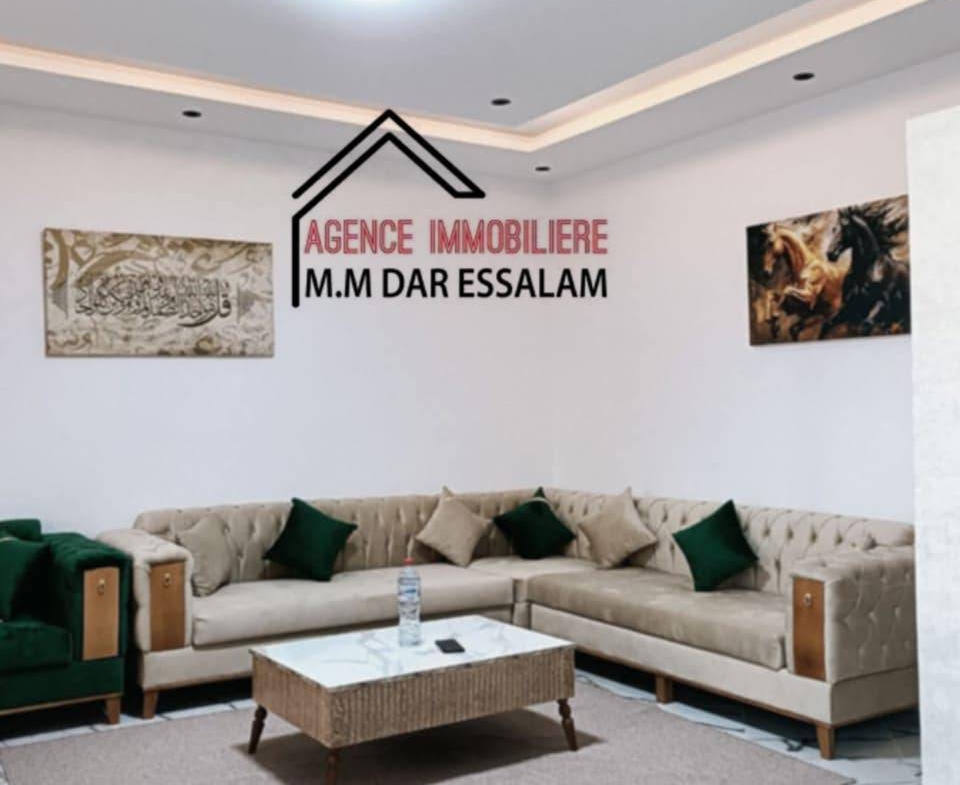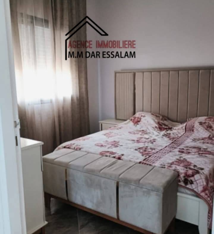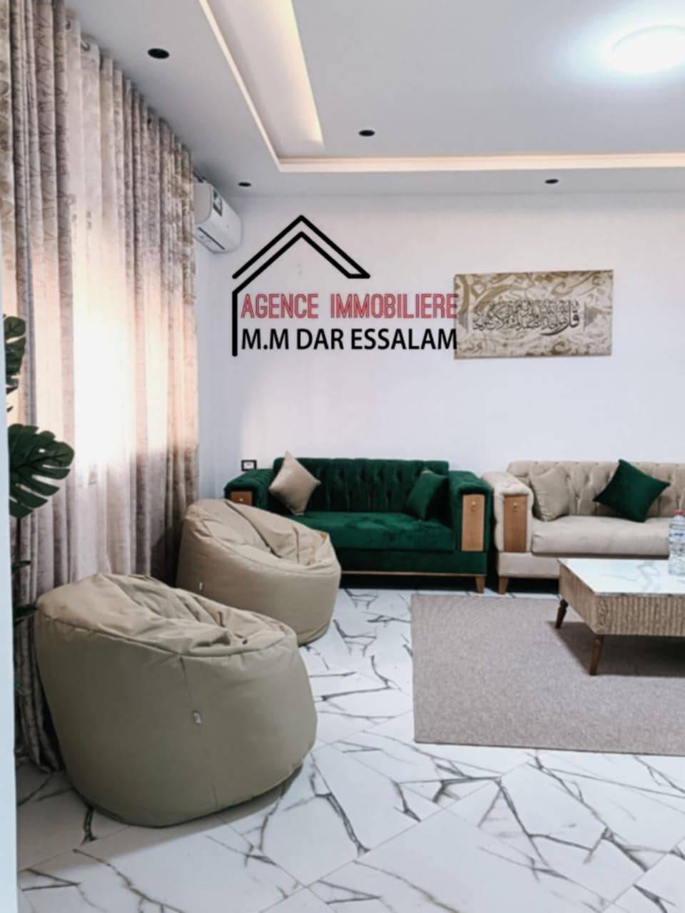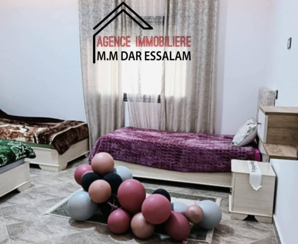 se compose d’une salon , 2 chambres à couchers, cuisine bien équipée , salle de bain , terrasse et un jardin