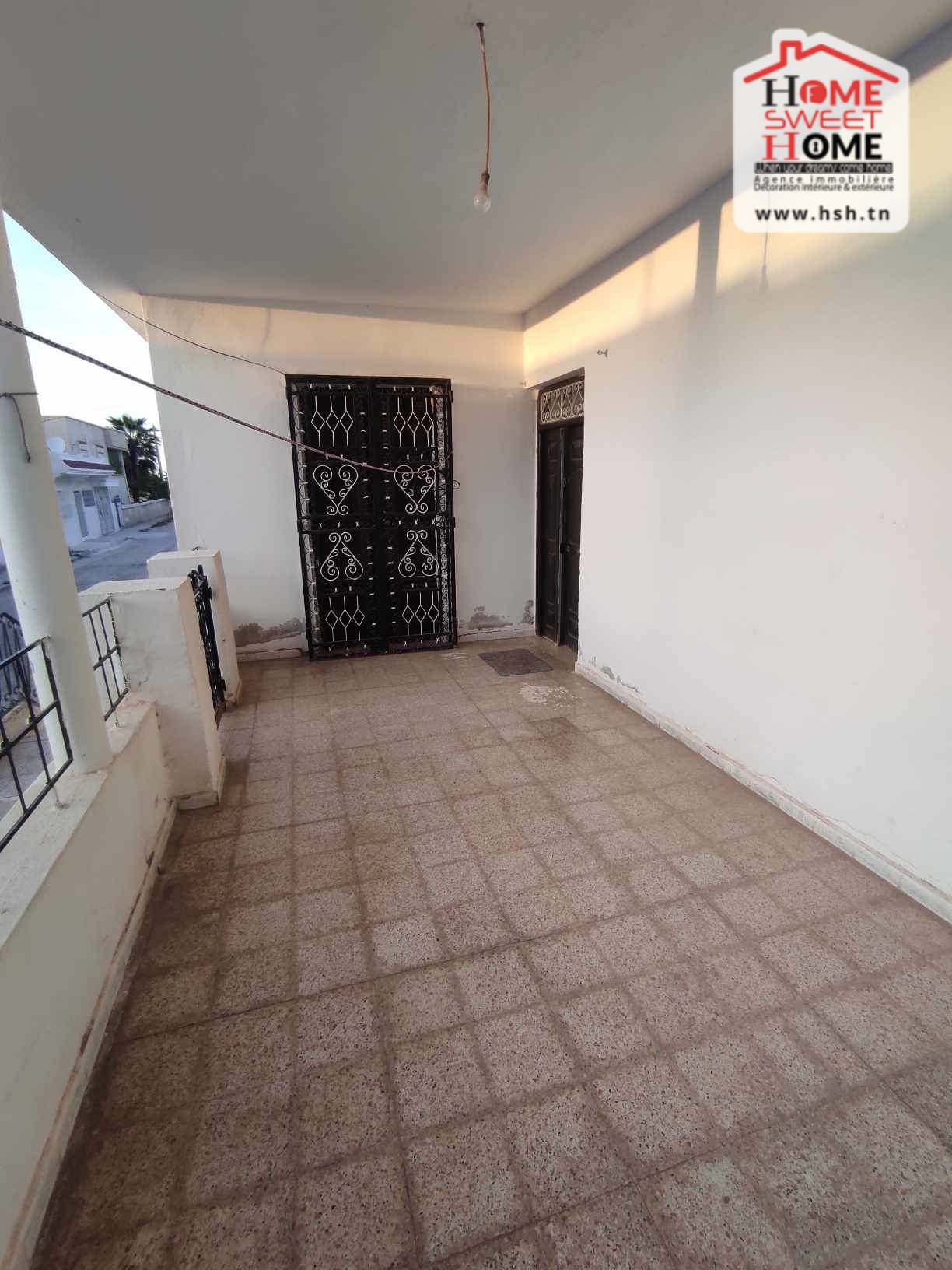 Une villa plain pied qui fait l’angle sur un terrain de 230 m² situé dans un bon quartier à Tejerouine, Kef. A L’entrée, On a un salon, une cuisine, 2 chambres et une salle de bain. A L’extérieur, On a une terrasse et 2 garages.