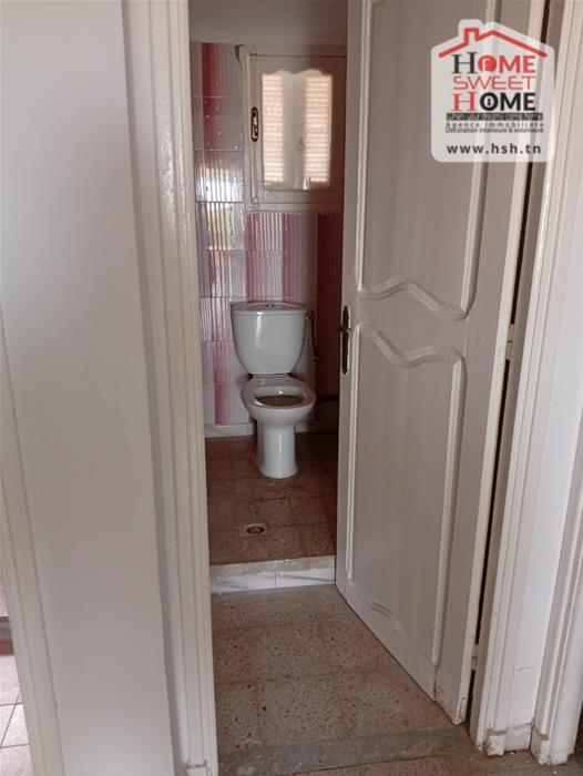 Villa sur un terrain de 540m², située à Béja. Au RDC on a un salon, 3 chambres, une cuisine, une salle à manger, une salle de bain et une salle d’eau. Le 1er étage est identique au RDC. A l’extérieur on a un garage et un grand jardin.