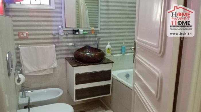 Une villa plain-pied d’une superficie de 197m², située à Raoued. On a deux salons , une salle à manger, une cuisine équipée avec séchoir, 3 chambres et une salle de bain. À l’extérieur, on a un abri de voiture, un jardin, une terrasse et une double cuisine avec une salle a manger .Il y a possibilité de bâtir deux autres étages de villa.