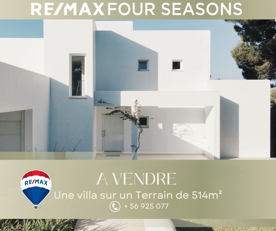 RE/MAX Four Seasons vous propose à la vente une magnifique villa S+3 de plain-pied, entourée d’un jardin et disposant d’un garage.