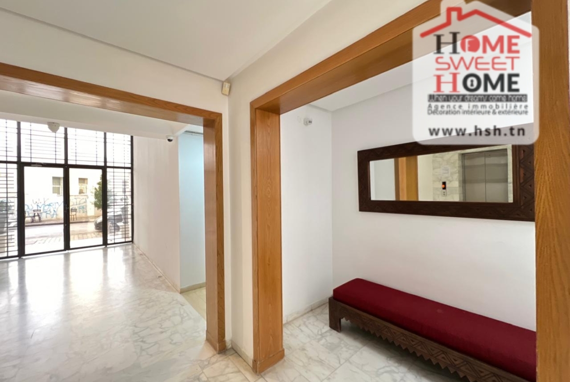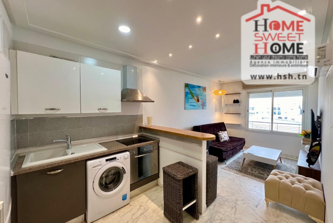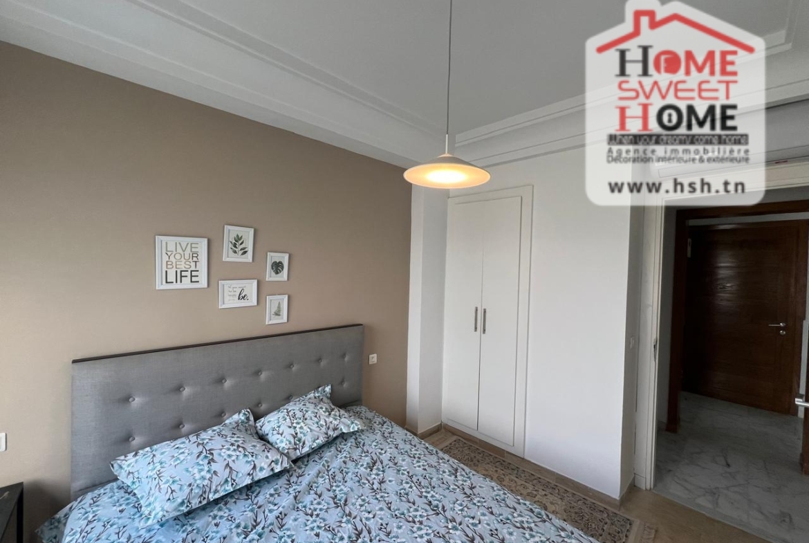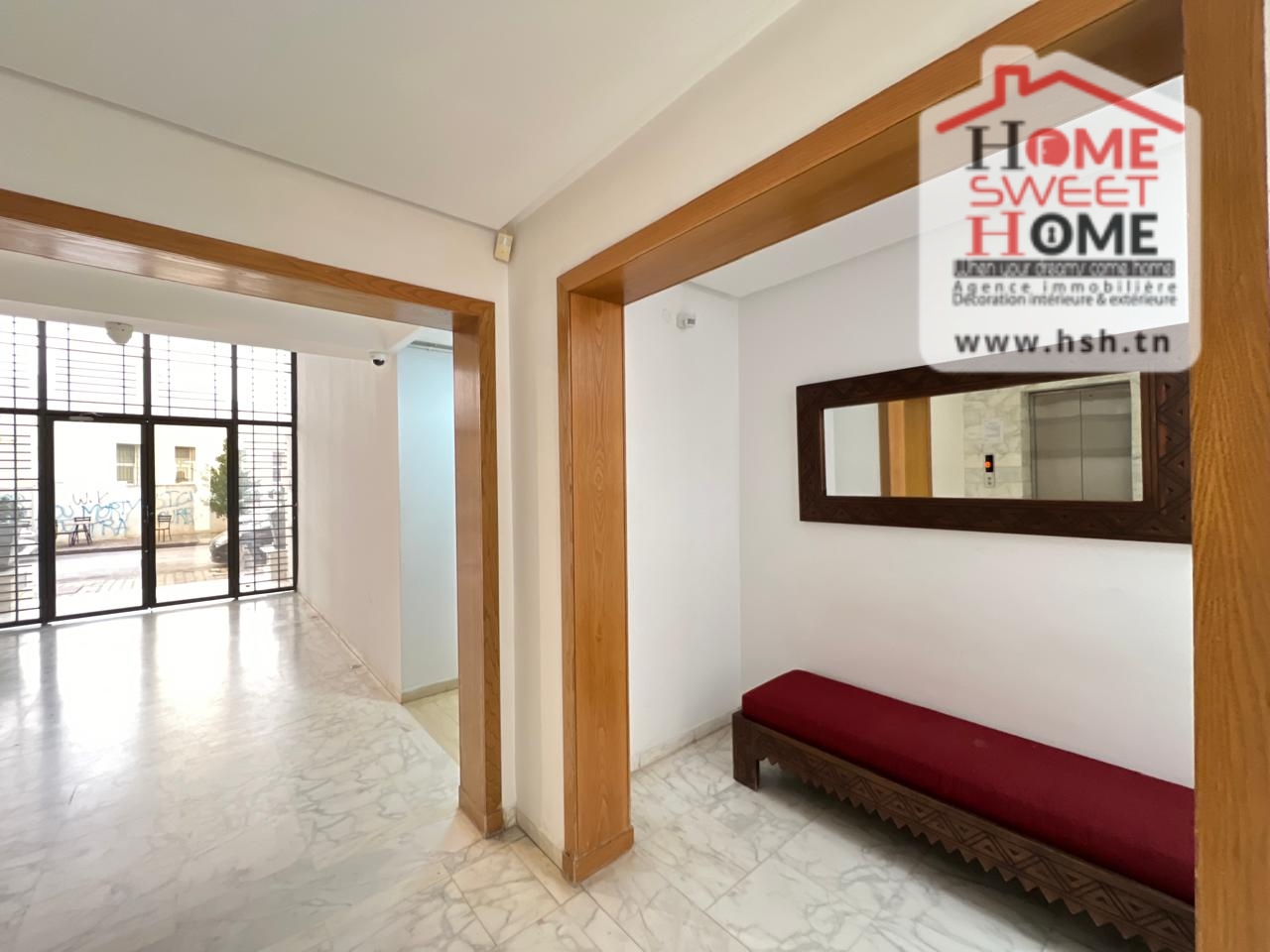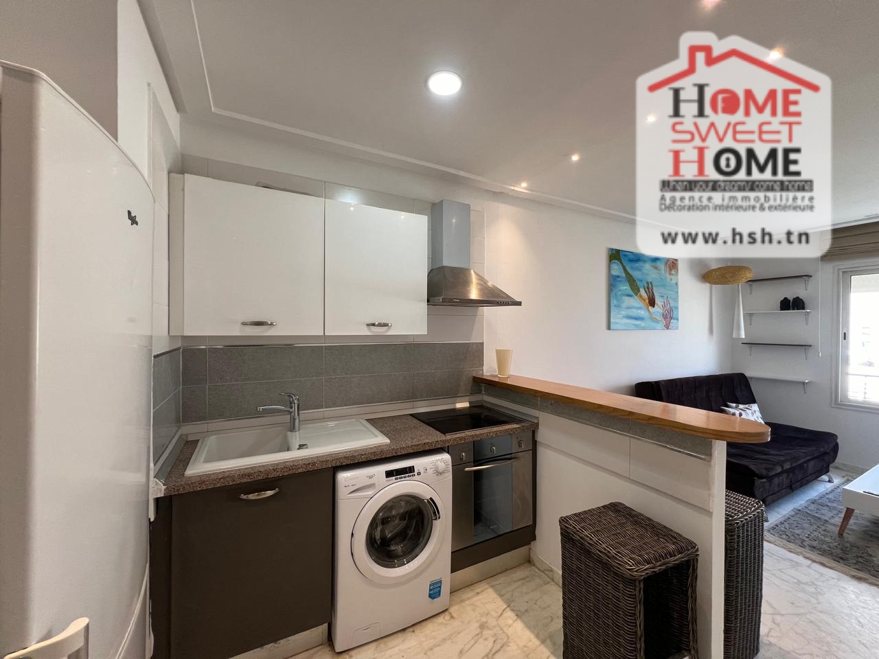 Un Appart haut standing au 3 éme étage situé au Berges du Lac 2. A l’entrée, on a une cuisine équipée ouverte sur un salon, une chambre à coucher et une salle de bain. A l’extérieur, on a une place de parking sous-sol.