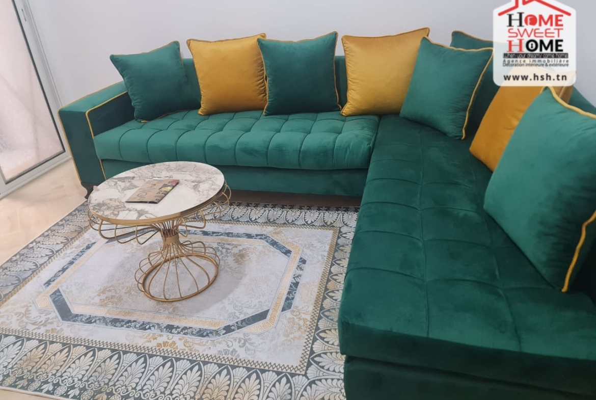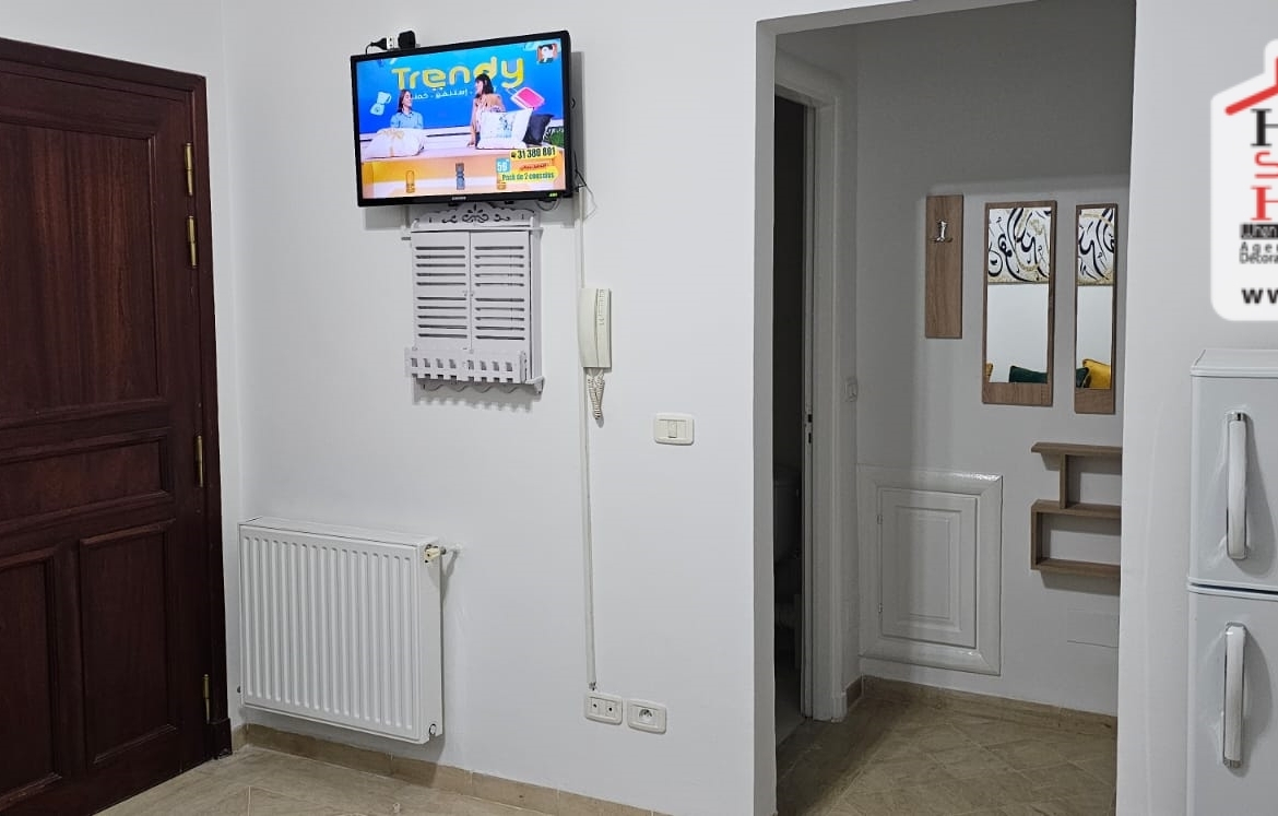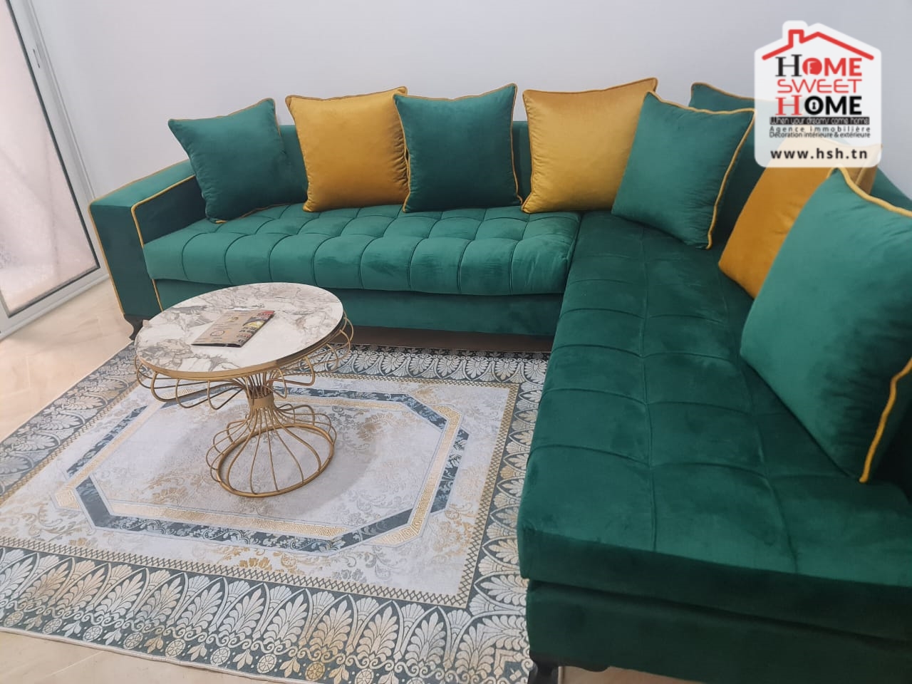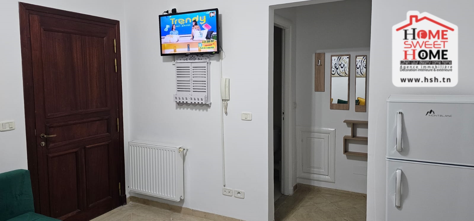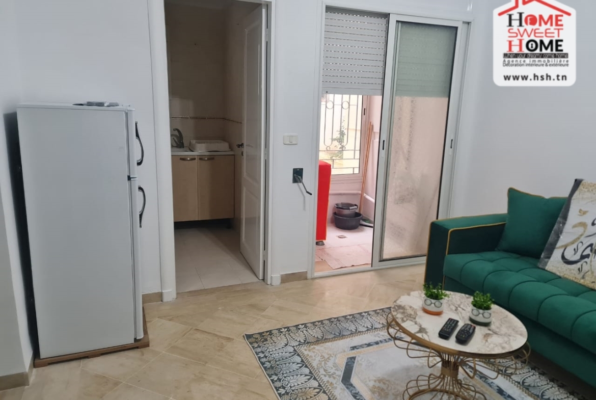 Un coquet appart richement meublé situé au RDC dans une residence à Riadh EL Andalous. A l’entrée, on trouve un salon avec balcon, une cuisine équipée avec séchoir, une chambre avec placard et une salle de bain. A l’extérieur, on a un abris de voiture.