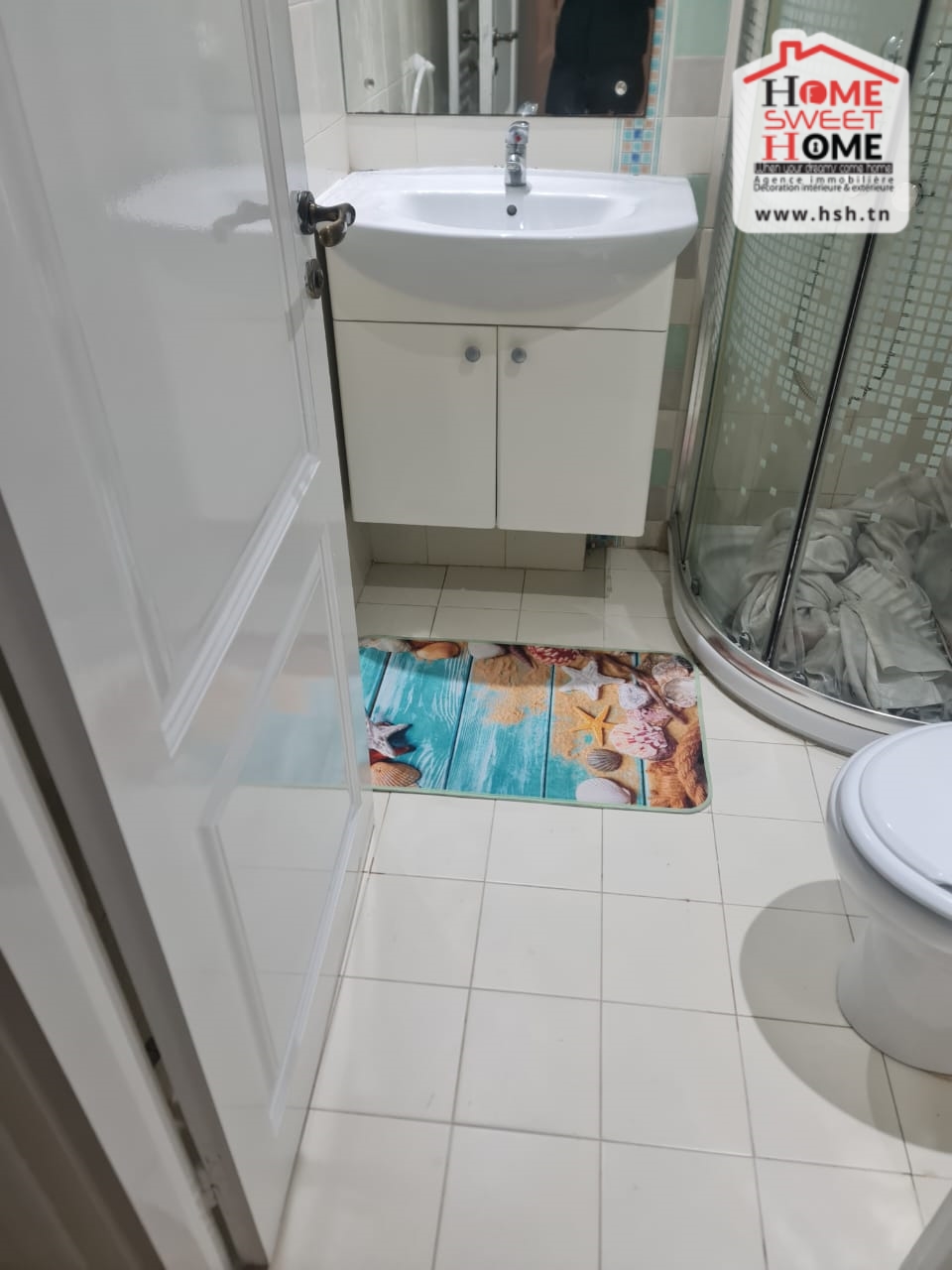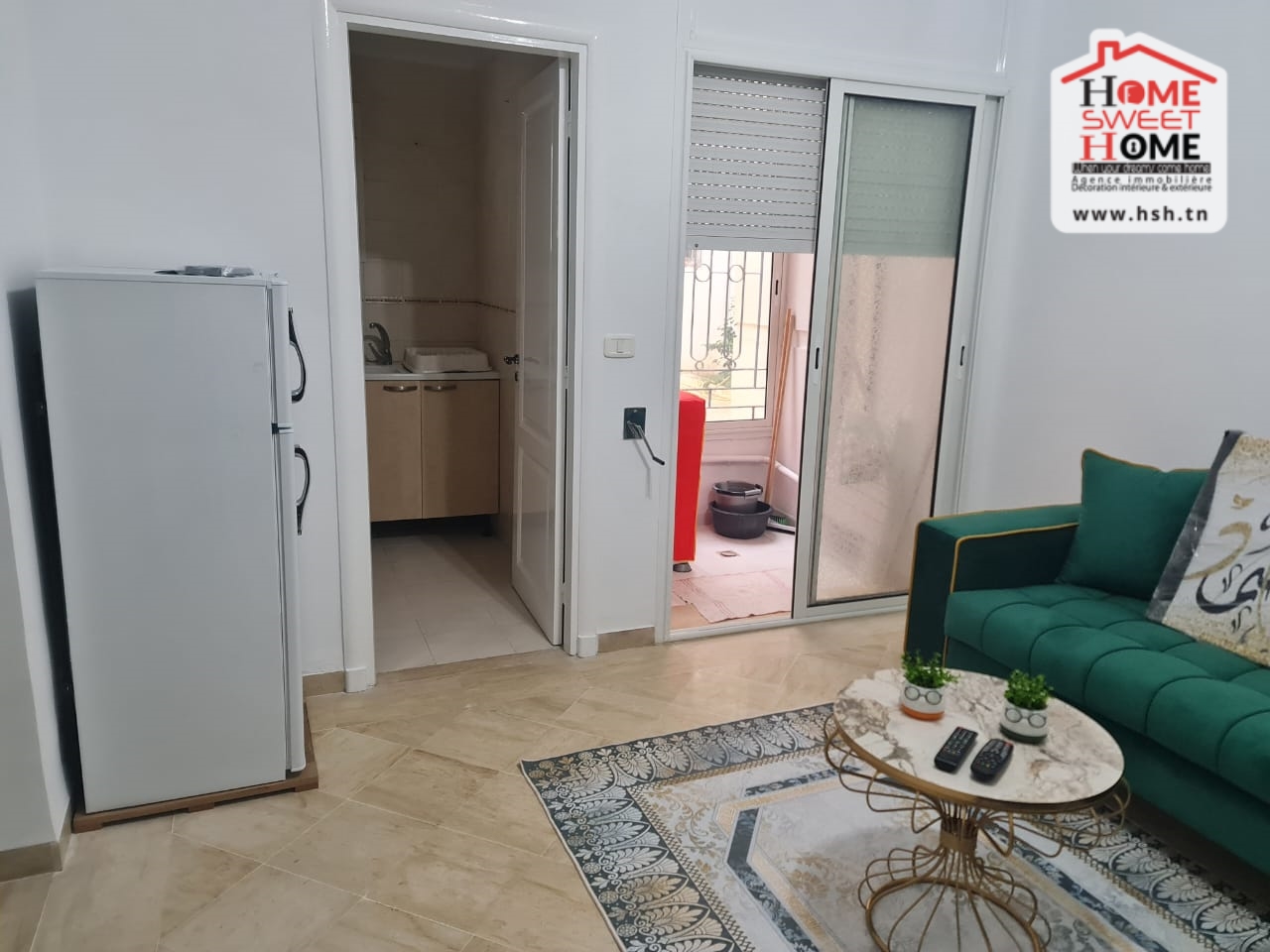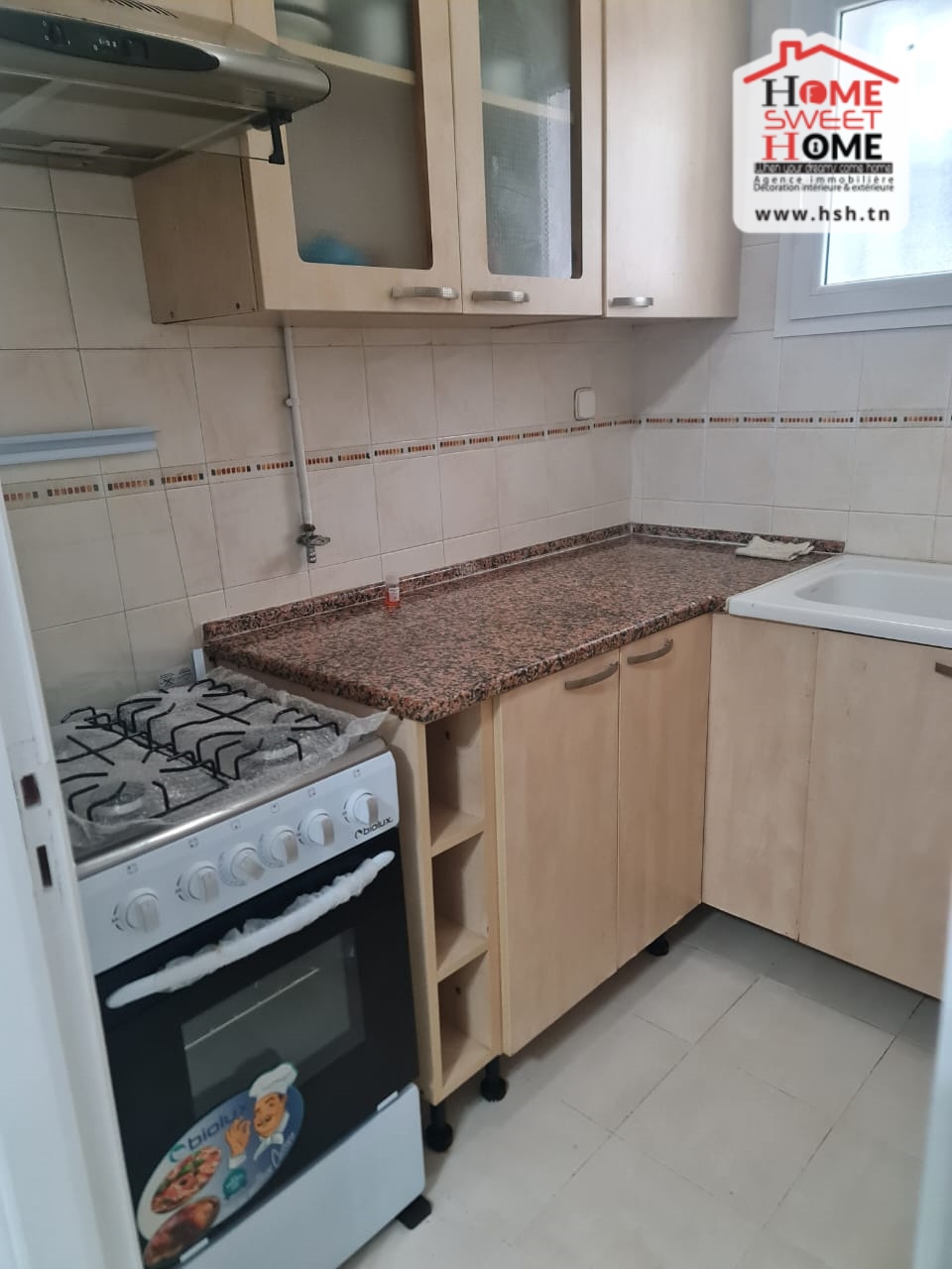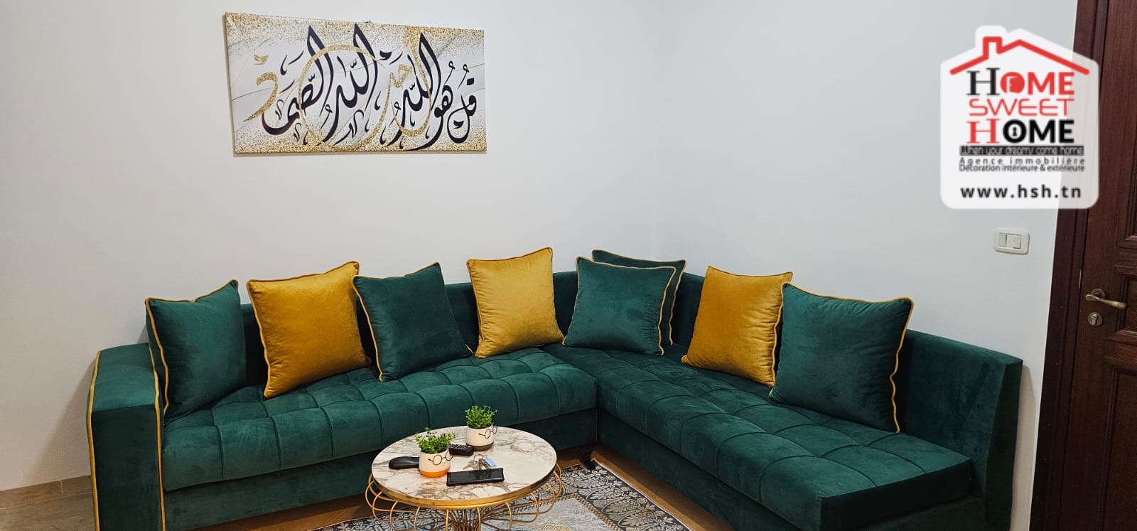 Un coquet appart richement meublé situé au RDC dans une residence à Riadh EL Andalous. A l’entrée, on trouve un salon avec balcon, une cuisine équipée avec séchoir, une chambre avec placard et une salle de bain. A l’extérieur, on a un abris de voiture.