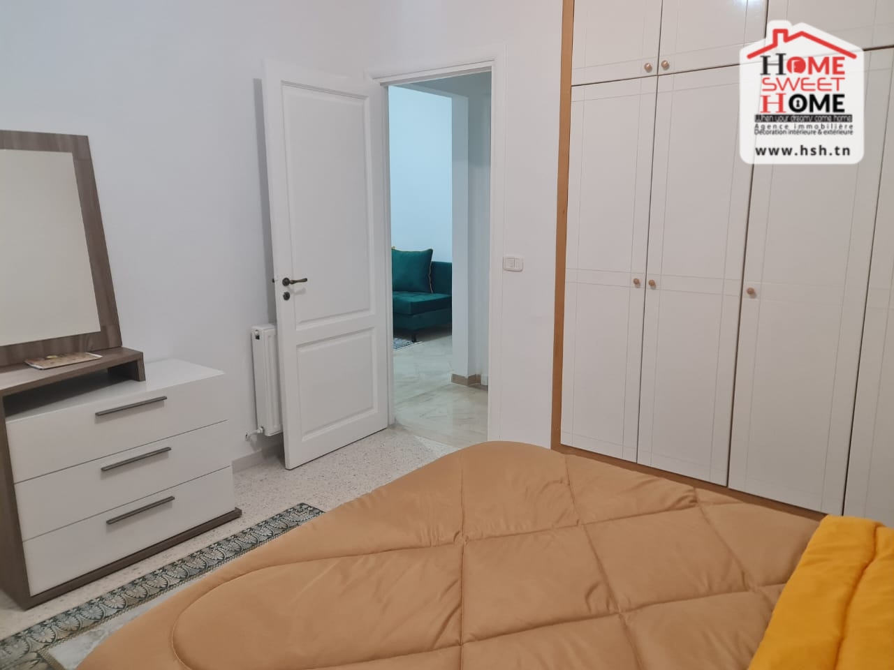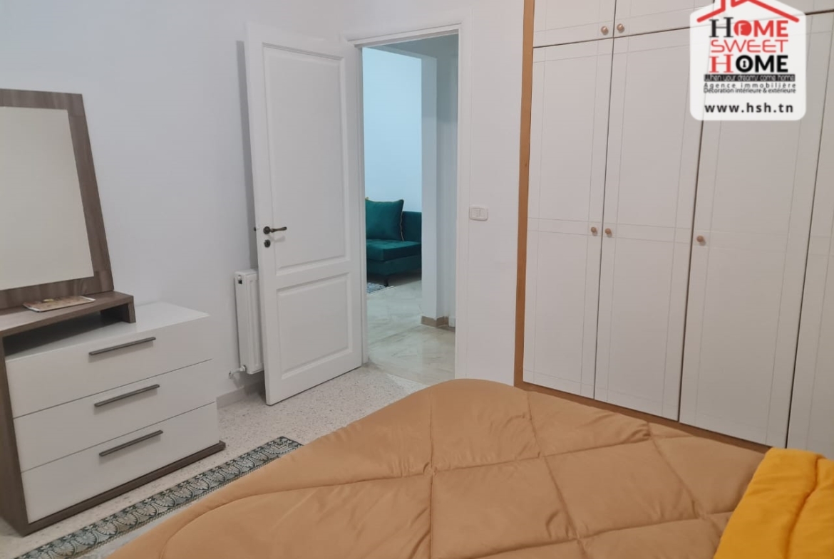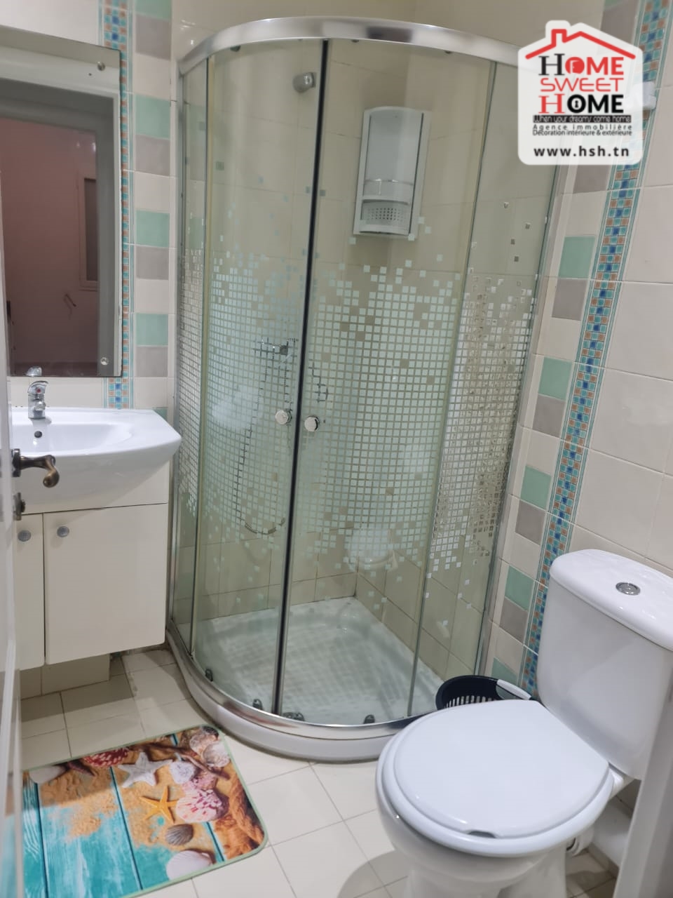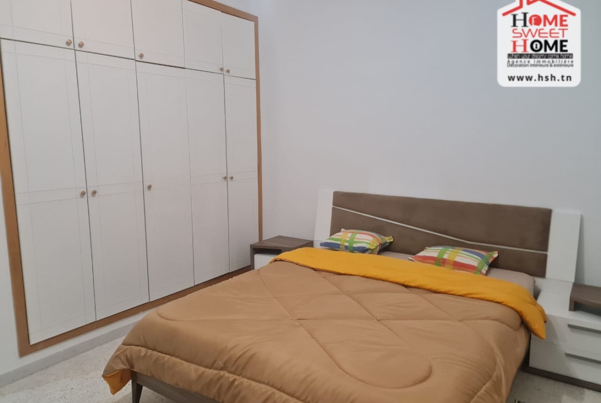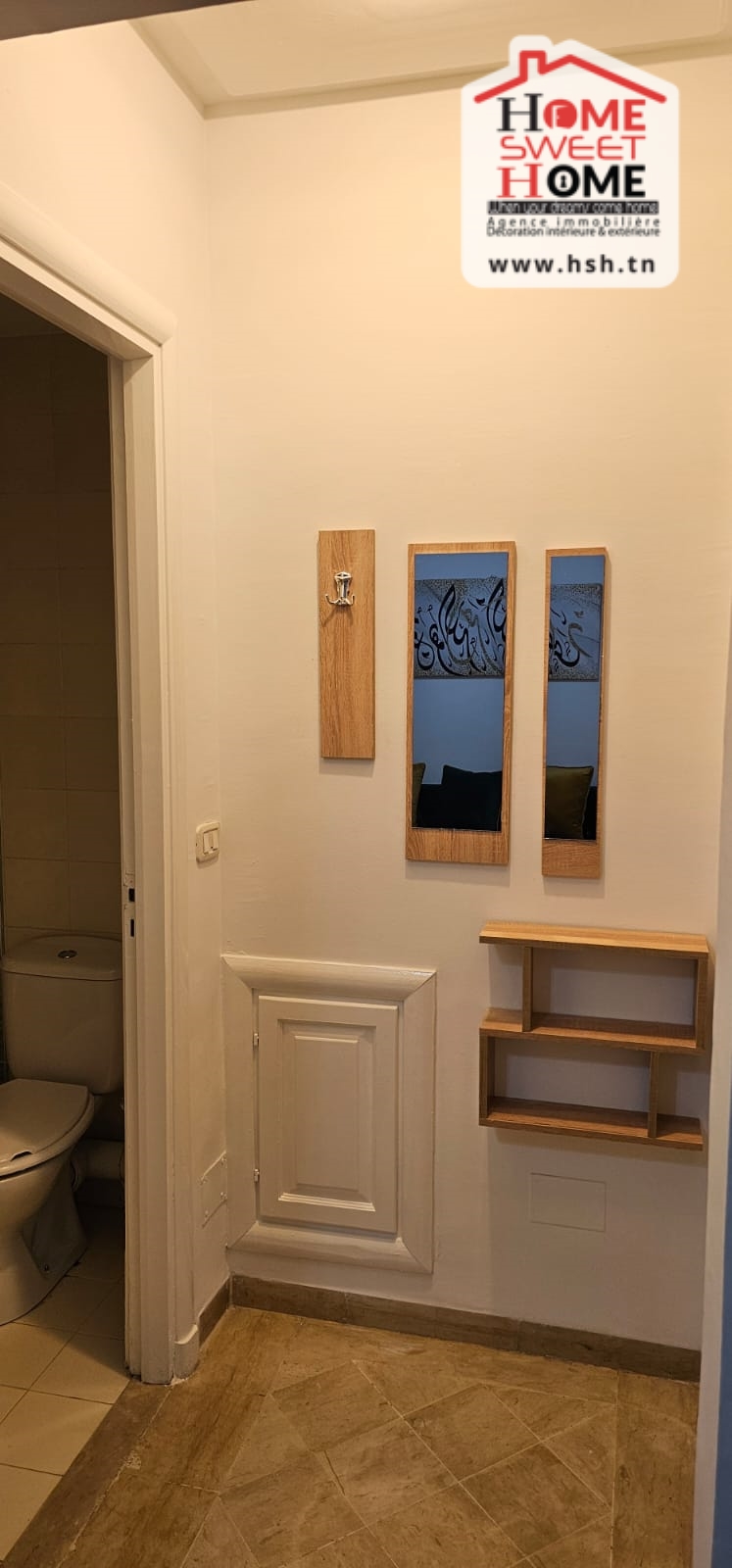 Un coquet appart richement meublé situé au RDC dans une residence à Riadh EL Andalous. A l’entrée, on trouve un salon avec balcon, une cuisine équipée avec séchoir, une chambre avec placard et une salle de bain. A l’extérieur, on a un abris de voiture.