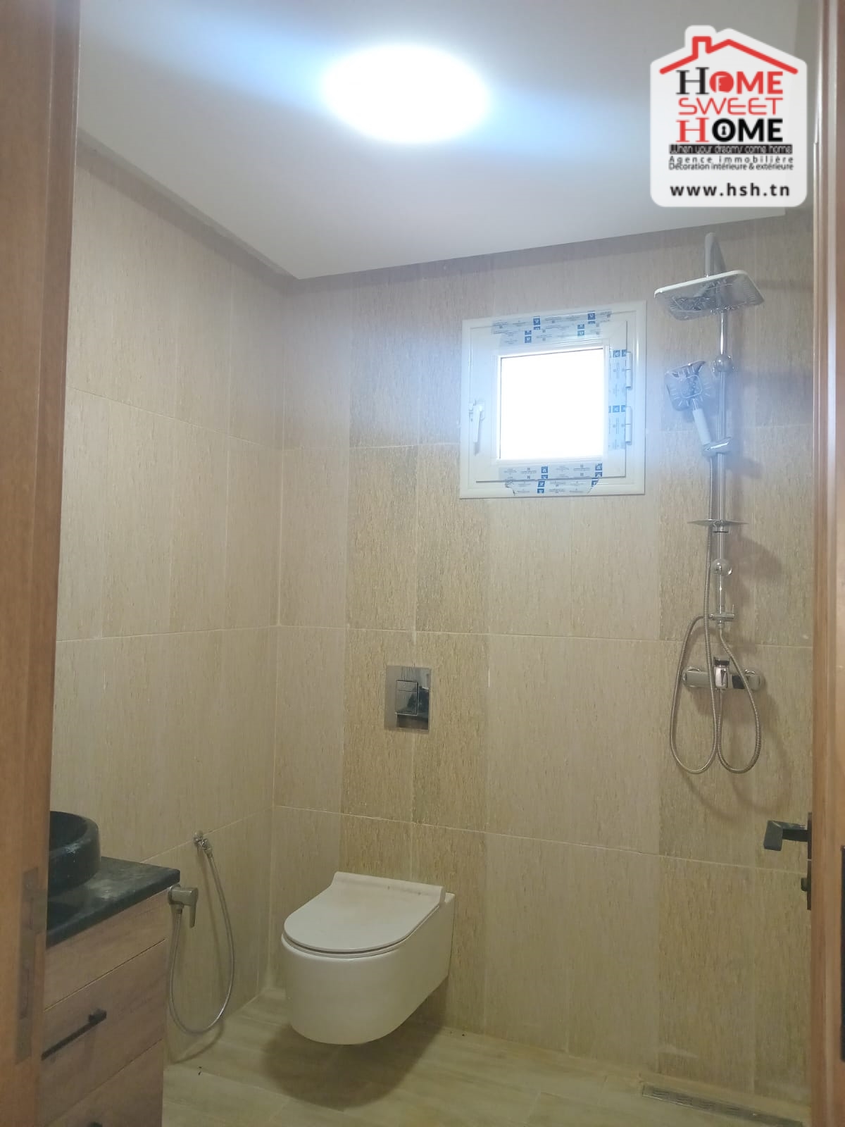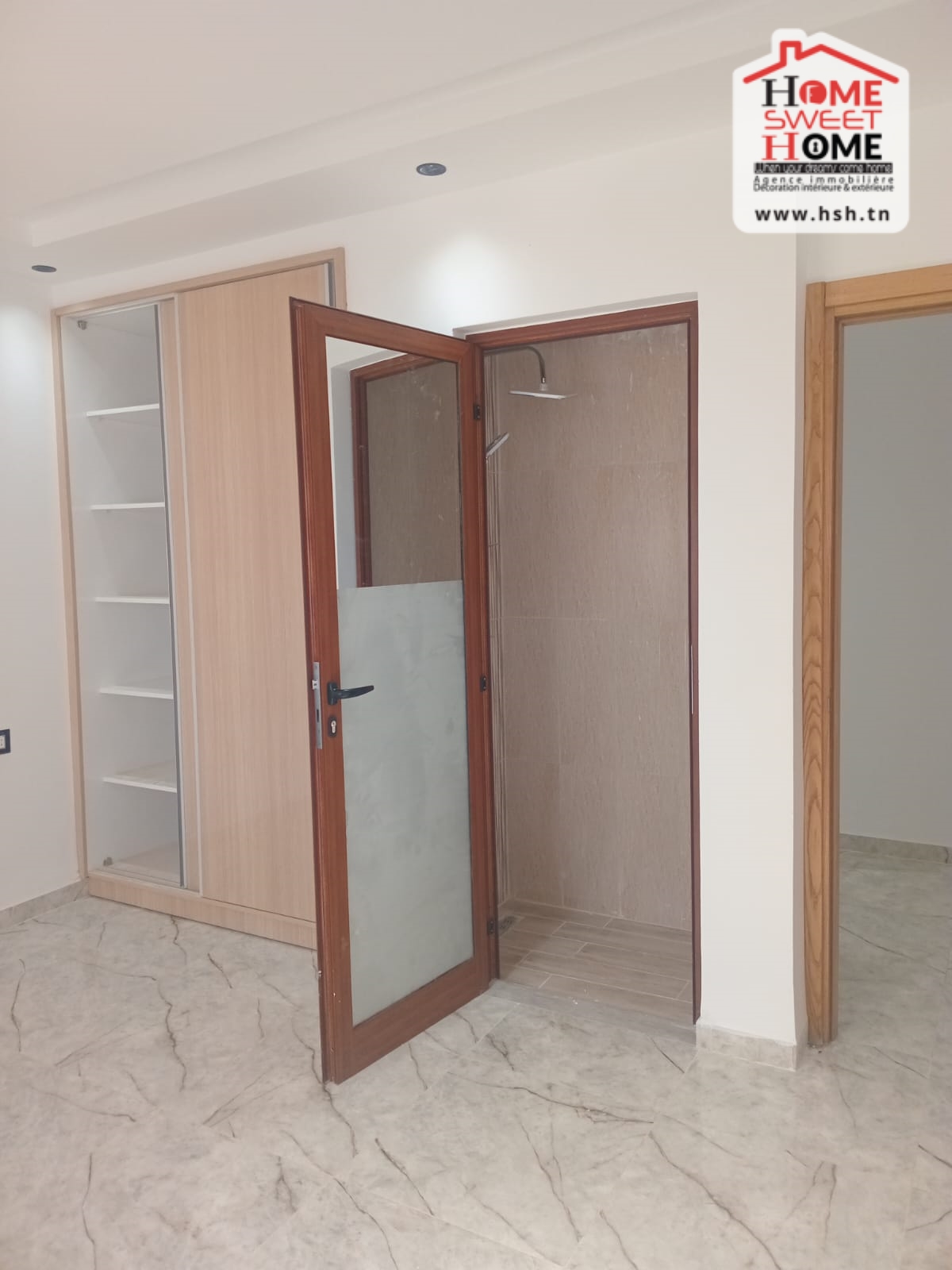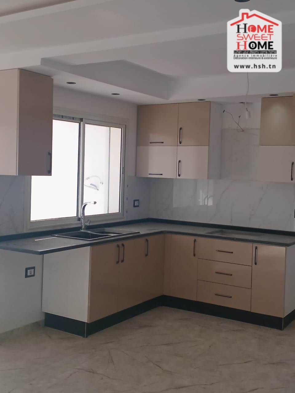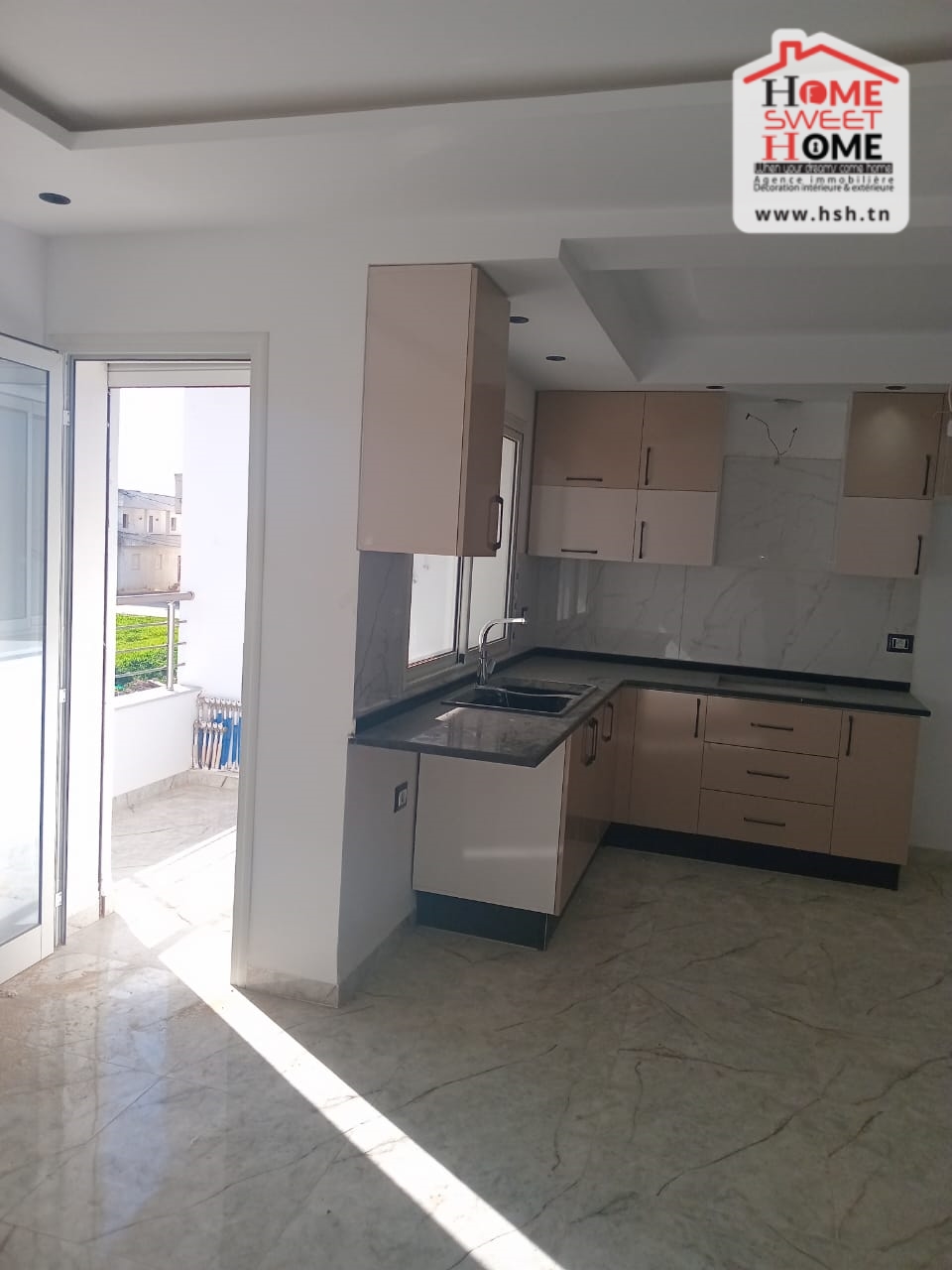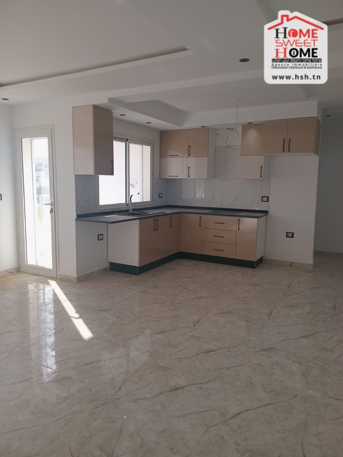 Un appart de haut standing situé au 2 éme étage de villa de haut standing avec une entrée indépendante situé dans un quartier résidentiel à Jinene Mansoura, Kélibia. Côté Jour, On a une cuisine équipée ouverte sur un salon avec balcon. Côté Nuit, On a 2 chambres et une salle de bain.