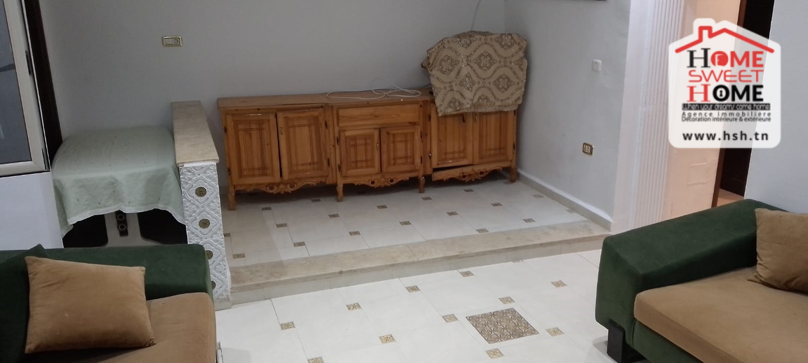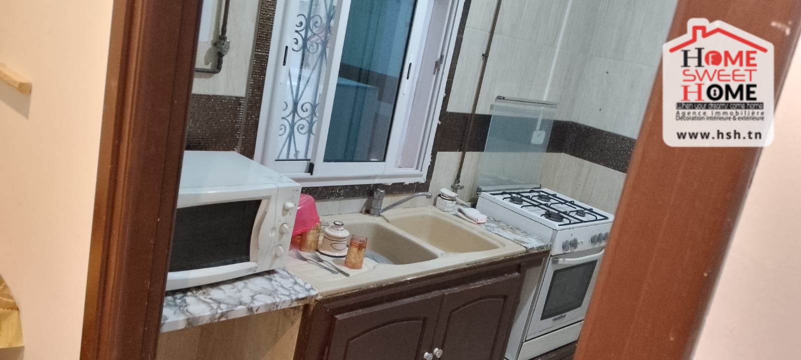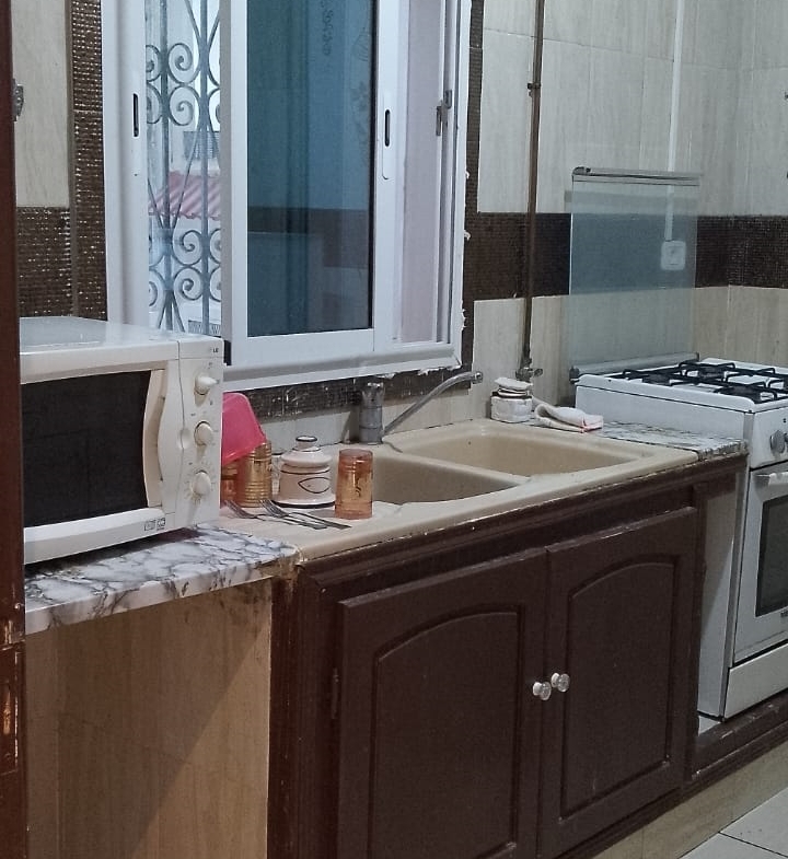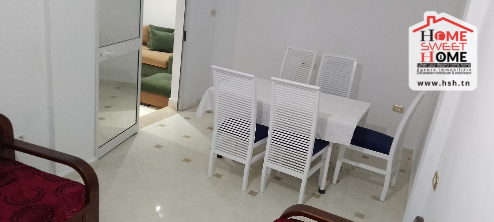 Un appart richement meublé avec une entrée indépendante situé au RDC dans un immeuble à Sidi Abdelaziz ,la Marsa. A L’entrée, on a un salon, salle à manger, une cuisine équipée, 2 chambres et une salle d’eau avec cabine de douche. A L’extérieur, On a une terrasse.