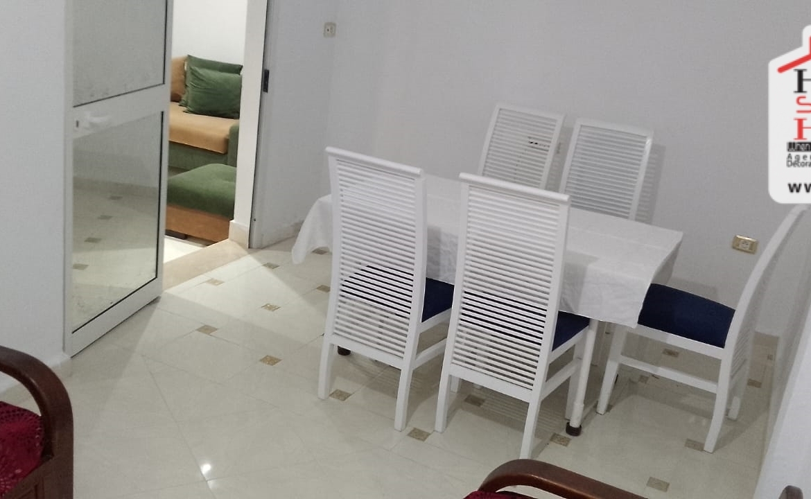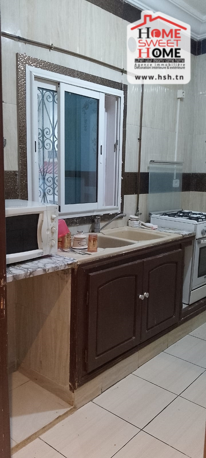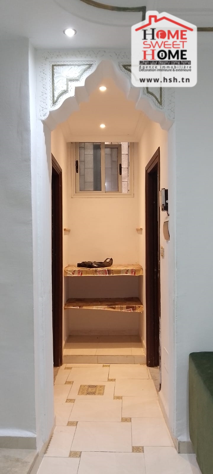 Un appart richement meublé avec une entrée indépendante situé au RDC dans un immeuble à Sidi Abdelaziz ,la Marsa. A L’entrée, on a un salon, salle à manger, une cuisine équipée, 2 chambres et une salle d’eau avec cabine de douche. A L’extérieur, On a une terrasse.
