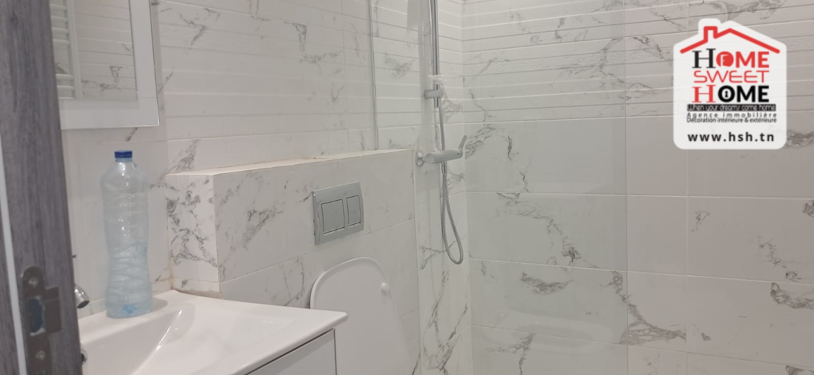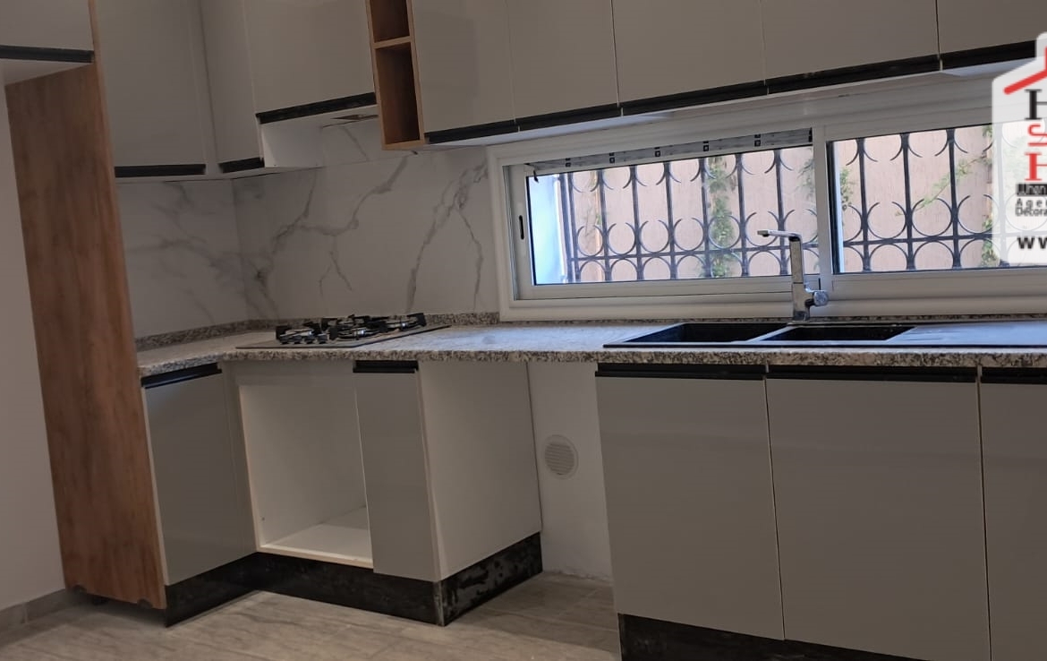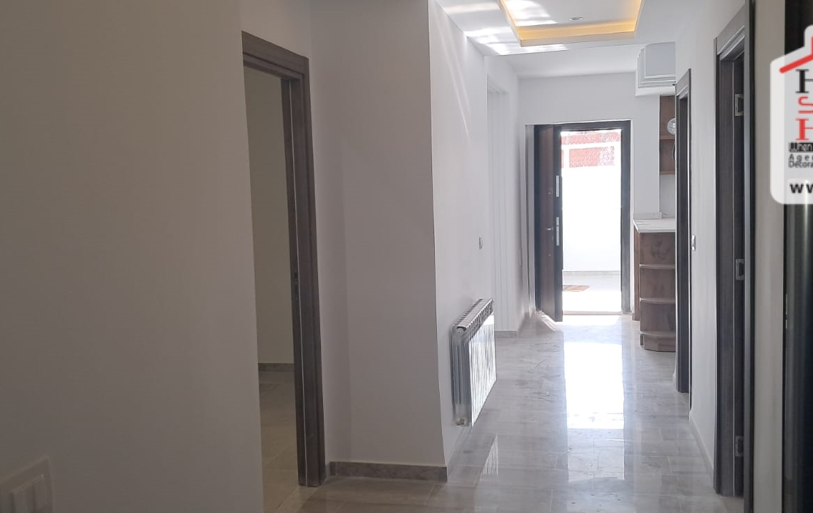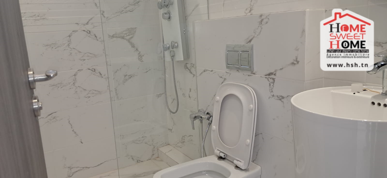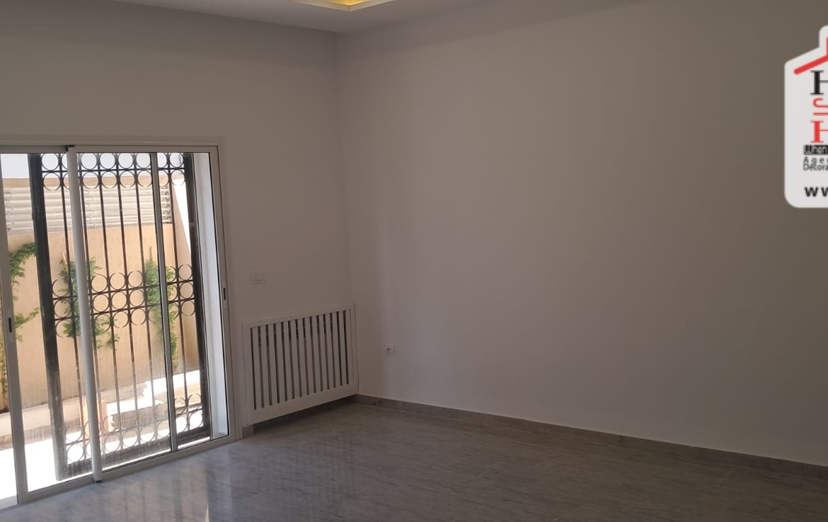 Un appart de haut standing jamais habité situé au RDC d’un immeuble à 50 m de la plage à Carthage Salambo. A L’entrée, On trouve un salon donnant sur une terrasse, une cuisine équipée avec séchoir, une salle d’eau pour les invités, 2 chambres et une salle de bain. NB: Le frais de syndic est inclus.
