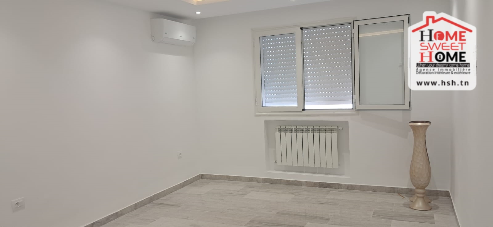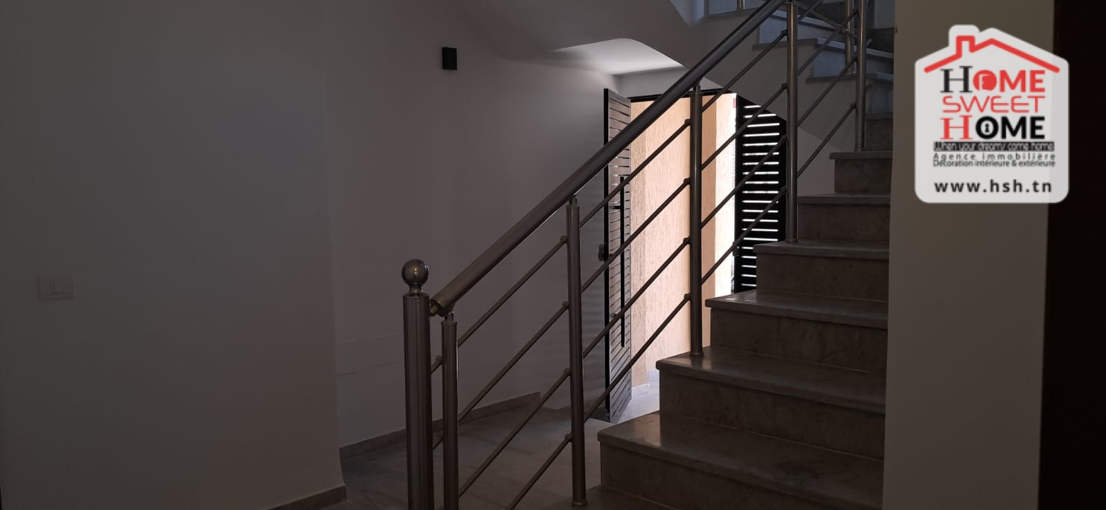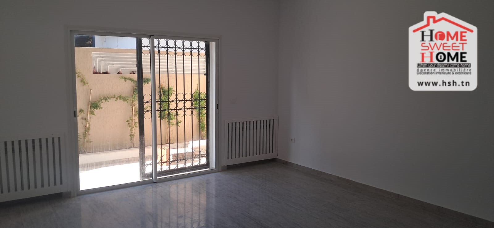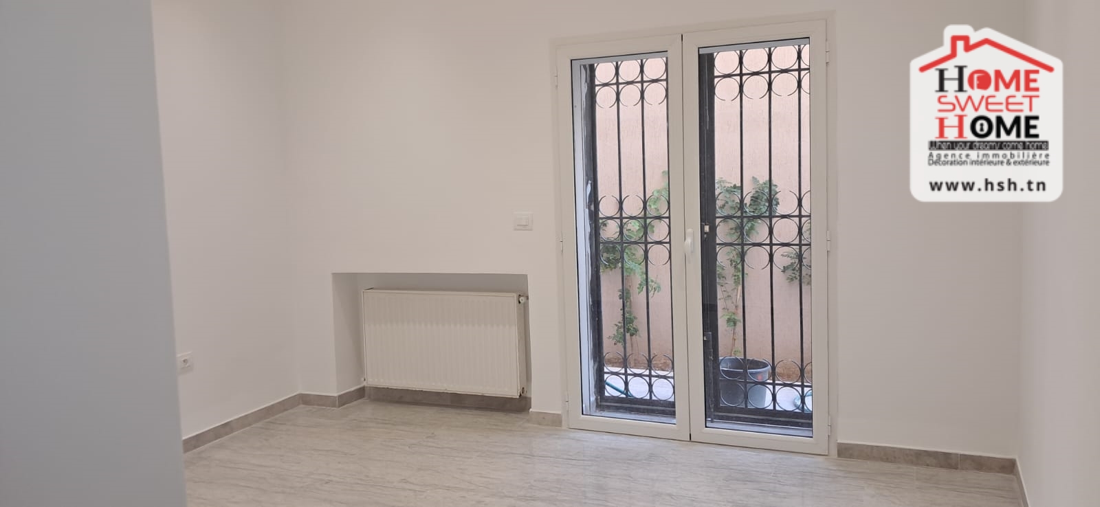 Un appart de haut standing jamais habité situé au RDC d’un immeuble à 50 m de la plage à Carthage Salambo. A L’entrée, On trouve un salon donnant sur une terrasse, une cuisine équipée avec séchoir, une salle d’eau pour les invités, 2 chambres et une salle de bain. NB: Le frais de syndic est inclus.