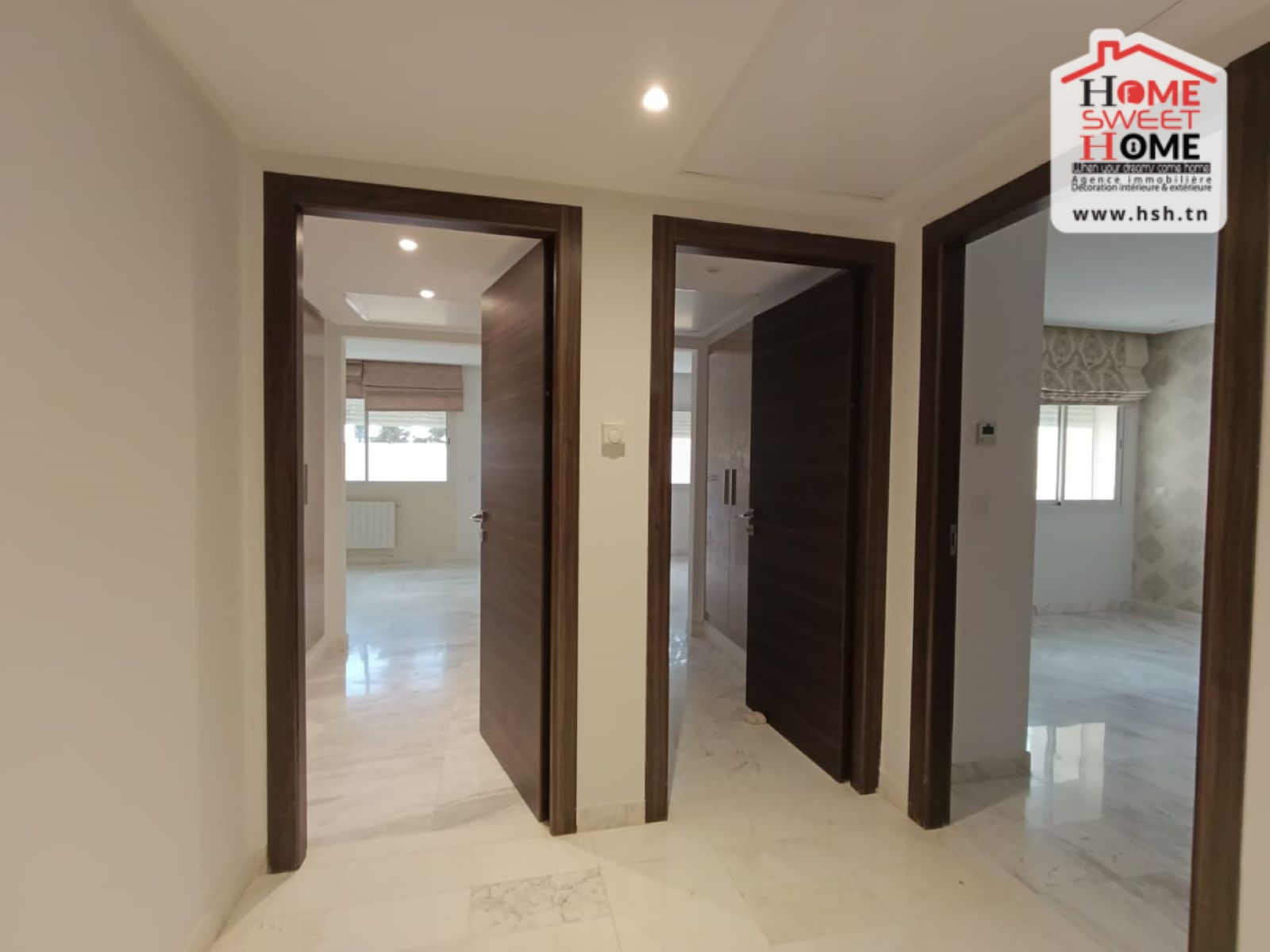 Un luxueux appartement situé au 1er étage dans une résidence de haut standing avec ascenseur à Ennasr 2. A L’entrée, On trouve un salon avec balcon, une cuisine équipée avec séchoir, une salle d’eau pour les invités, une suite parentale, 2 chambres avec dressing et une salle de bain. Cet appartement dispose également de 2 places de parking et d’un cellier au sous-sol. Pour tous les renseignements,