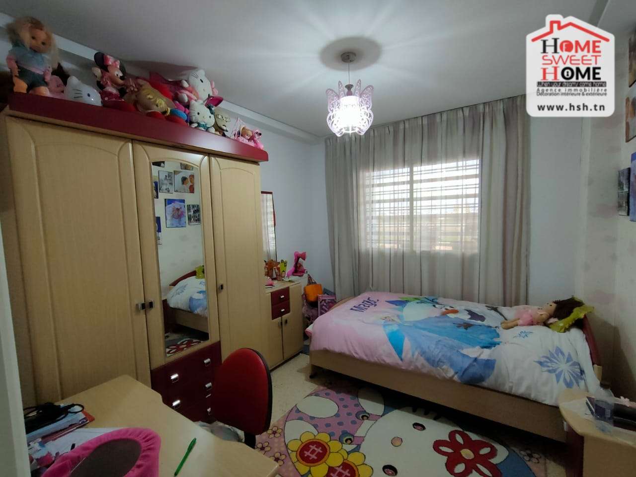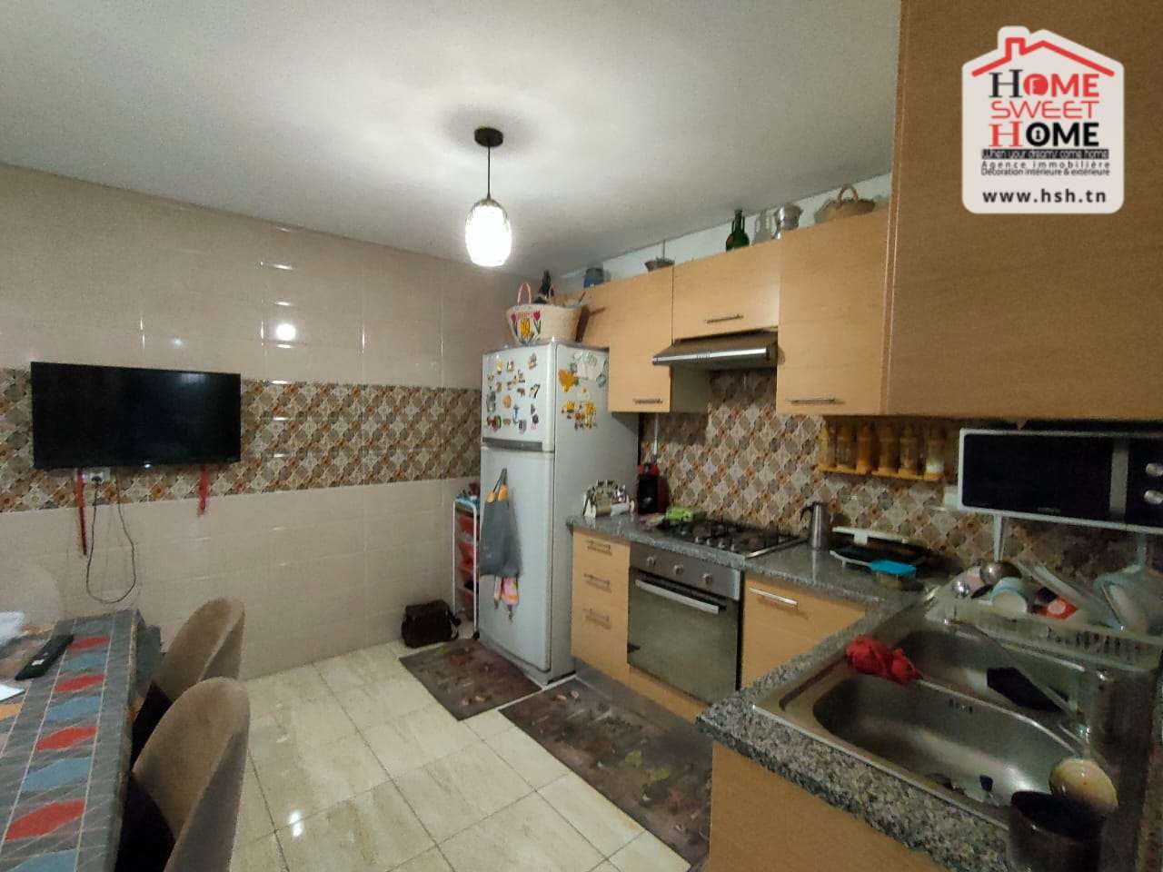 Un Appartement au 1ére étage avec ascenseur situé dans un bon quartier à Rades . A l’entrée, On a un salon , une cuisine équipée , 3 chambres et une salle de bain . A l’extérieur, on a un balcon et une place de parking.