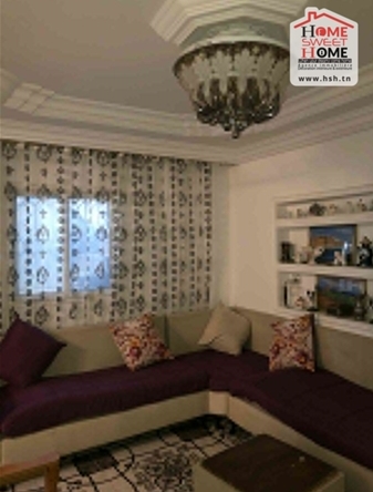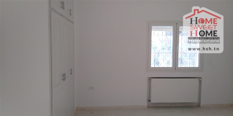 Un 2 éme étage S3 avec une entrée indépendante situé dans un quartier derrière Raja Haider, la Marsa. On a un salon, une cuisine équipée avec séchoir, une salle d’eau pour les invités, une suite parentale, 2 chambres et une salle de bain.