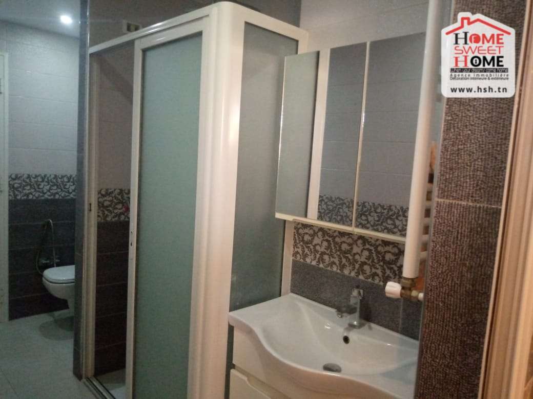 | Un coquet appart au 2 éme étage situé dans un immeuble à Borj Cedria. A L’entrée, On a un grand salon, une cuisine équipée avec grand balcon, une salle d’eau avec douche, 3 chambres avec placards et un hammam avec souna. NB: Tous les équipements et les meubles seront vendus et inclus dans le prix de l’appartement et les équipements et les meubles sont tout neufs et jamais utilisés. |