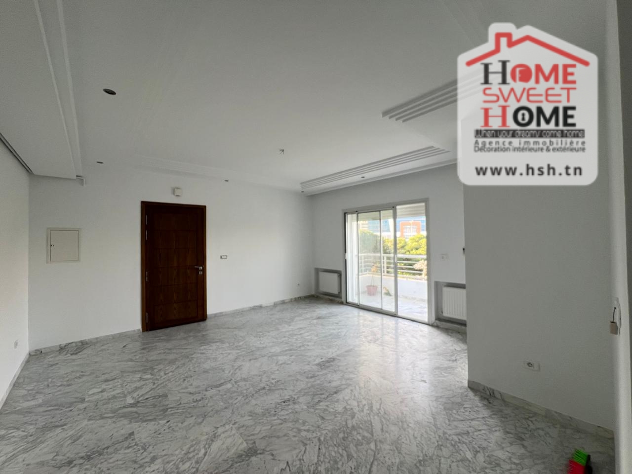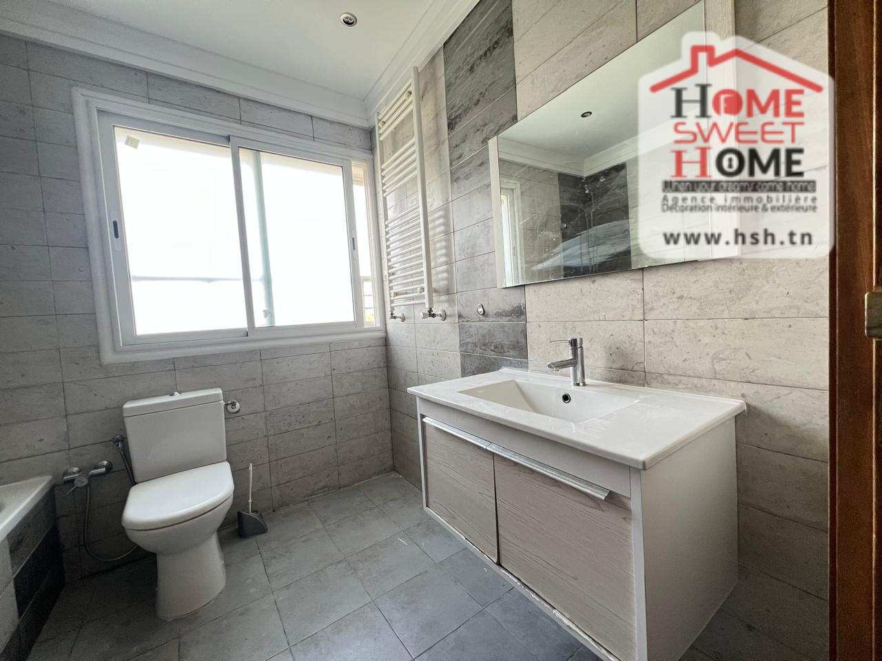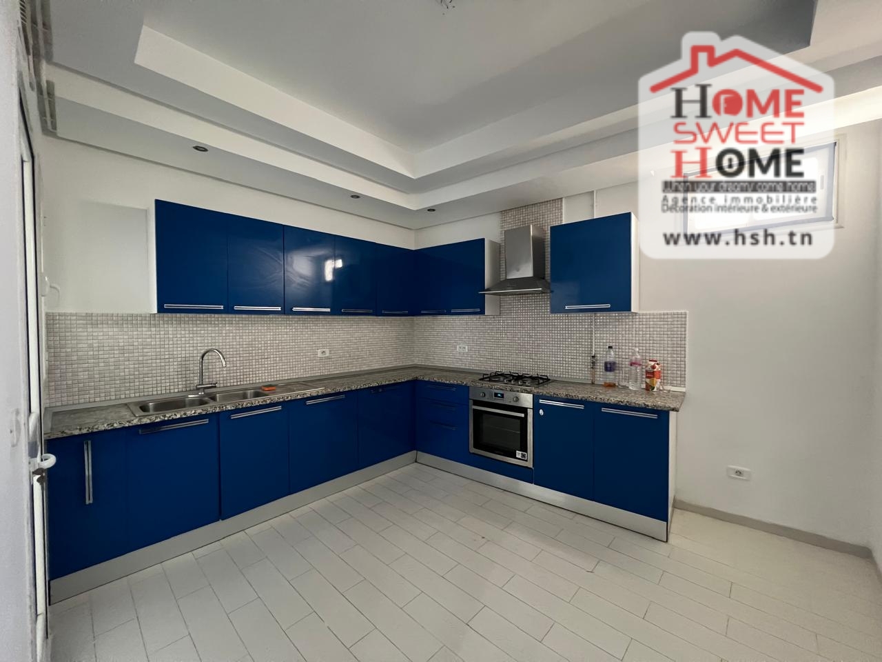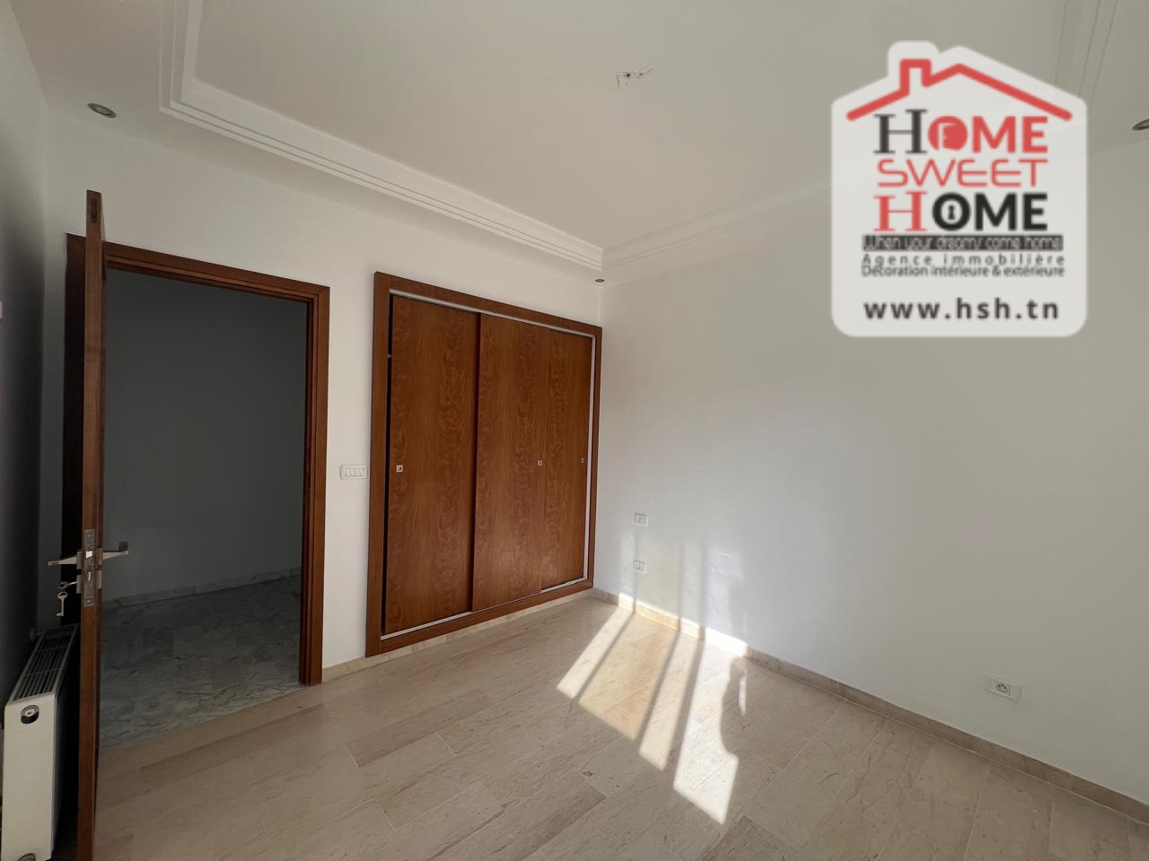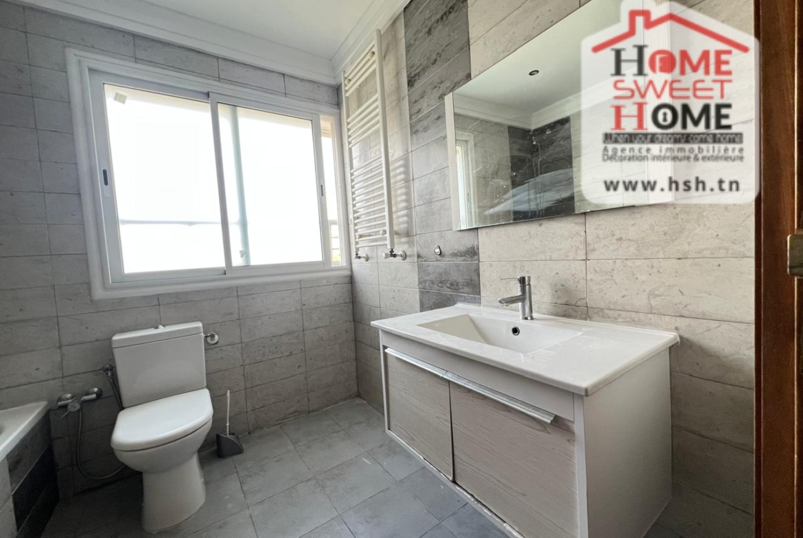 Un appartement S3 haut standing situé au 1er étage d’une résidence à Ain Zaghouan Sud. À l’entrée, on trouve un salon avec balcon, une cuisine équipée avec séchoir, une salle d’eau pour les invités, 3 chambres (dont une avec dressing) et une salle de bain. Une place de parking est également disponible au sous-sol.