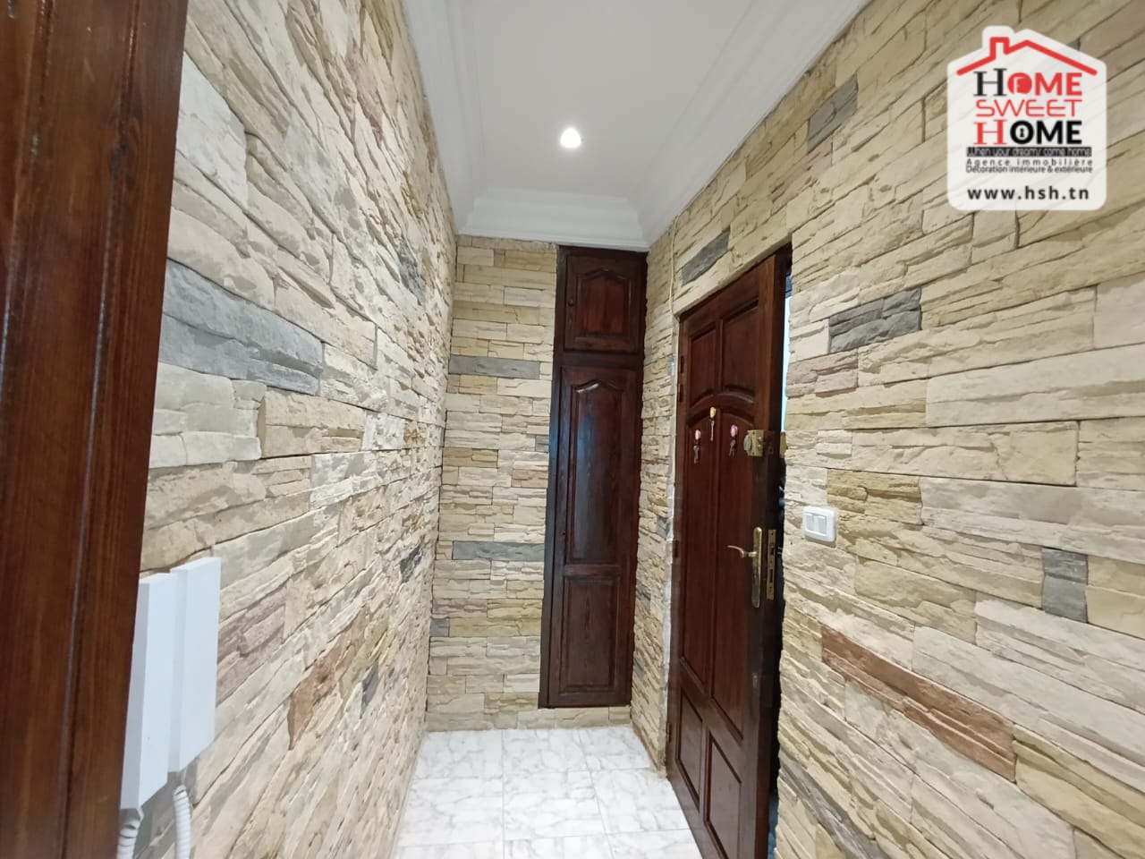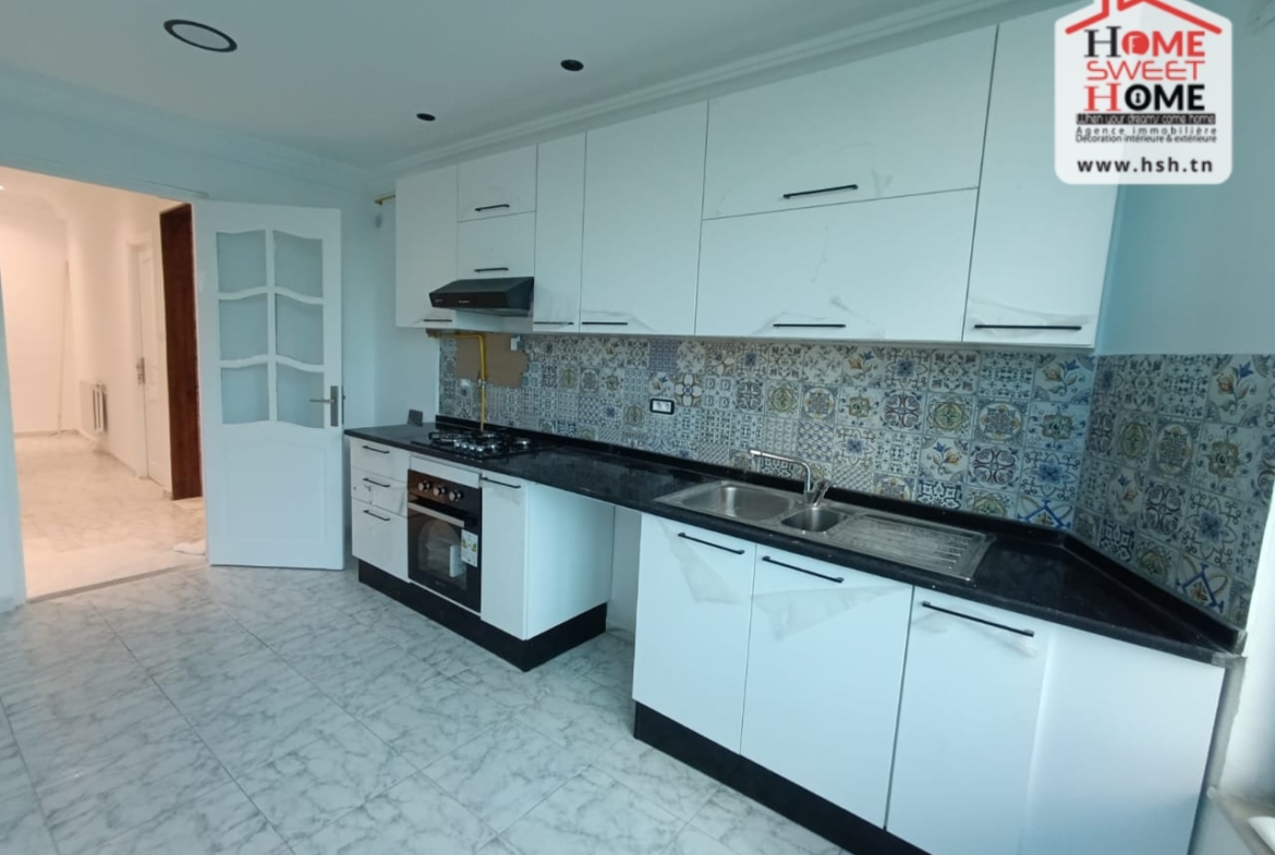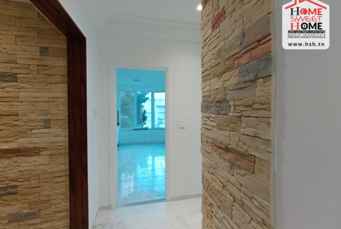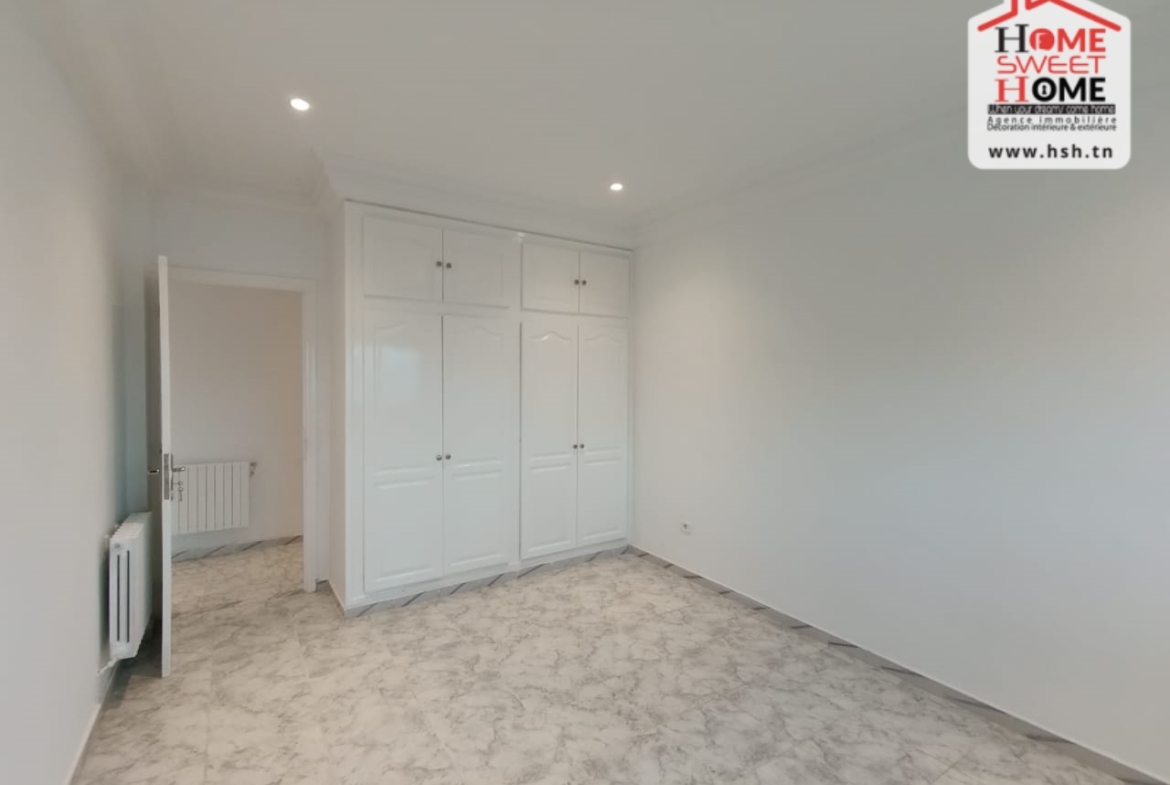 Un appart de charme situé au 2éme étage dans un immeuble à Bousalsla, La Marsa. A L’entrée, on a un salon, salle à manger, une cuisine équipée avec séchoir, une salle d’eau, une suite parentale, 2 chambres et une salle de bain
