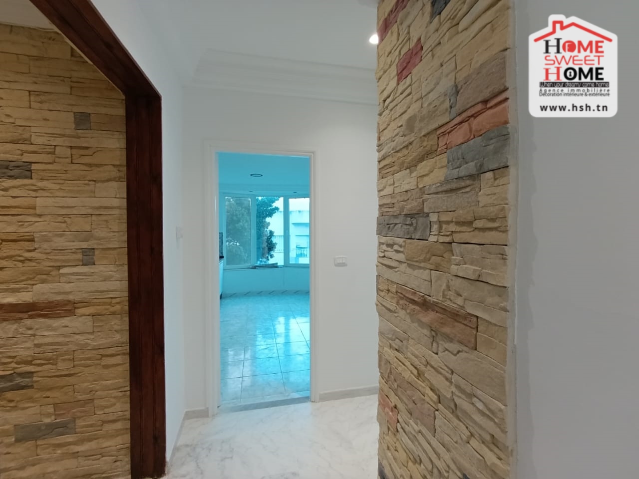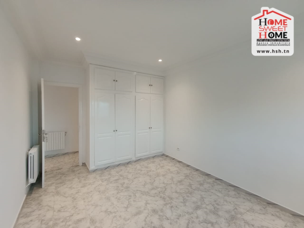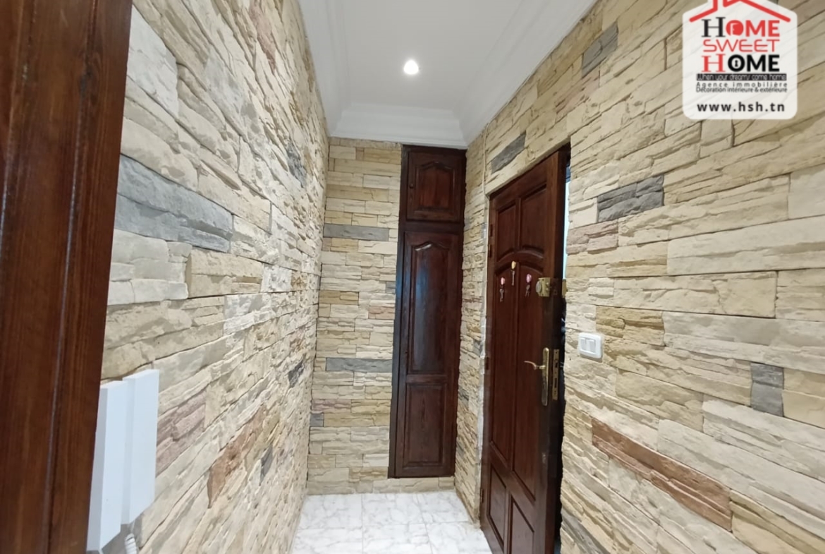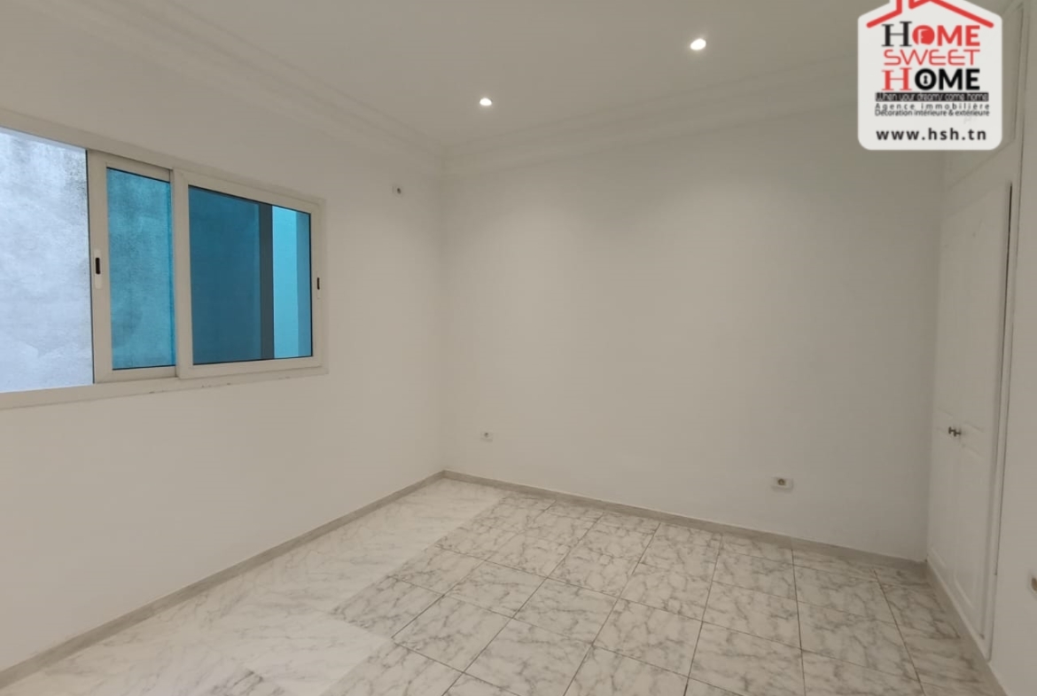 Un appart de charme situé au 2éme étage dans un immeuble à Bousalsla, La Marsa. A L’entrée, on a un salon, salle à manger, une cuisine équipée avec séchoir, une salle d’eau, une suite parentale, 2 chambres et une salle de bain