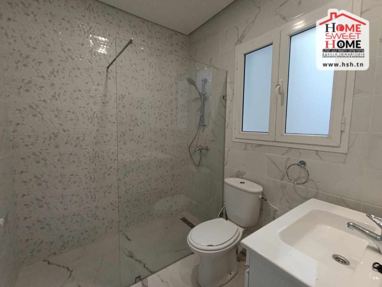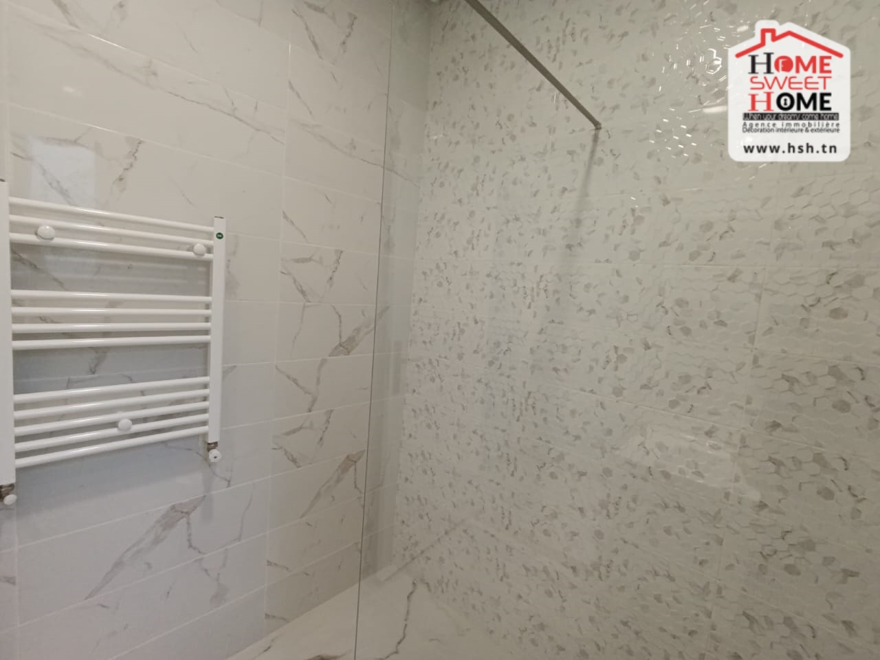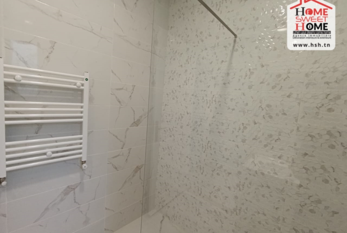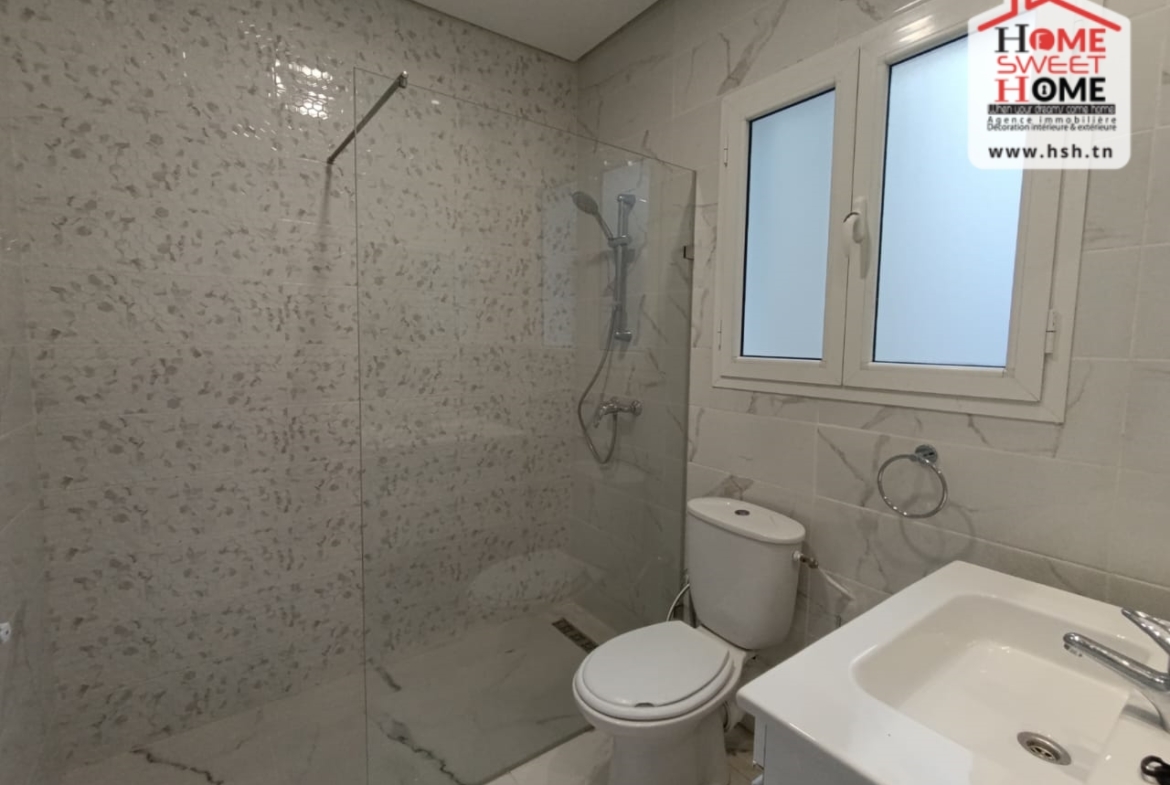 Un appart de charme situé au 2éme étage dans un immeuble à Bousalsla, La Marsa. A L’entrée, on a un salon, salle à manger, une cuisine équipée avec séchoir, une salle d’eau, une suite parentale, 2 chambres et une salle de bain