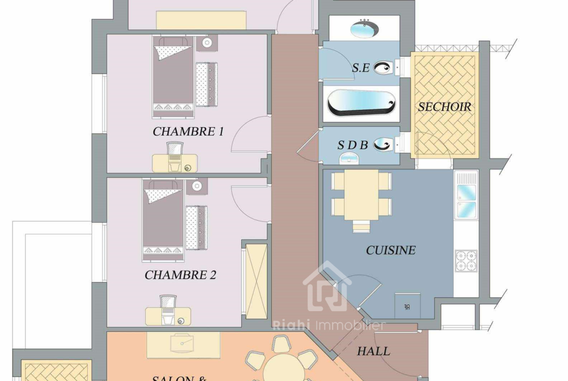 L’appartement comprend un spacieux salon qui s’ouvre sur un balcon , un long couloir ,3 chambres à coucher avec placards , une cuisine très bien équipée une salle d’eau et une salle de bain avec baignoire.