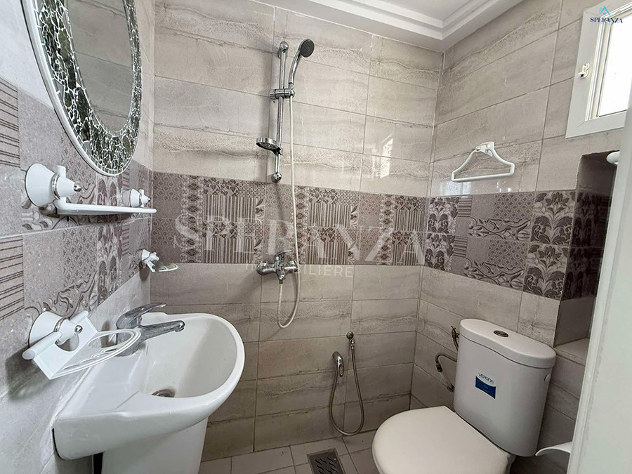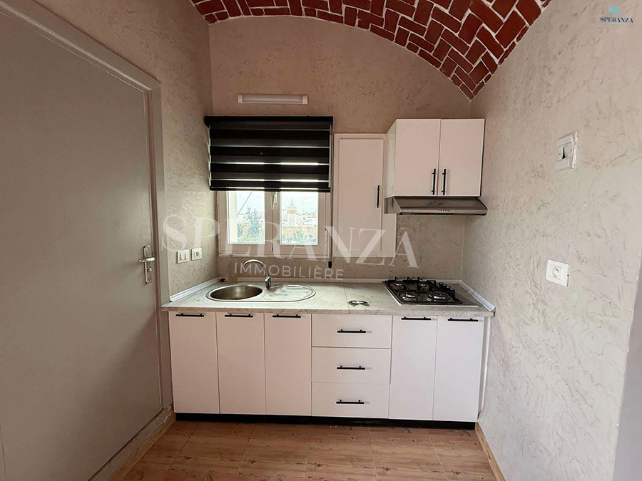 Speranza immobilière Hammamet vous propose à la vente Cet appartement au 2émé étage se situe à Hammamet centre proche de toutes les commodités. dans un quartier calme se compose :une chambre a coucher , salon , salle d’eau ,une kitchenette est bien équipée par plusieurs éléments de rangement une terrasse vue de mer .