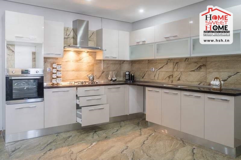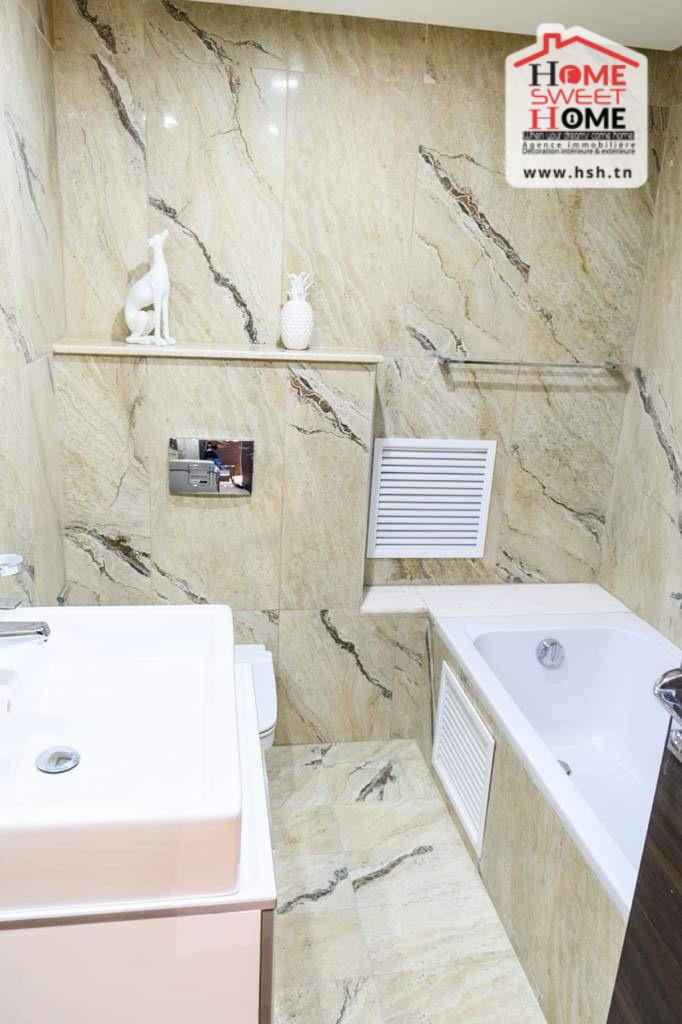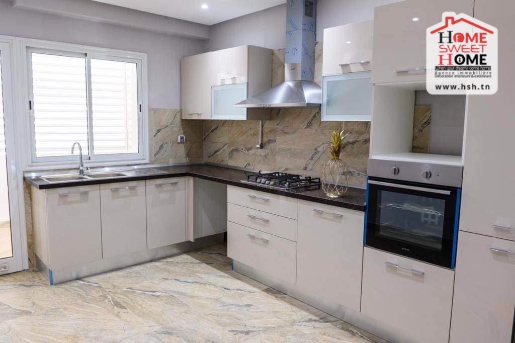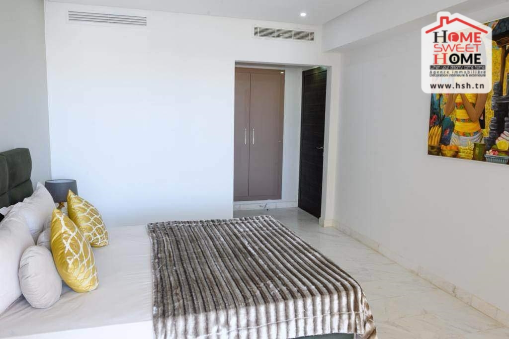 Un luxueux appart situé au RDC dans une résidence de haut standing à Ennasr 2. A L’entrée, On trouve un salon donnant sur une terrasse, une cuisine équipée avec séchoir, une suite parentale, 2 chambres avec dressing et une salle de bain. Cet appart dispose également d’une place de parking au sous-sol.