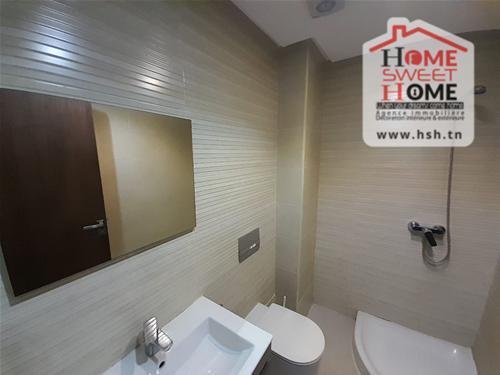 Un appartement S1 situé au 1ér étage dans une résidence. Côté de salon de thé, restaurants et magasins à l’aouina. On a salon, chambre à coucher,salle d’eau, cuisine équipée, climatisation et chauffage central. NB: le paiement est trimestriel avec caution 2 mois.