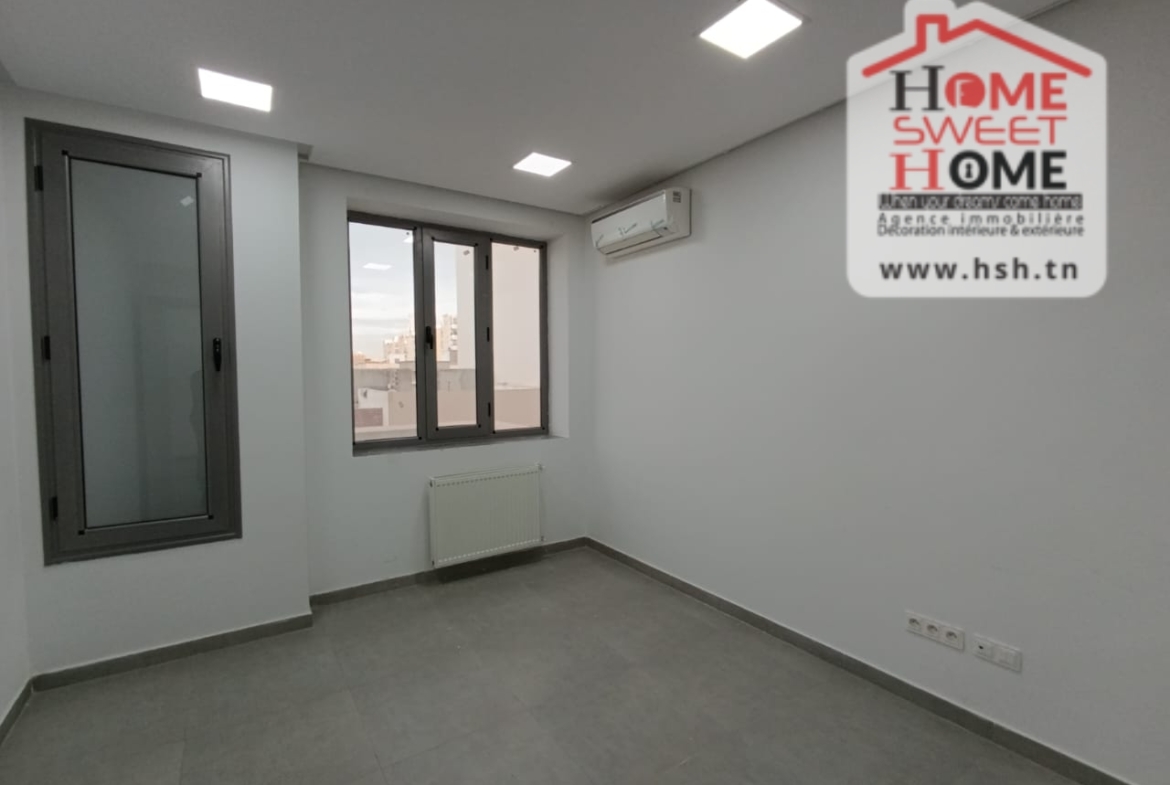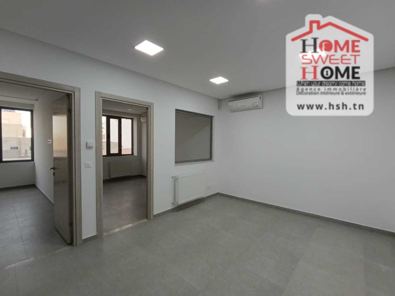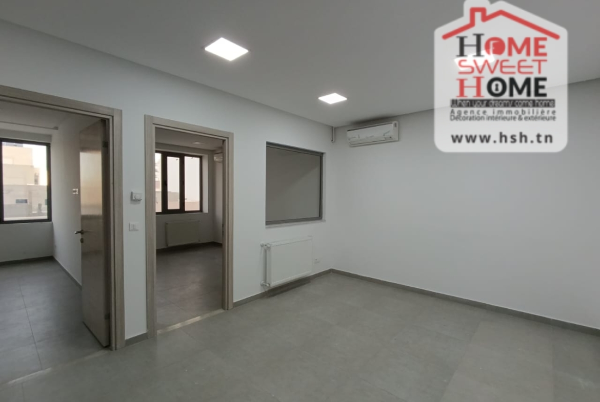 Un chic bureau H2 au 2ème étage avec double ascenseurs idéal pour un cabinet médical situé dans un immeuble bureautique à Ain Zaghouan. Il se compose d’un d’accueil, une kitchenette, 2 pièces et une salle d’eau.