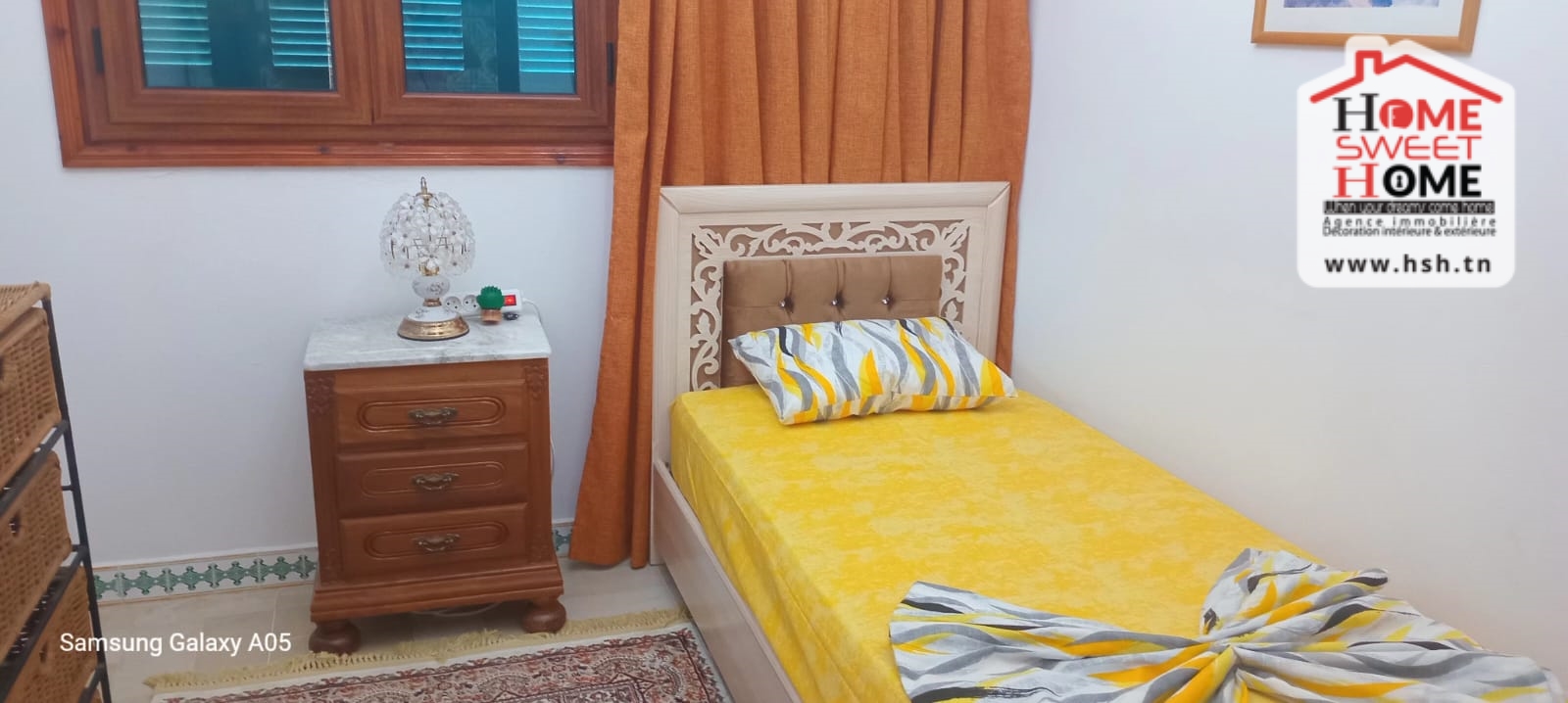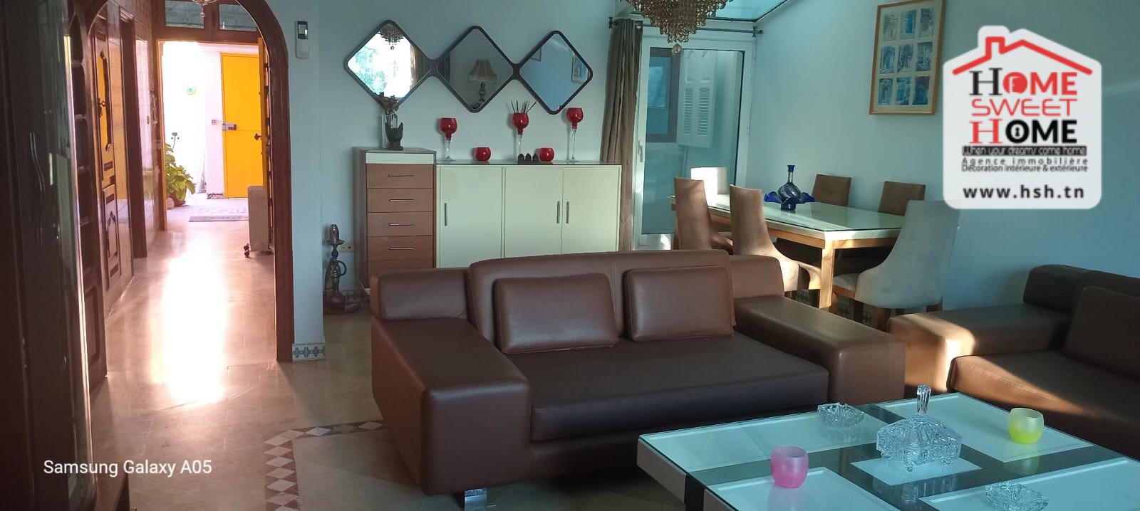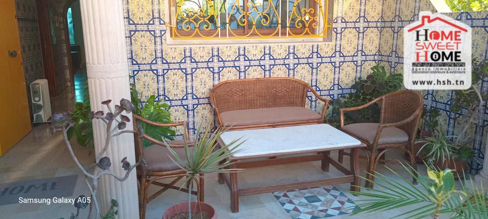 Un étage de villa richement meublé avec une entrée indépendante situé dans un quartier résidentiel à Sidi Bou Said. A L’entrée, On a un salon, salle à manger avec balcon, une cuisine, une salle d’eau, 3 chambres, une salle de bain et une terrasse au toit. NB: Le prix de location y compris les frais d’électricité, eau et gaz. Pour tous les renseignements, Contacter l’agent sur le 56790780.