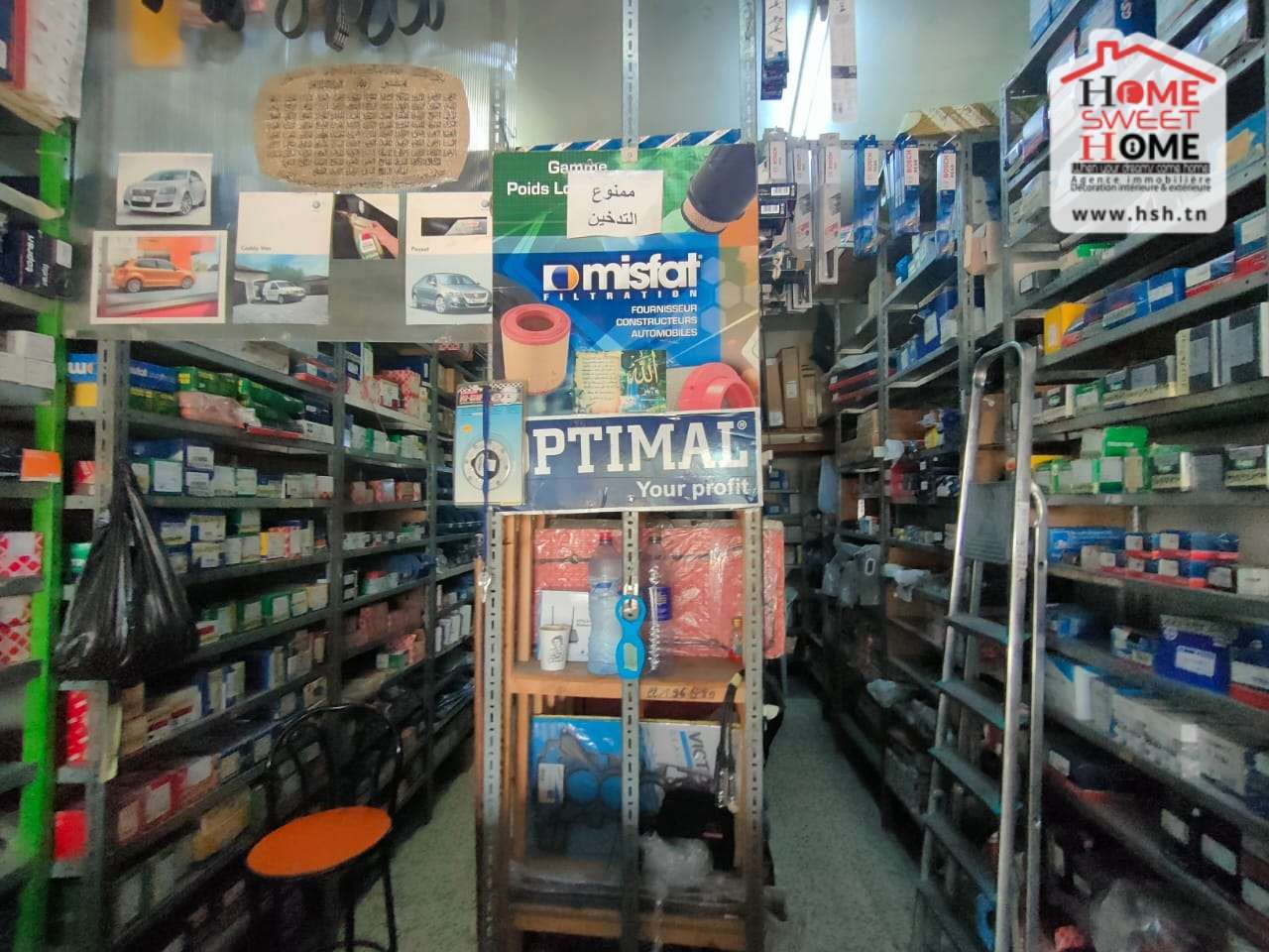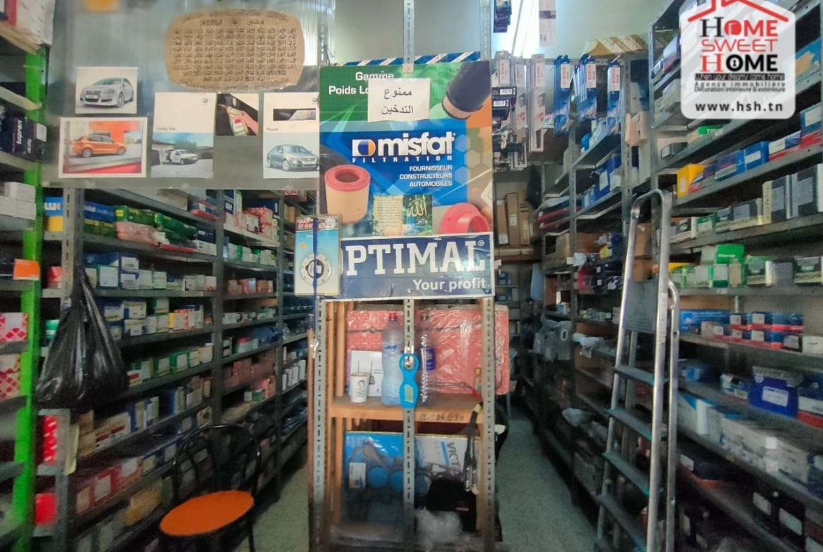 | Un fonds de pièces de rechange, d’une superficie de 30 m² avec un loyer de 450 dt par mois situé dans un emplacement stratégique sur la route principale à Ben Arous. NB : la vente inclut le fonds de commerce et les pièces. . |