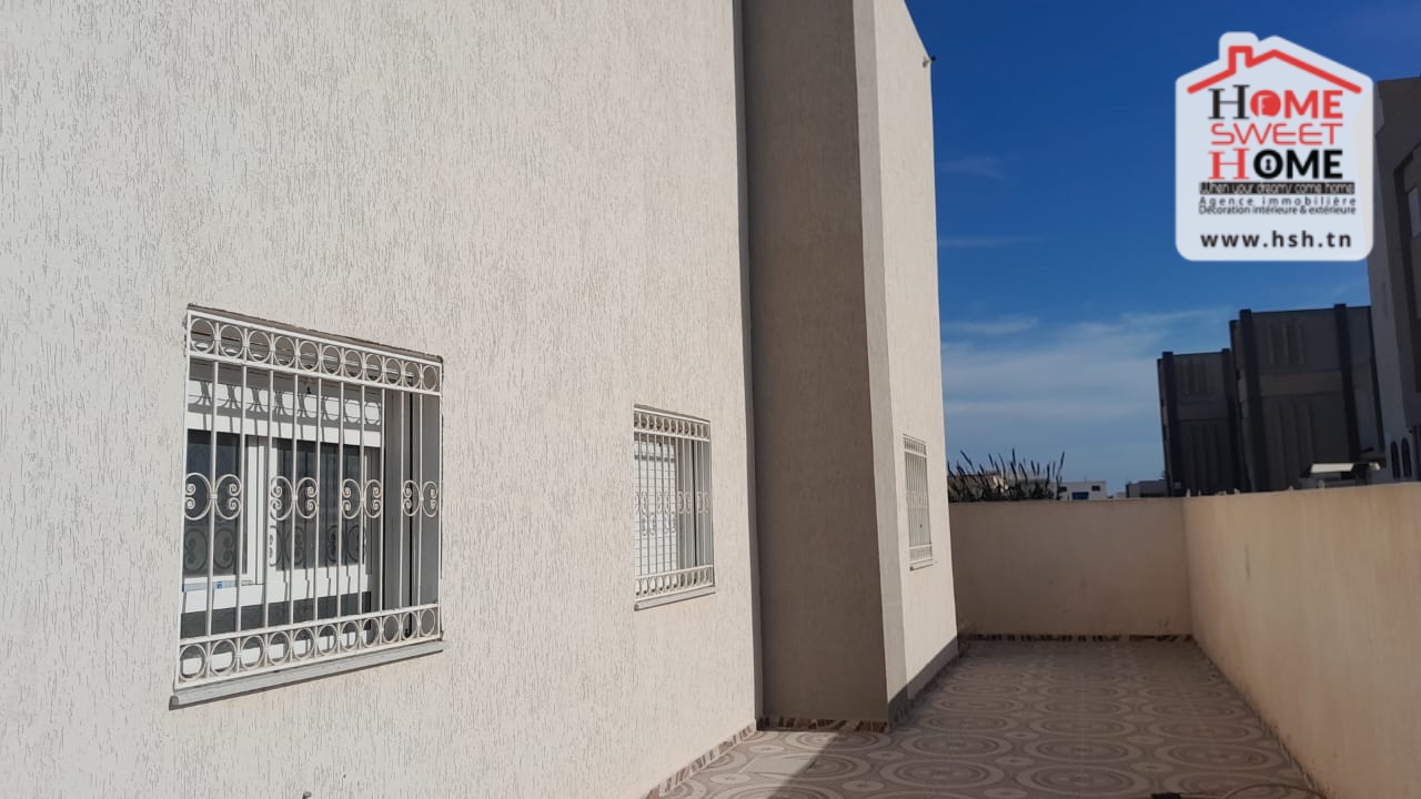 Un immeuble sur un terrain de 300 m² situé dans un bon quartier à 200 m de la plage à Dar Allouch, Kélibia. Au RDC, Sur un appartement qui se compose par un salon, une cuisine, 3 chambres et une salle de bain. A L’étage, Sur un studio avec une grande terrasse. A L’extérieur, Sur une terrasse et un jardin.