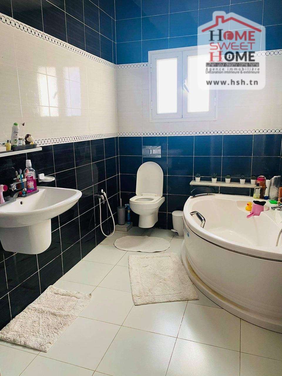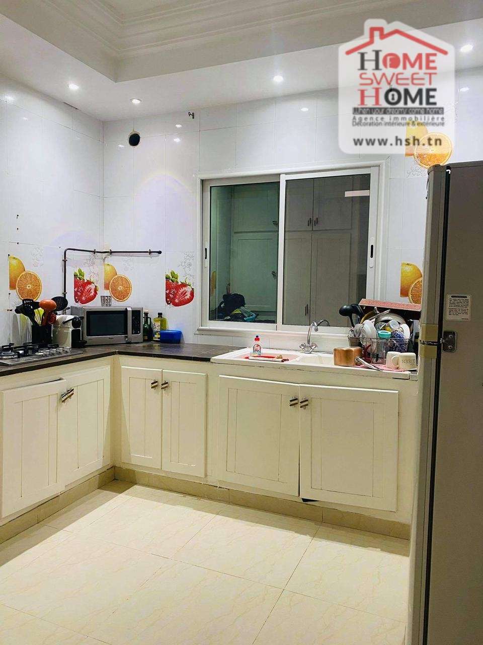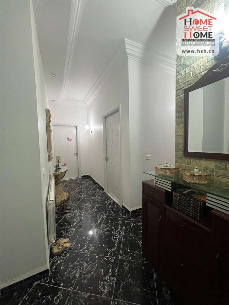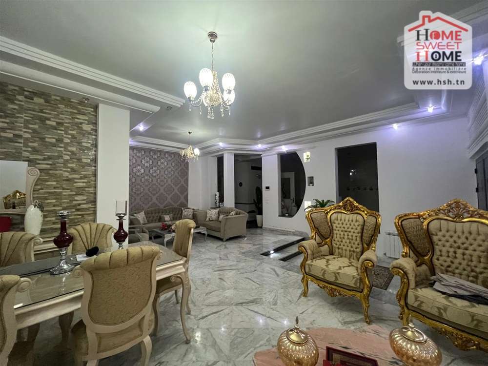 | Un Immeuble qui fait le coin sur un terrain de 380 m² situé dans un quartier résidentiel à Rades Méliane. Au RDC, on trouve une villa S4 avec une entrée indépendante qui se compose par un grand salon, salle à manger, une cuisine équipée avec terrasse, une salle d’eau,4 chambres et une salle de bain .A L’ étage, On trouve un appart S2 qui se compose par un salon, une cuisine,2 chambres et une salle de bain et un autre appart S3. A L’extérieur, On a une terrasse, un jardin qui fait le tour et un abri pour3 voitures. . |