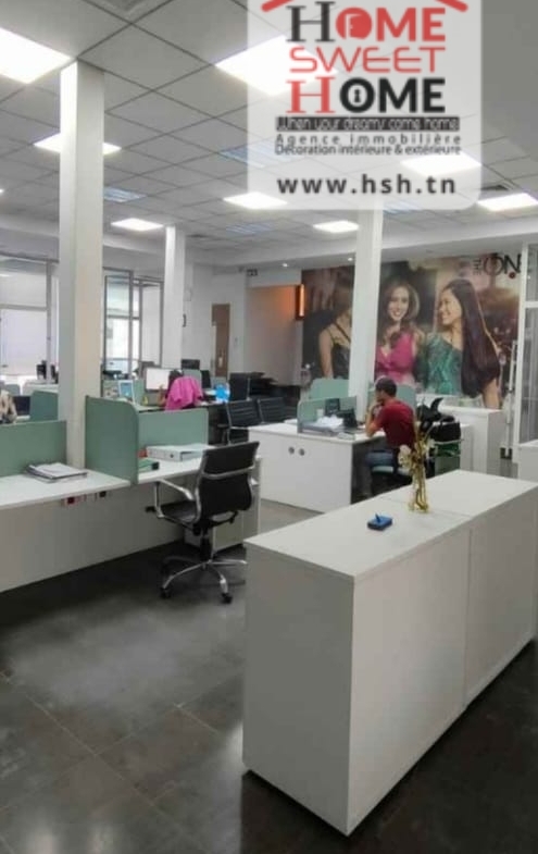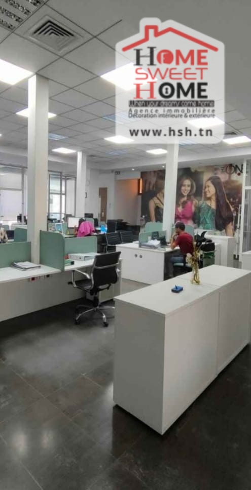 Un immeuble de 3 étages d’une superficie 1350m2 idéal pour une société…, situé à Ain Zaghouan Nord. Au RDC, sur un espace ouvert et deux salles d’eau. Au 1er étage, sur 3 espaces ouverts, 3 bureaux et 2 salles d’eau. Au 2éme étage, sur un open space, 8 bureaux, une kitchenette et 2 salles d’eau. Au sous sol, Sur une des places de parking.